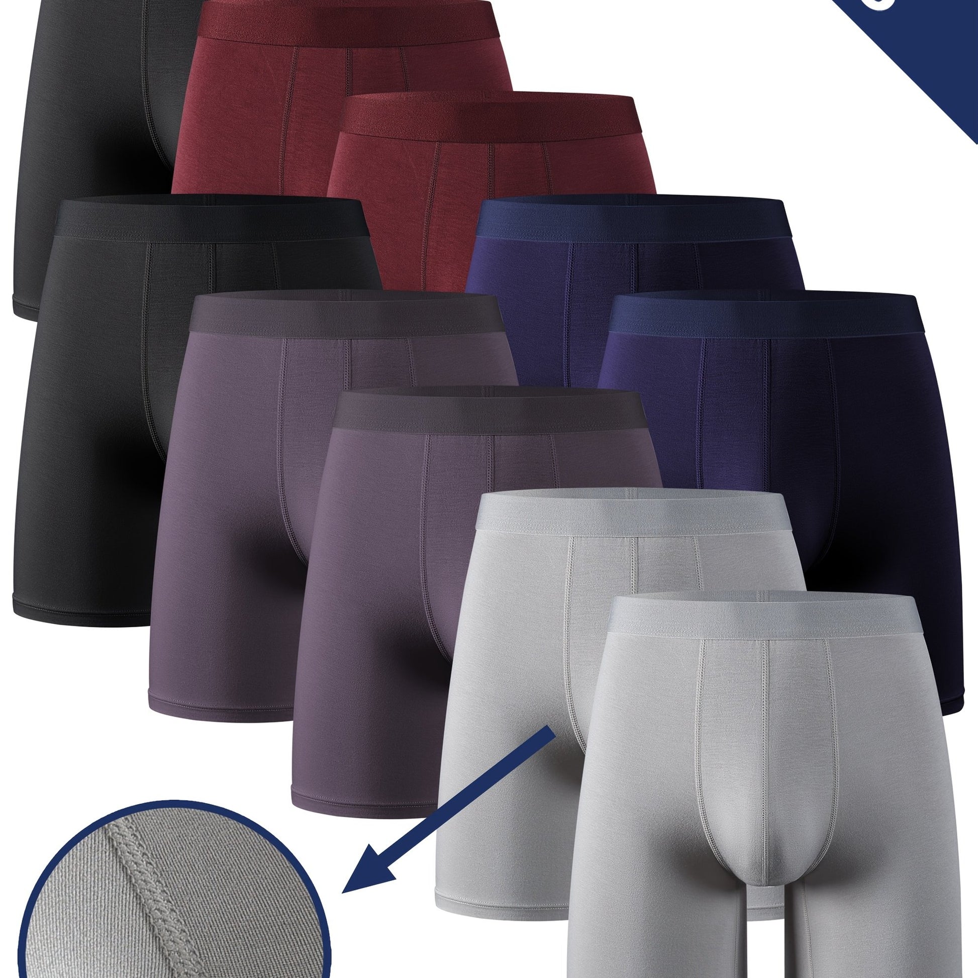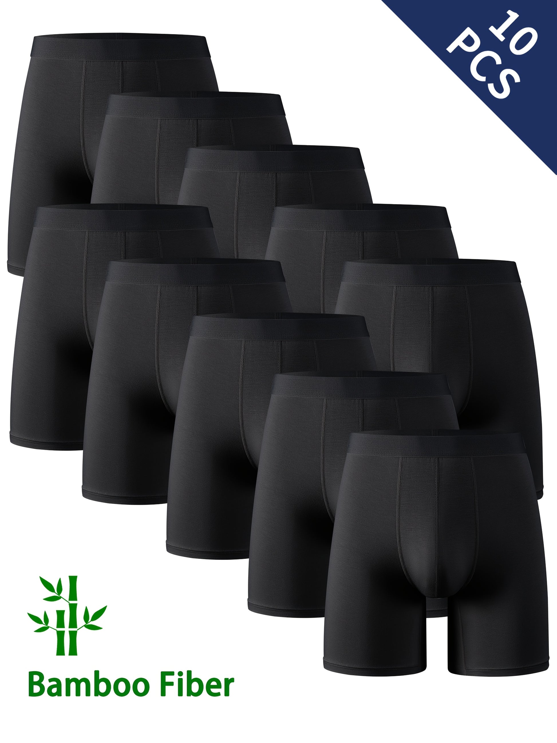 10pcs LIUYIJJ Men'S Bamboo Fiber Boxer Briefs, 95% Bamboo 5% Spandex, Medium Stretch, Solid Color, Knit Fabric, Breathable Moisture-Wicking, for Casual Shortie Underwear