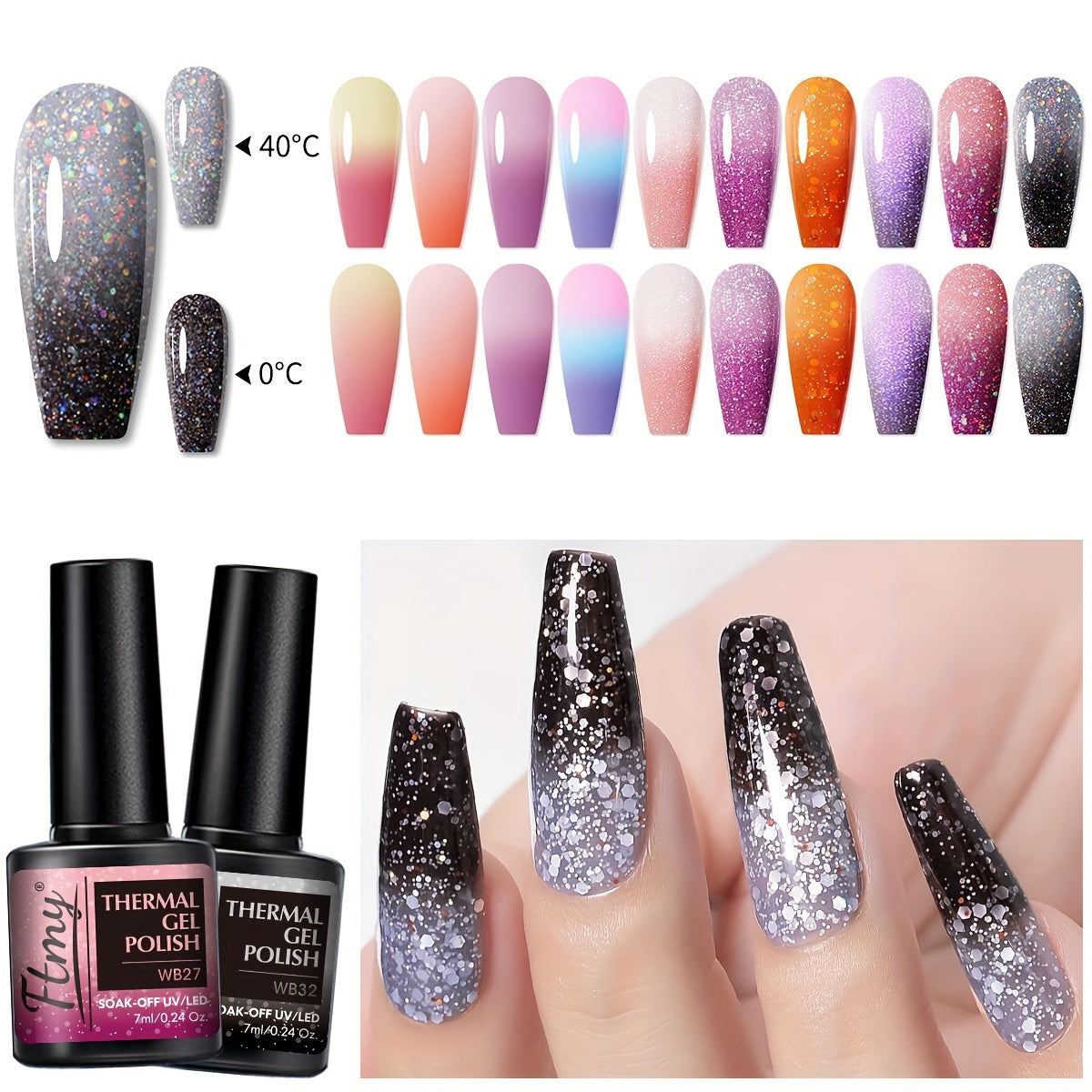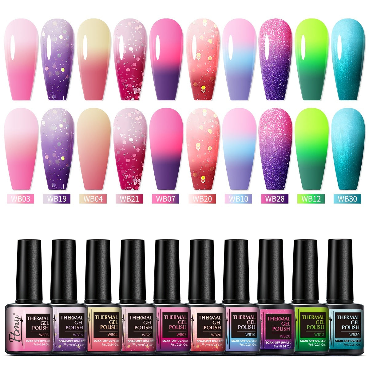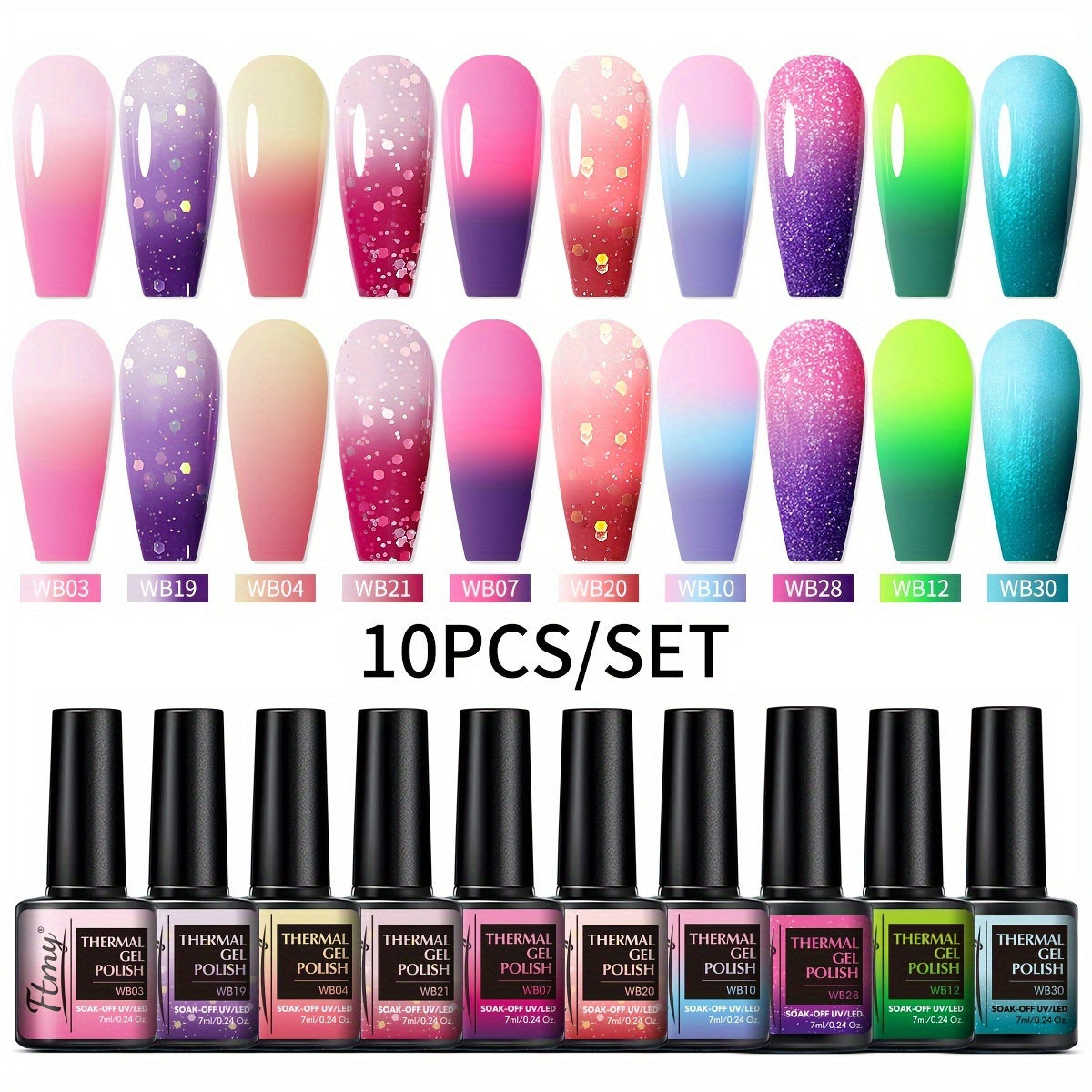 10pcs/SET Temperature Changing Thermal Nail Gel Polish, Soak Off UV Sequins Gel Polish for Nail Art Salon Manicure