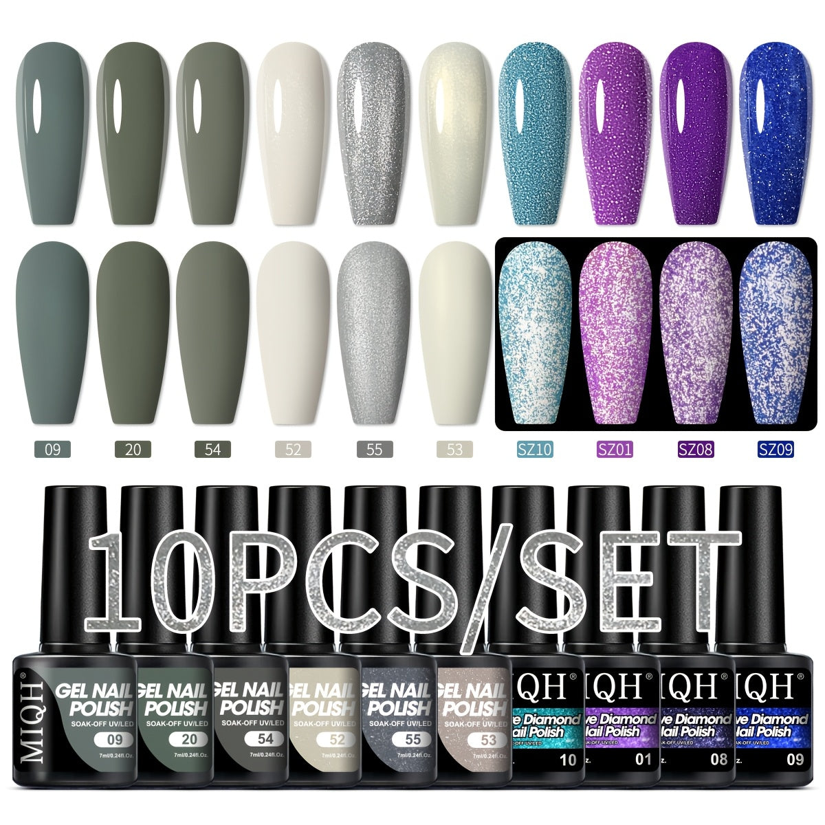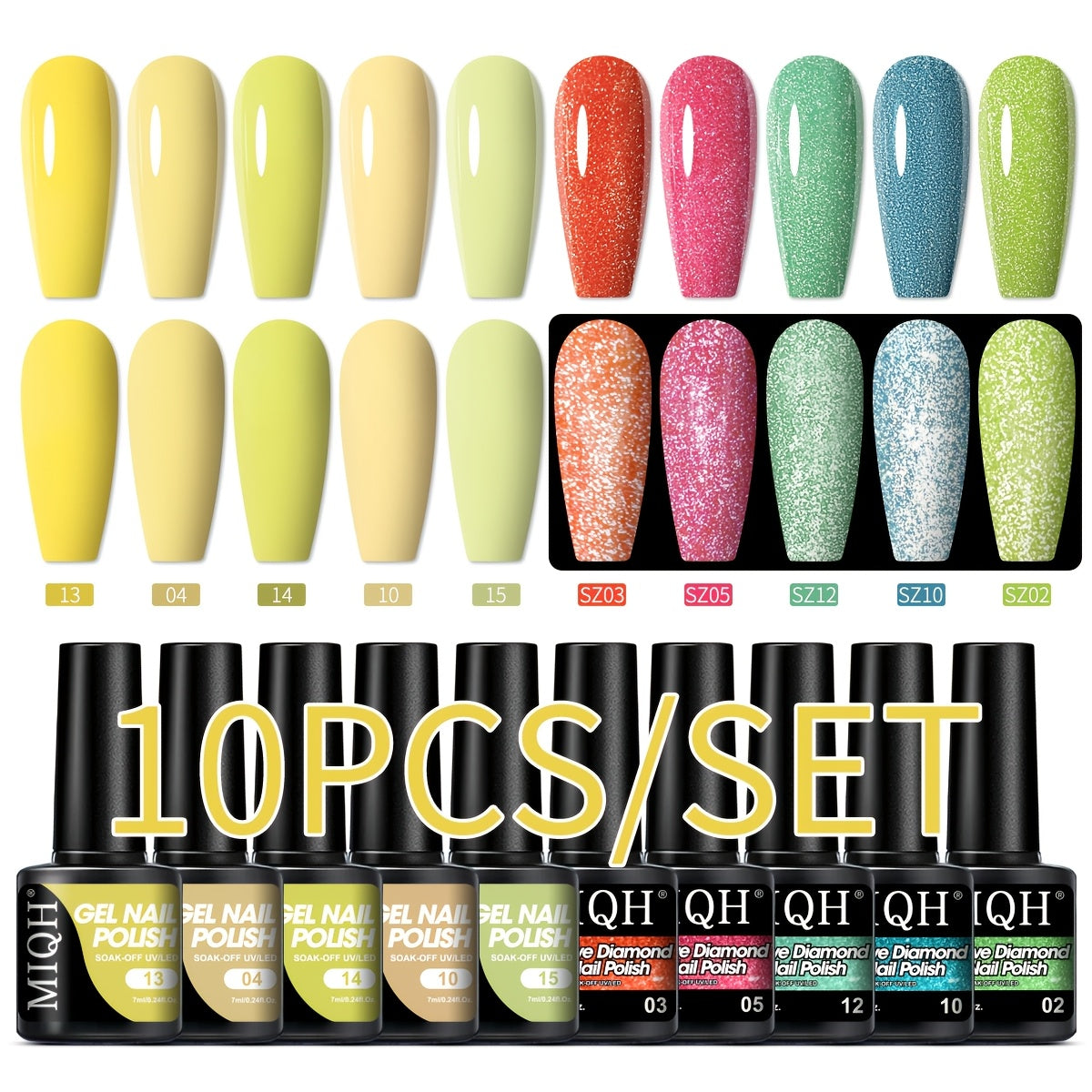 10pcs Spring Pinkish Glitter Reflective Nail Gel Polish Set 7ml Sparkling Semi Permanent Soak Off UV LED Gel Varnish Kit for Manicures