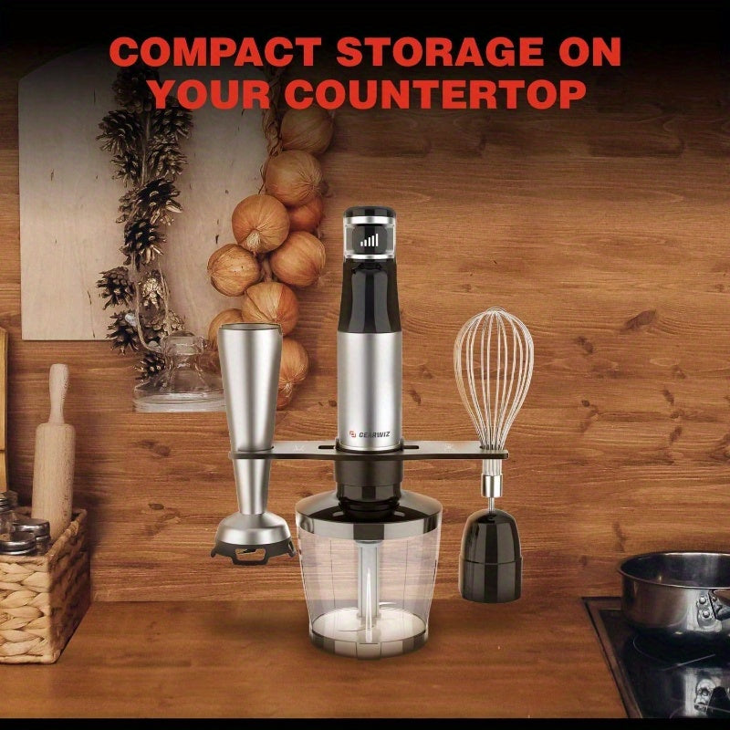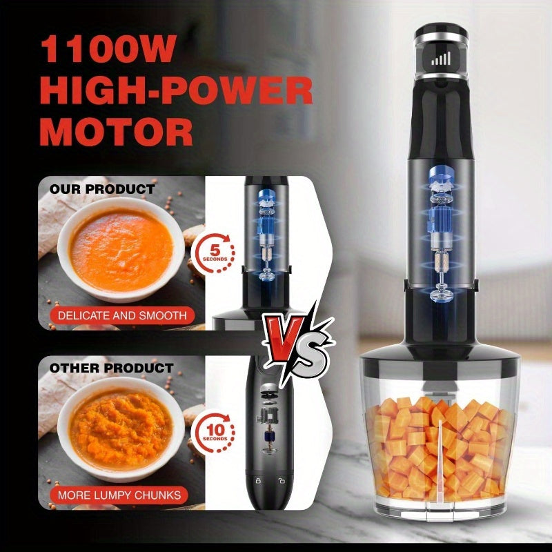 1100W Corded Hand Blender - 6-in-1 Immersion Blender with Variable Speed Control, Heavy-Duty Stainless Steel Construction, Powerful Motor for Smoothies, Soups, Baking, Whip - Includes Whisk, Chopper, Frother, Storage Holder & Cover - Ideal for Home & Prof