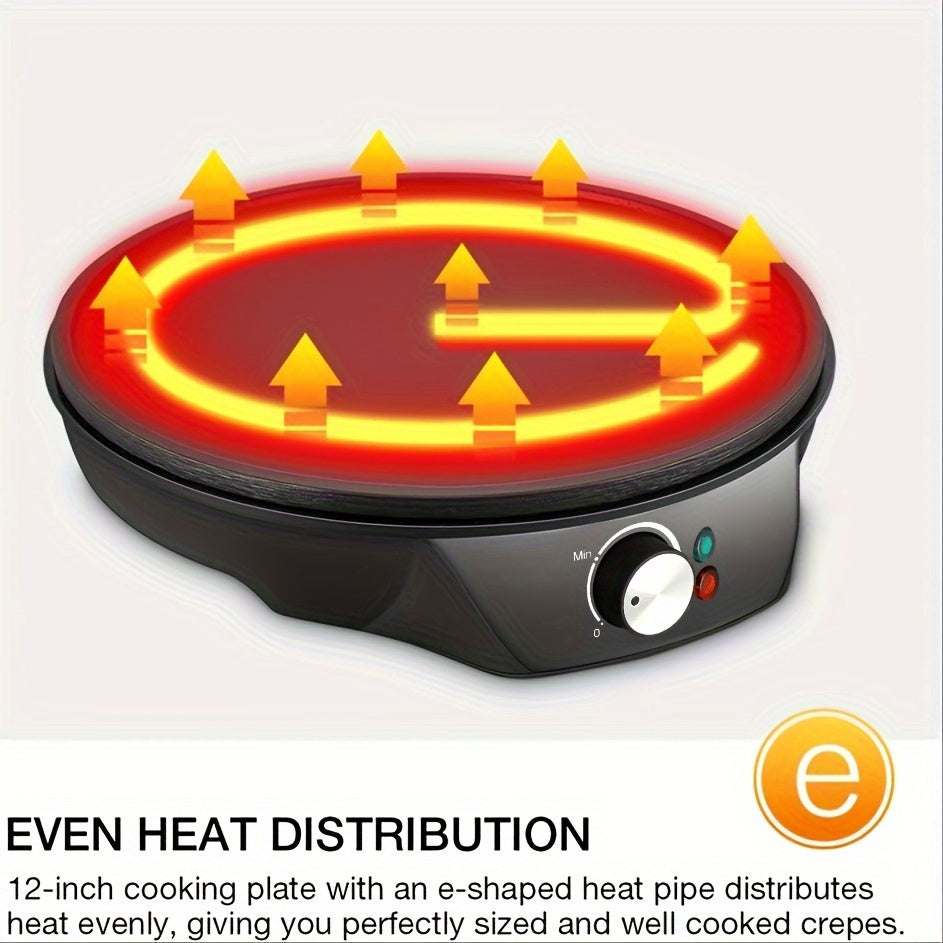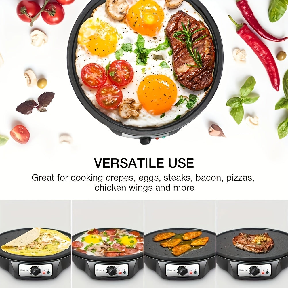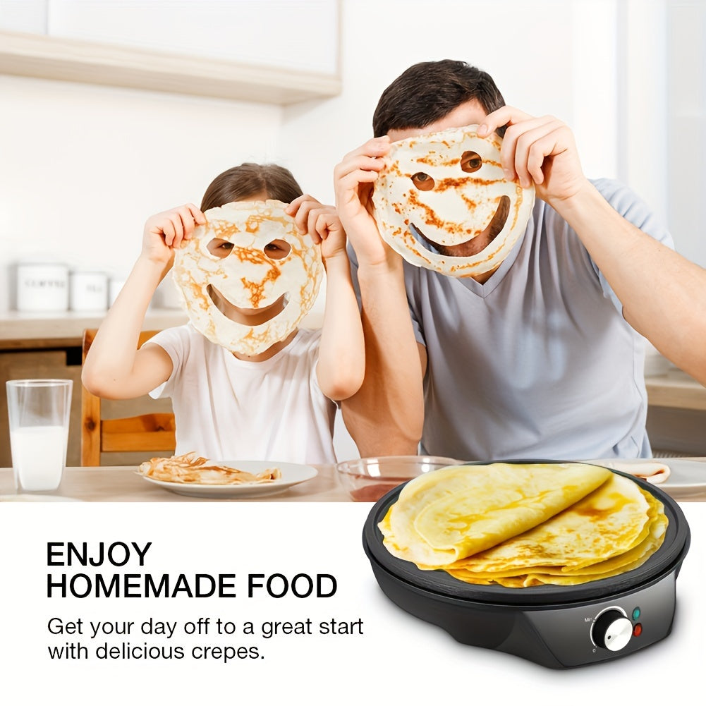12" Nonstick Electric Crepe & Pancake Maker with Spreader & Spatula, Adjustable Temperature Control for Perfect Roti, Tortillas, Eggs & More - ABS Material, US Plug, 110V/220V Compatible