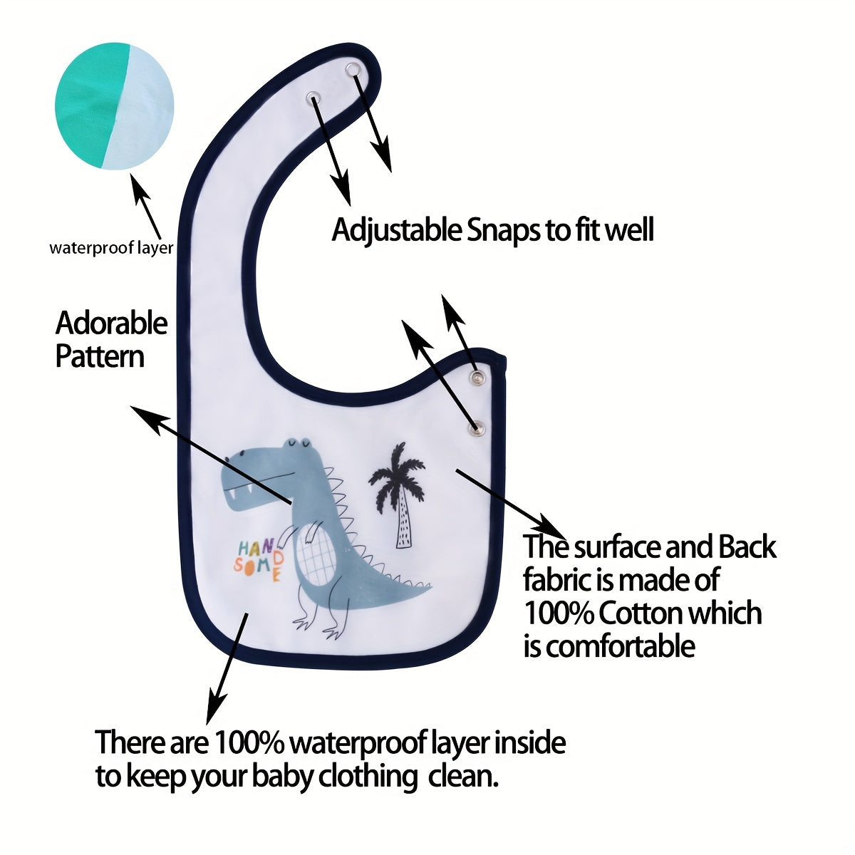 12pcs Adjustable Muslin Youngsters Bibs - Waterproof, Breathable & Absorbent with Snap Closure - Cute Dinosaur, Giraffe & More Designs for Boys & Girls - Ideal for Nursing, Feeding & Teething