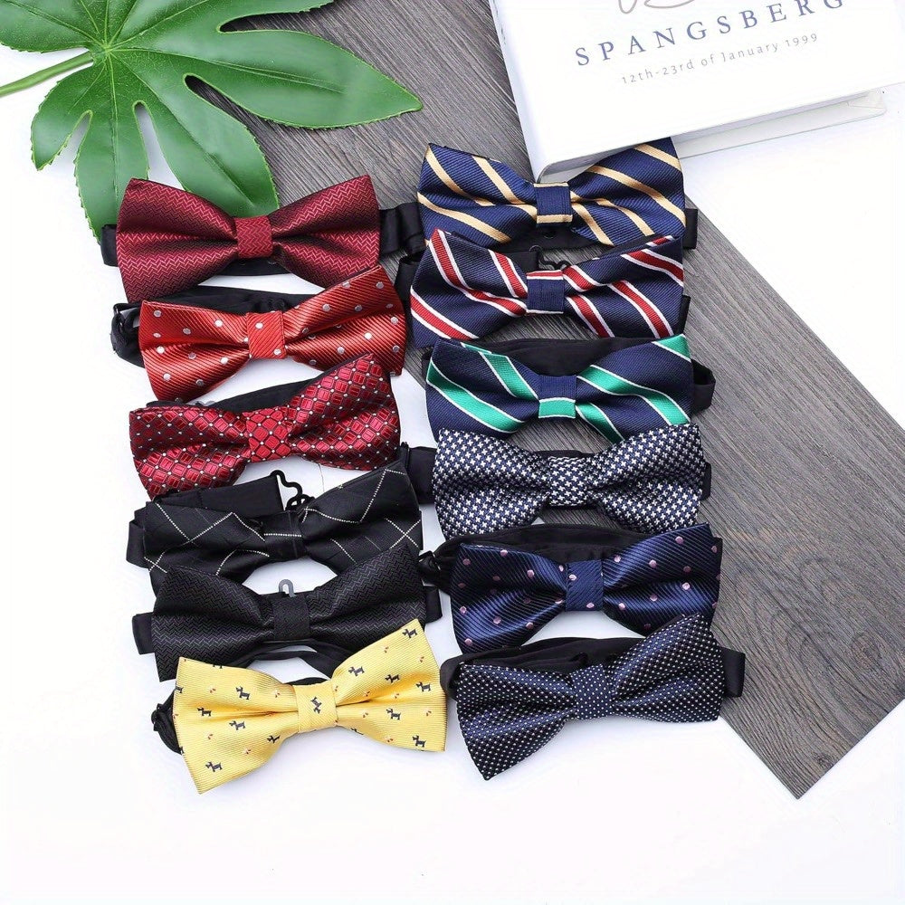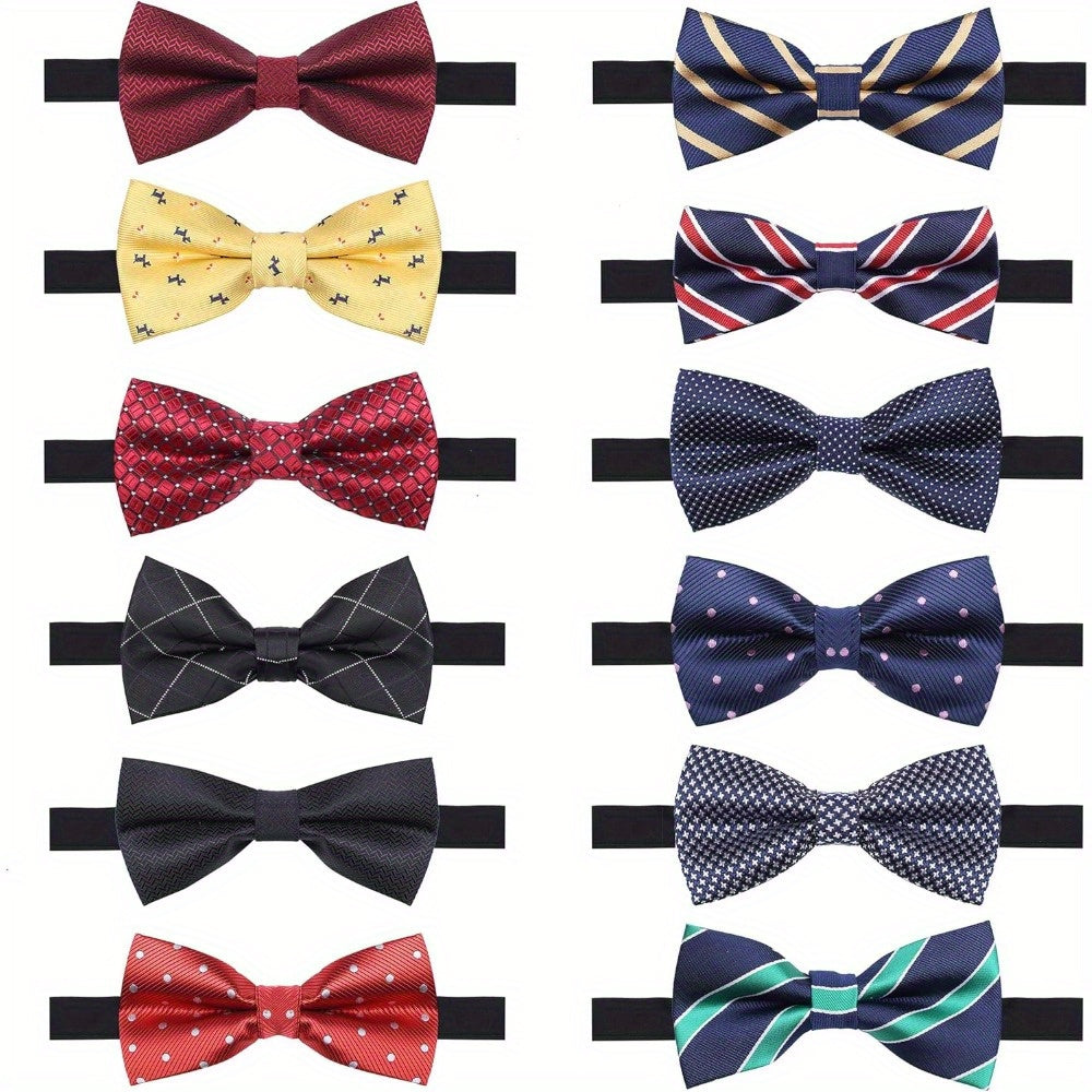 12pcs Men’s Pre-Tied Adjustable Bow Ties – Stylish Formal Neckwear for Weddings, Parties & Special Occasions, 100% Polyester, Multi-Color Patterns (Polka Dots, Stripes, Floral, Geometric)