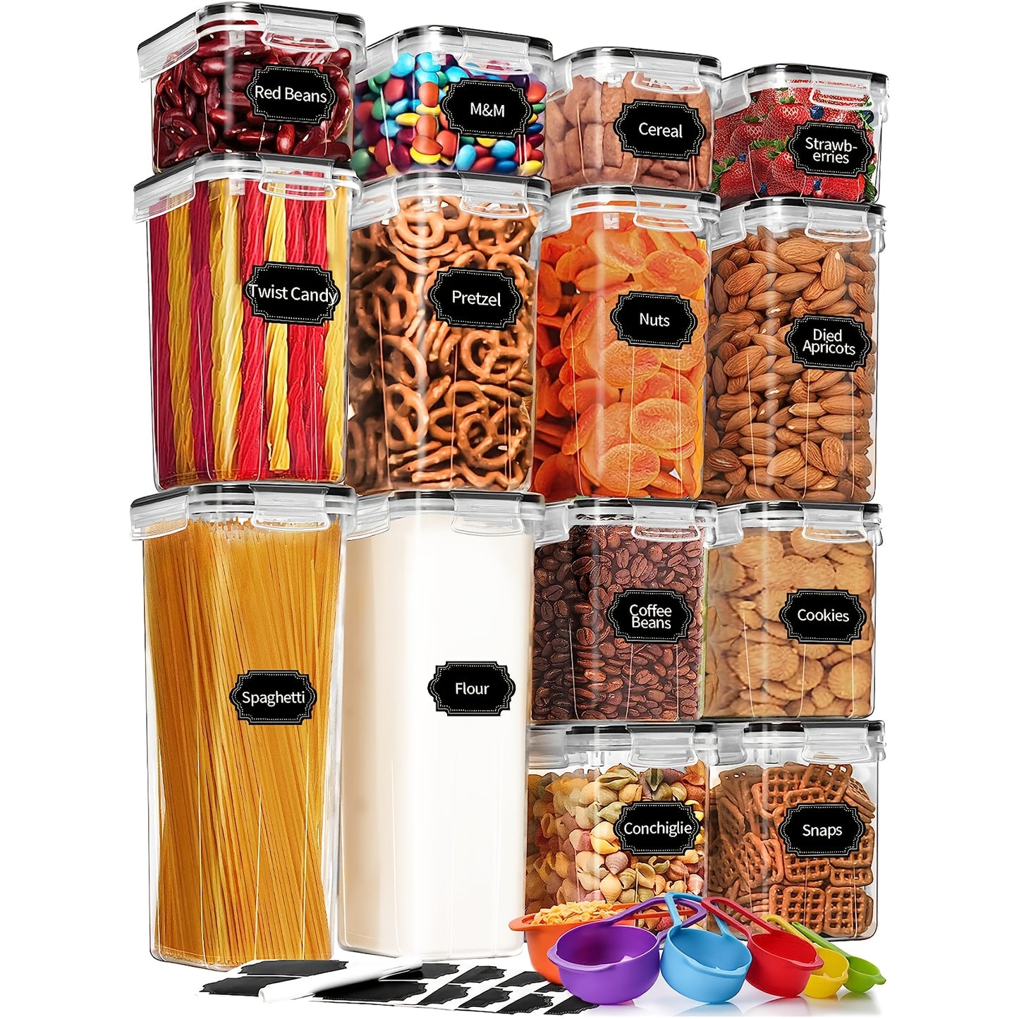 14pcs Skroam Airtight Food Storage Container Set - BPA-Free, Dishwasher Safe Plastic Canisters with Lids for Cereal, Flour, Sugar & More - Includes Spoons, Labels & Marker for Kitchen Pantry Organization, SKROAM