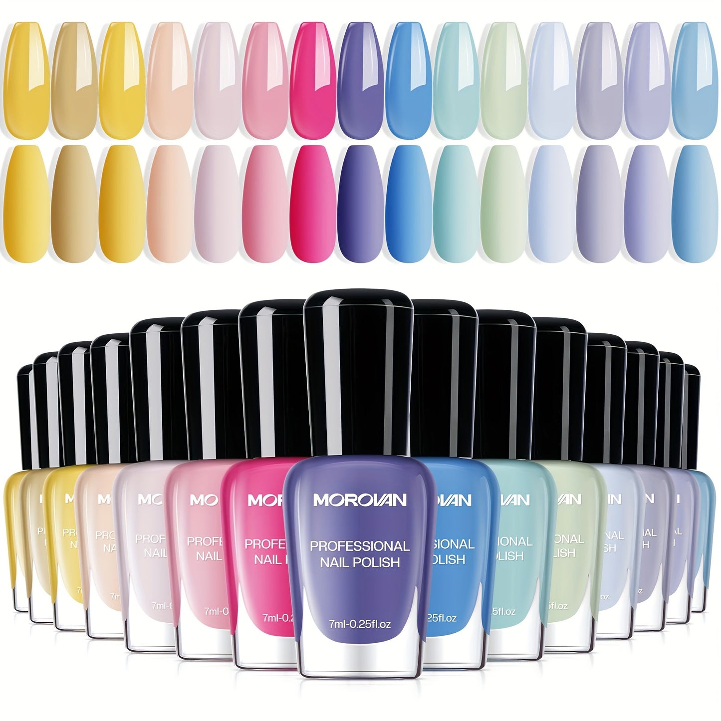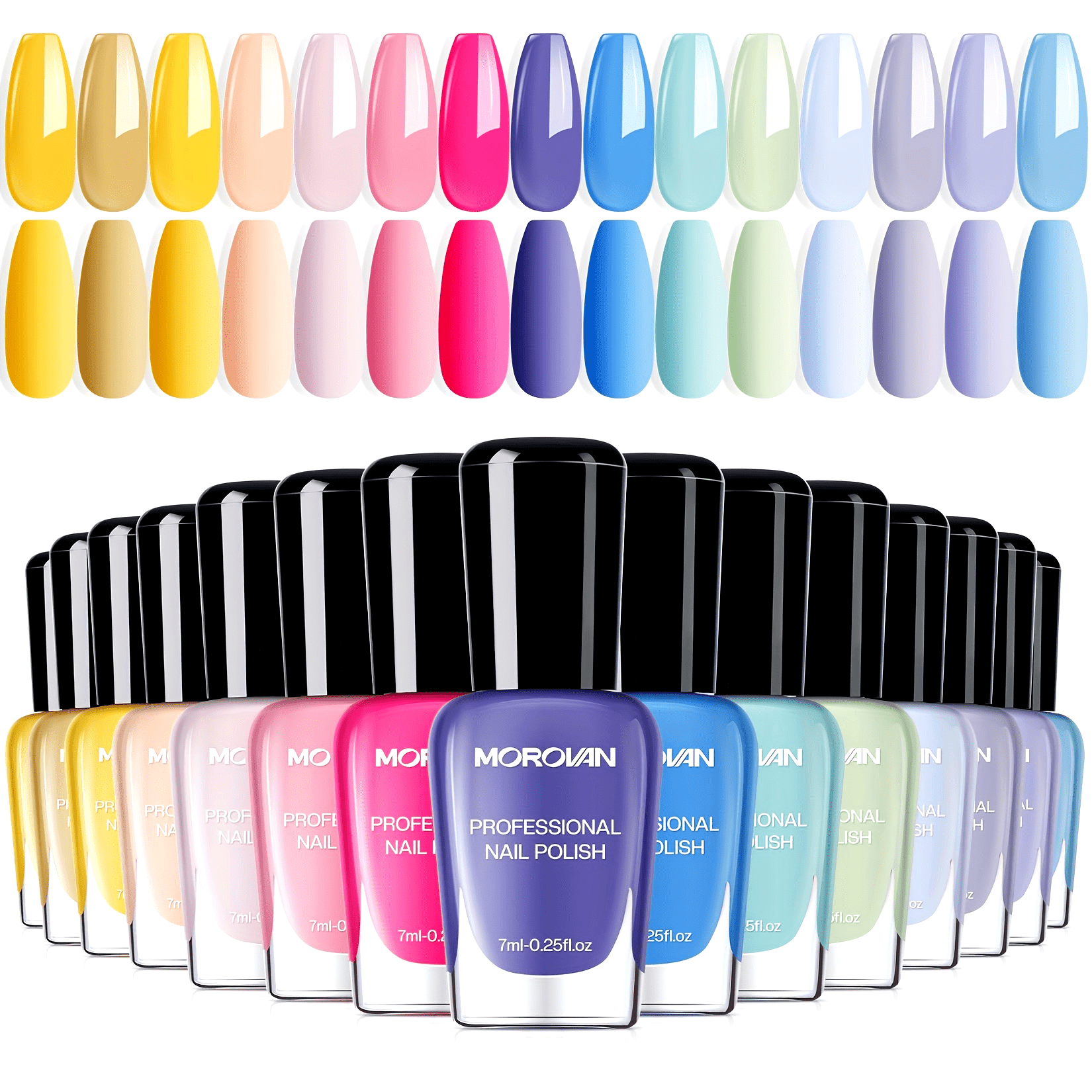 15-Color Morovan Macaron Air Dry Nail Polish Set - Long-Lasting, Chip-Resistant, Vibrant Shades for Spring and Summer - 0.25oz Regular Nail Polish Bulk Kit, Perfect Gift Set for Women