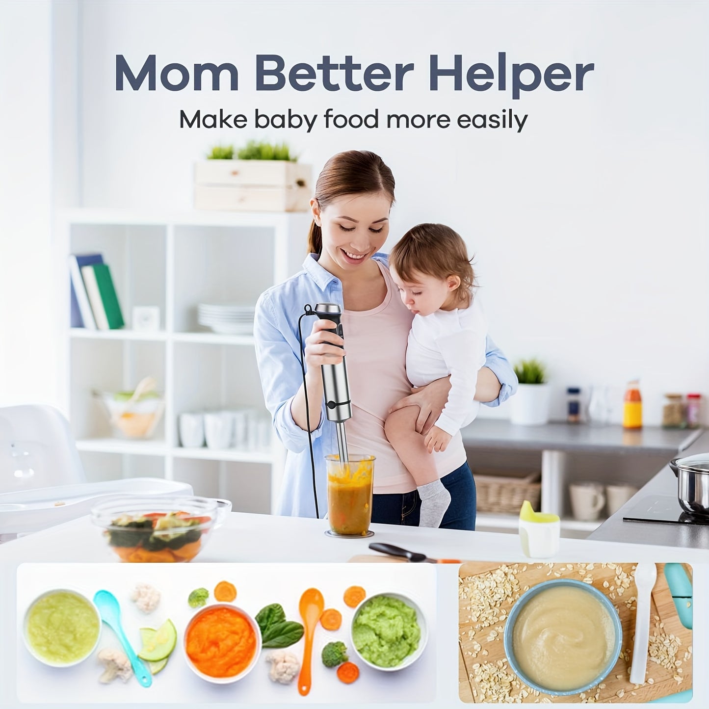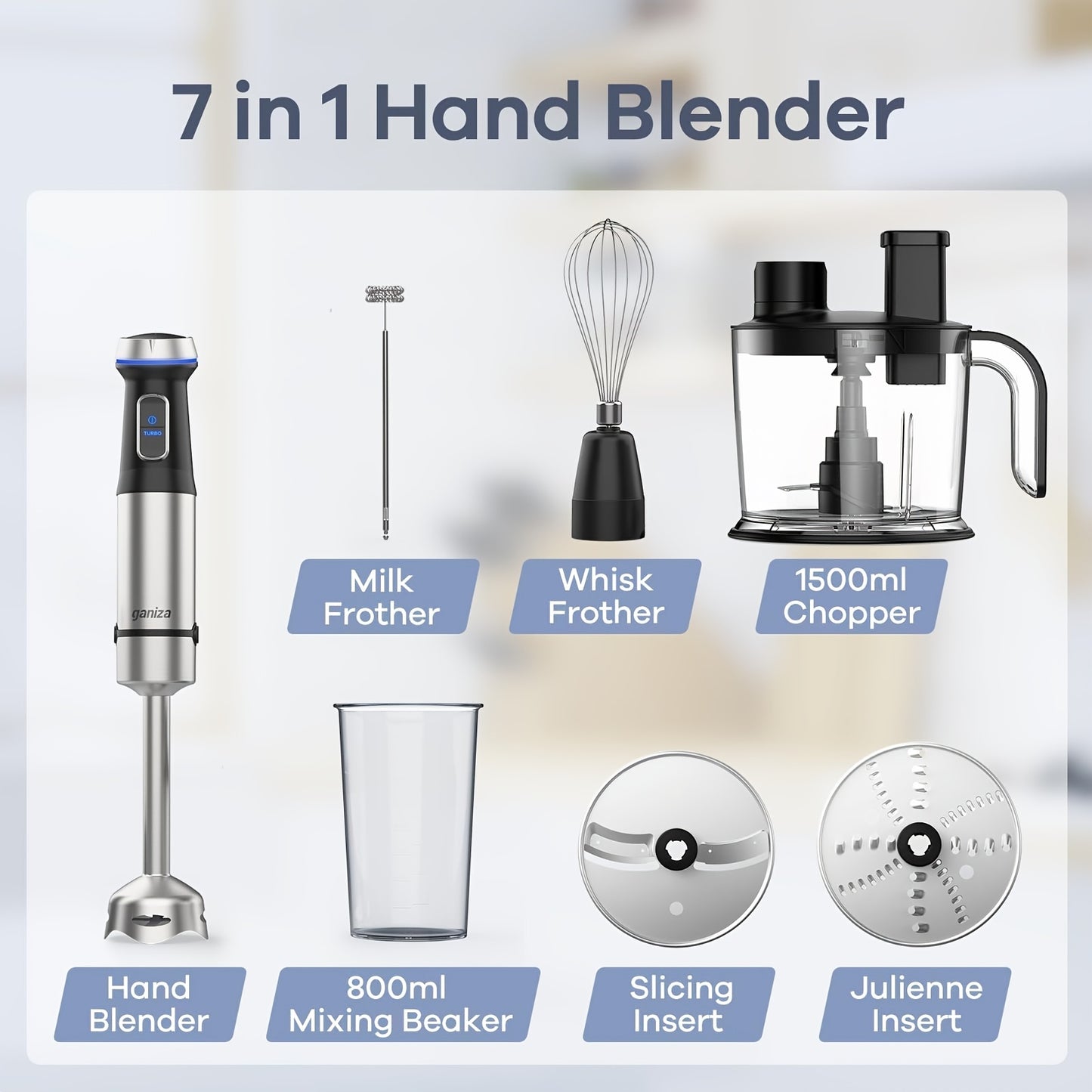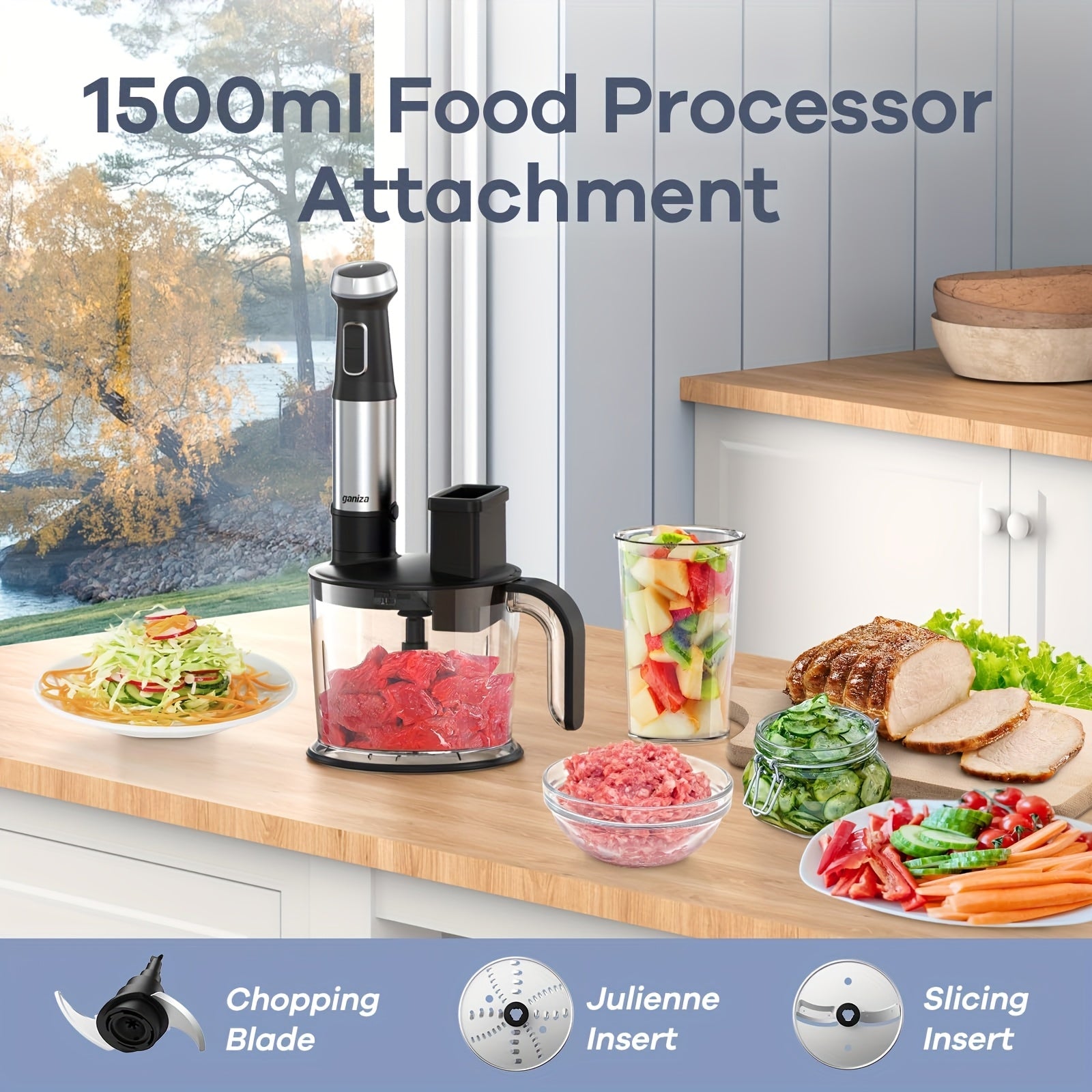 15-Speed Ganiza Handheld Immersion Blender - 7-in-1 Stainless Steel Stick Blender with 1500ml Food Processor and 6 Other Pieces, Christmas Gift