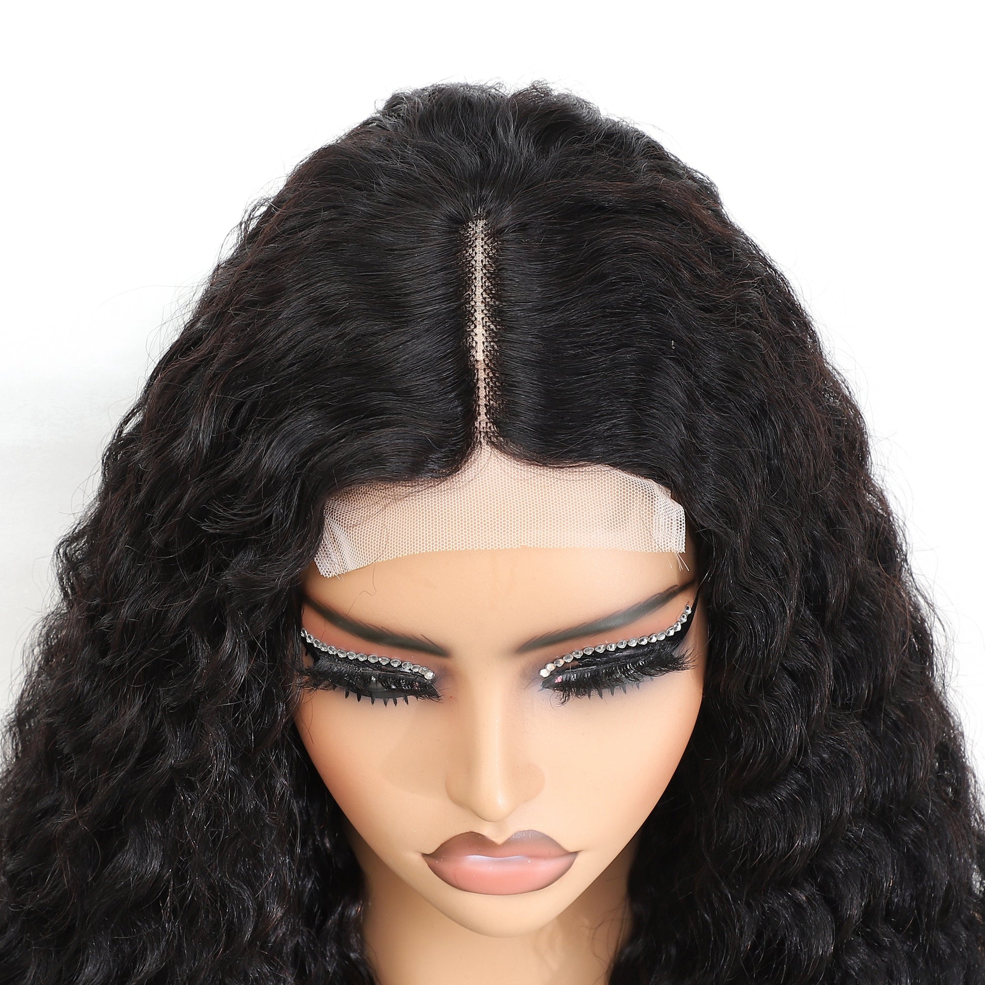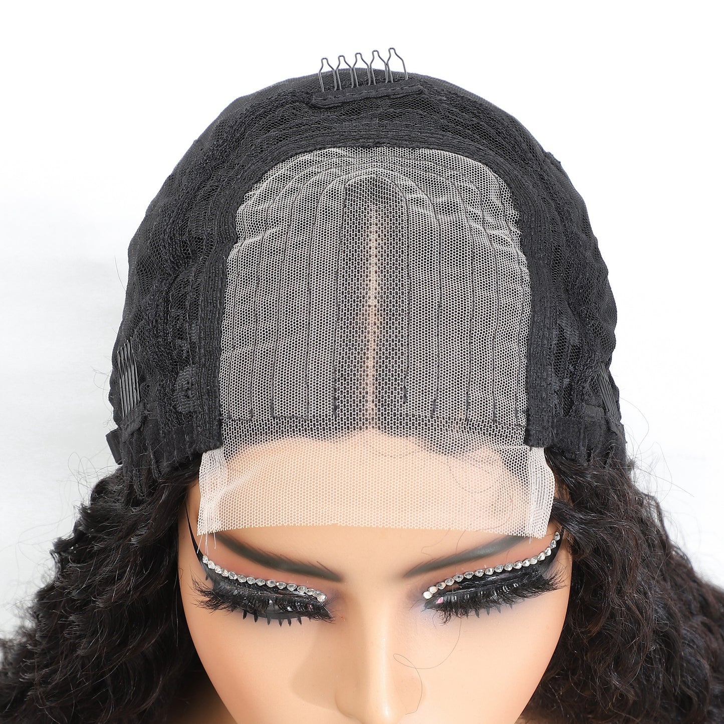 150% Density 4X1 Lace Closure Human Hair Deep Wave Lace Front Wigs For Women Natural Color