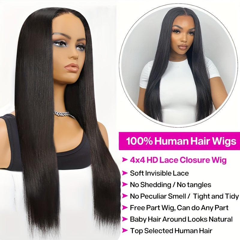150% Density Straight Human Hair Wig With 4x4 HD Transparent Lace Front Closure - Perfect For Women