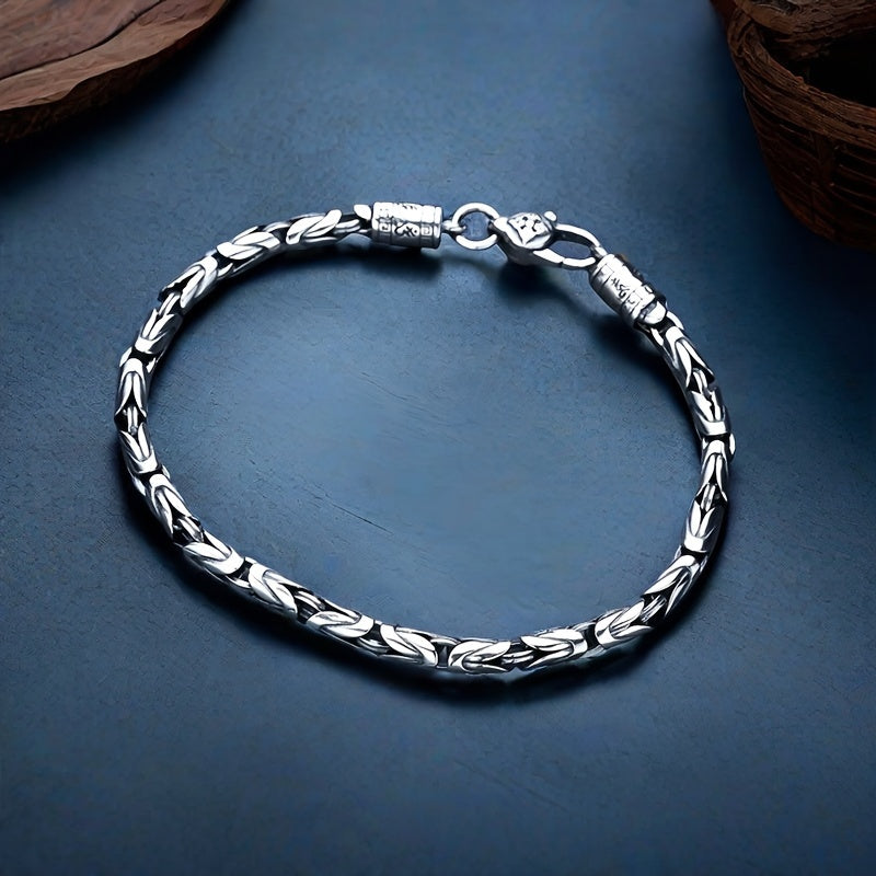 [15g Solid Silver Chain Bracelet] Cool and Handsome Style Men'S 925 Sterling Silver Bracelet, 7.87 Inch, No Plating, 15g Solid Silver Chain – Ideal Boyfriend'S Gift