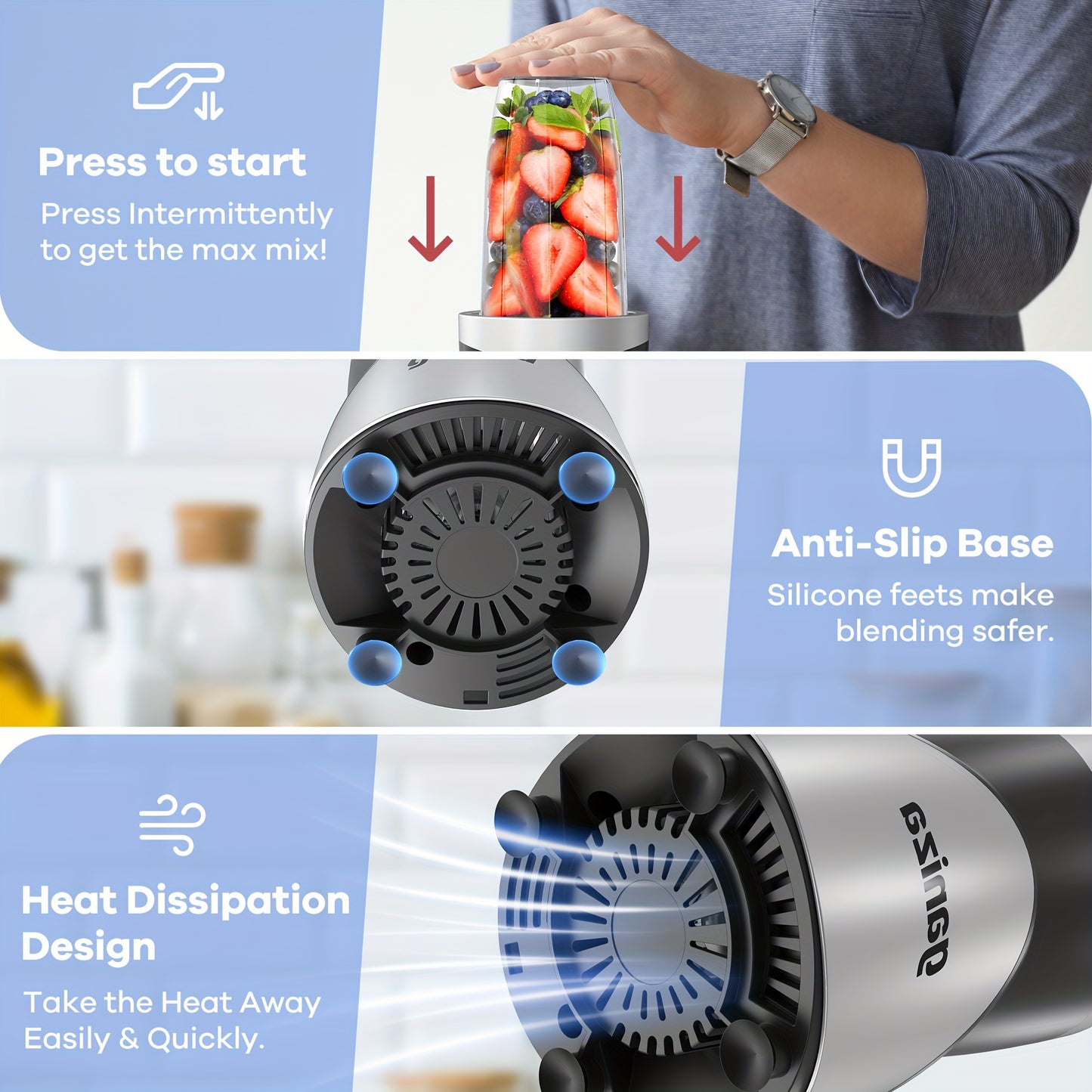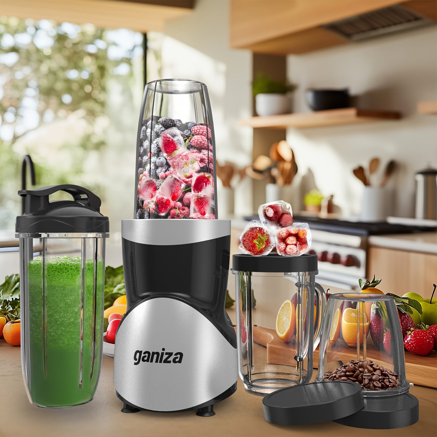 15pcs Smoothie & Shake Blender GANIZA Smoothie & Shake Blender Combo - 900W High-Power, Dual Speed Control, Stainless Steel, 4 BPA-Free Portable Cups, US Plug