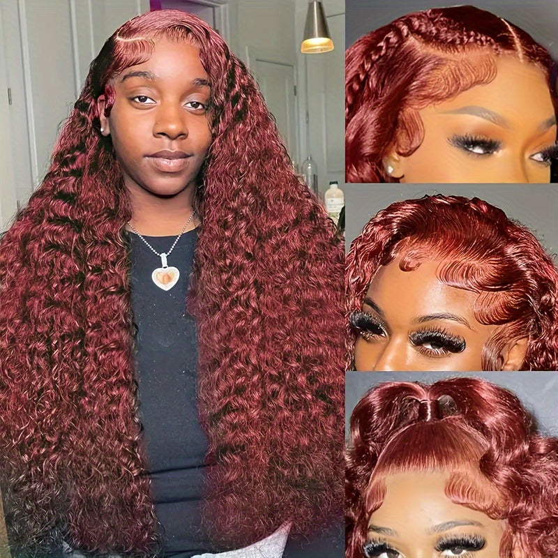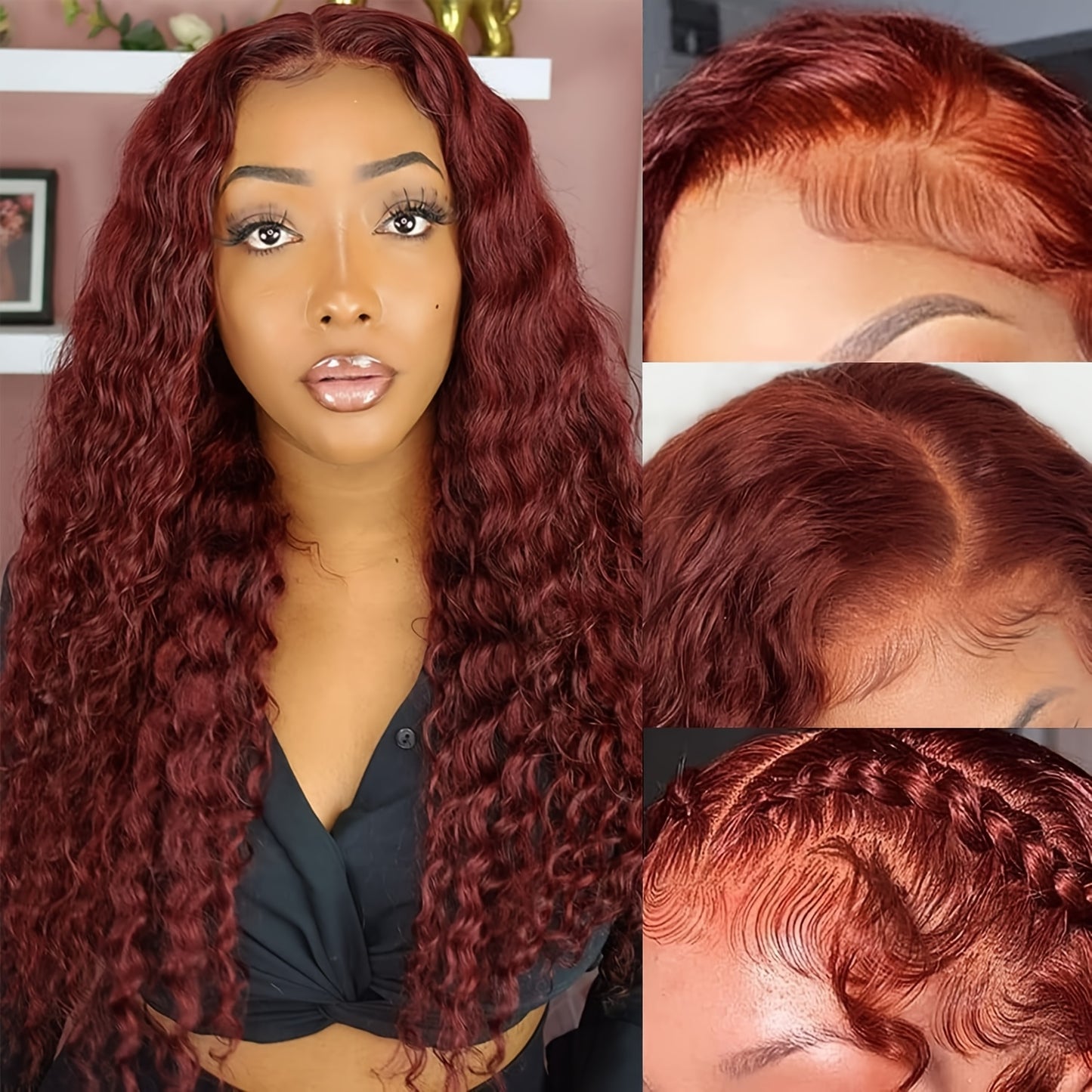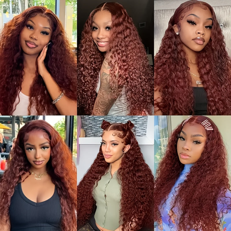 180% Density #33 Color Reddish Brown Lace Front Wigs Human Hair 13x6 Red Copper Colored Glueless Deep Wave Frontal Wig For Women Pre Plucked Curly Wig Human Hair With Baby Hair