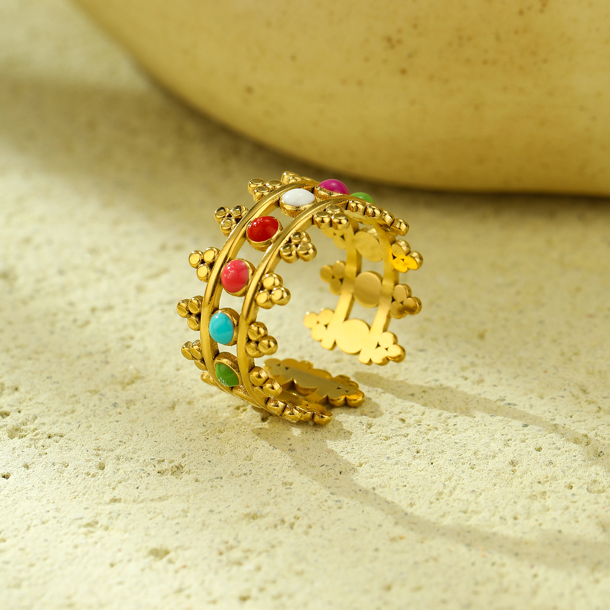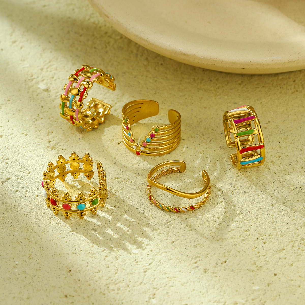 18K Gold Plated Stainless Steel Ring Women Geometric Abstract Colorful Oil Necklace Ring Ornament