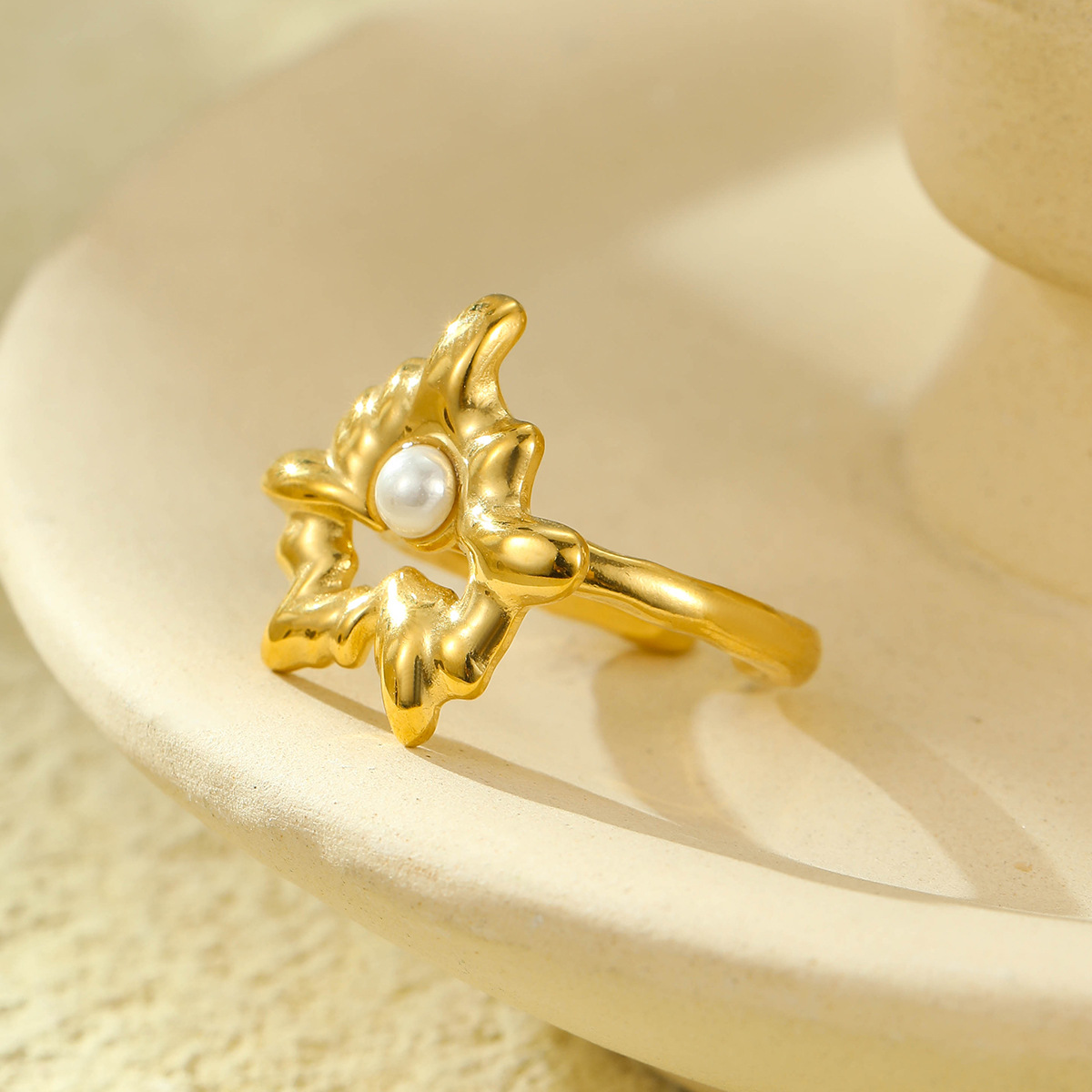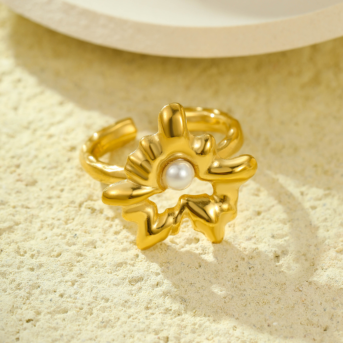 18K Gold Stainless Steel Open End Pearl Ring Natural Stone Love Inlaid Pearl Ring Women