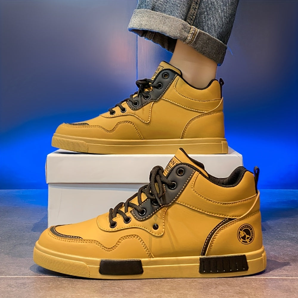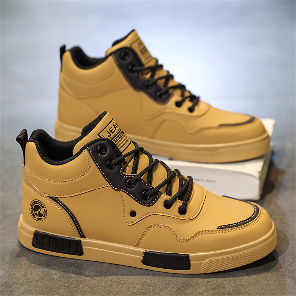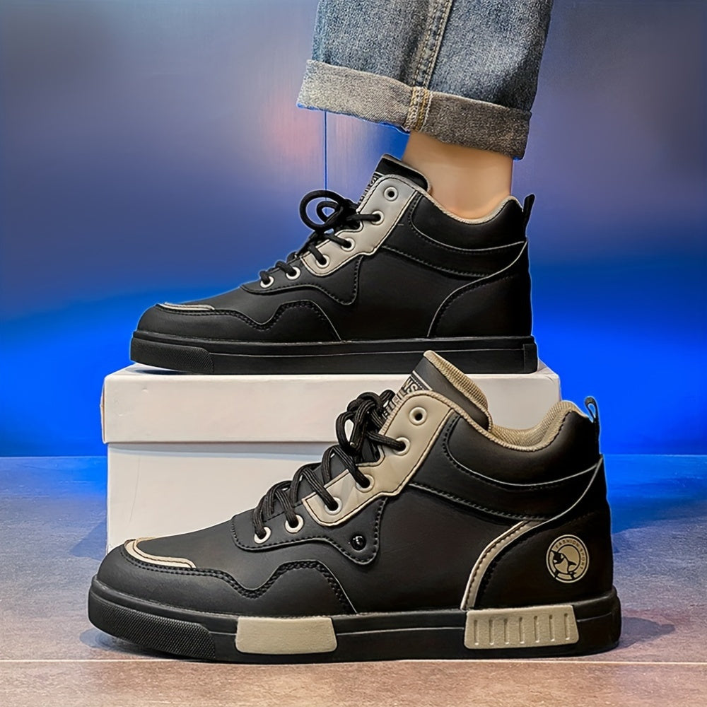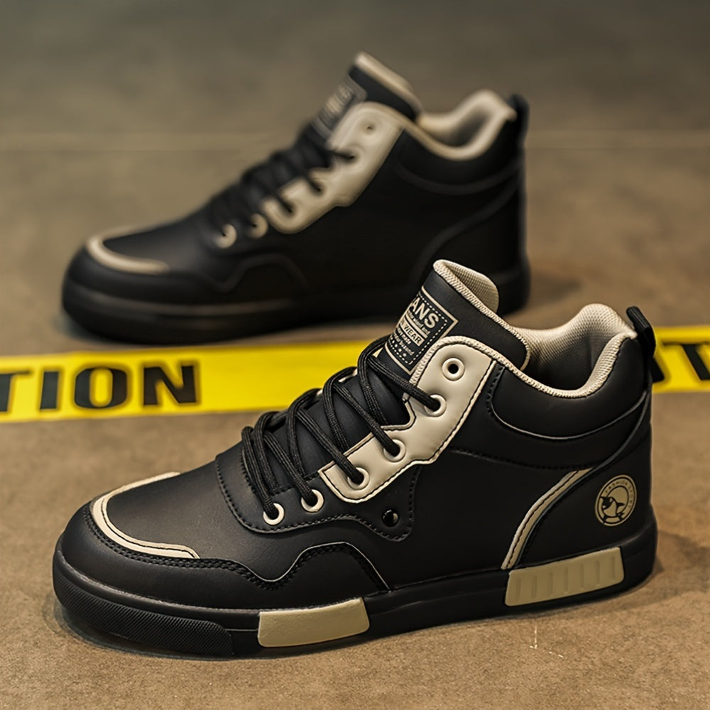 1pair Men'S High-Top Casual Sneakers - All-Season Fashion Walking Shoes, Comfortable and Durable, Lace-Up Skateboarding Footwear, Faux Upper, Fabric Lining, Rubber Sole, EVA Insole