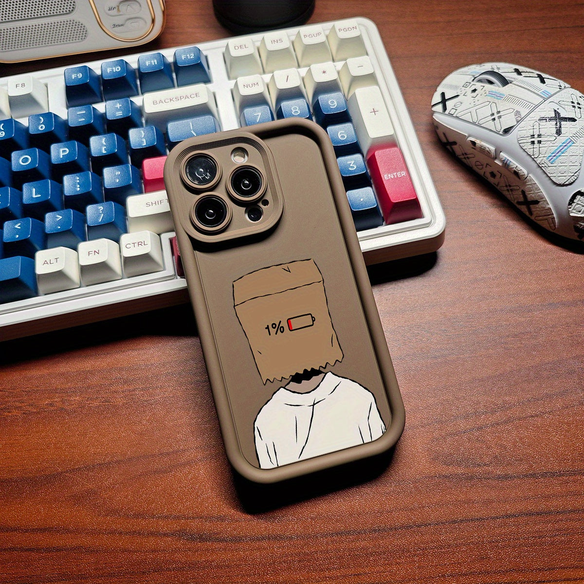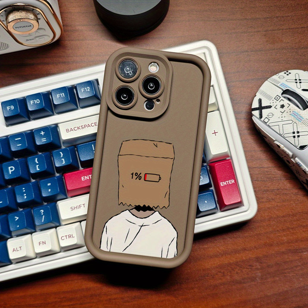 1pc 1pcs 1% Batterie Personnage Frais Créatif Personnalité Farce style européen et américain style décontracté pour garçons couleur café, coque souple marron givré, adapté pour Xiaomi/Redmi A1/A2/+/A3/9/POCO/M2/NOTE/9/T/M3/C/10/A/C31/i/11/PRIME/POWER/8/PR