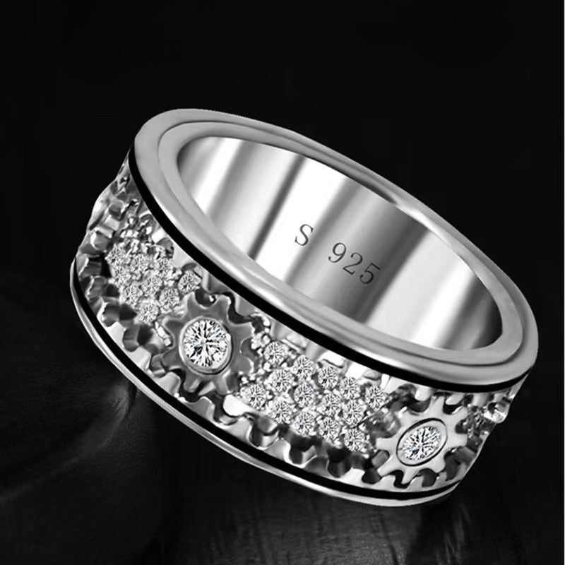 1pc 925 Silver gear turnable mechanical retro ring, fall and winter street fashion Men's and Women's exclusive jewelry, suitable for various festivals and occasions, is also the best New Year gift for friends