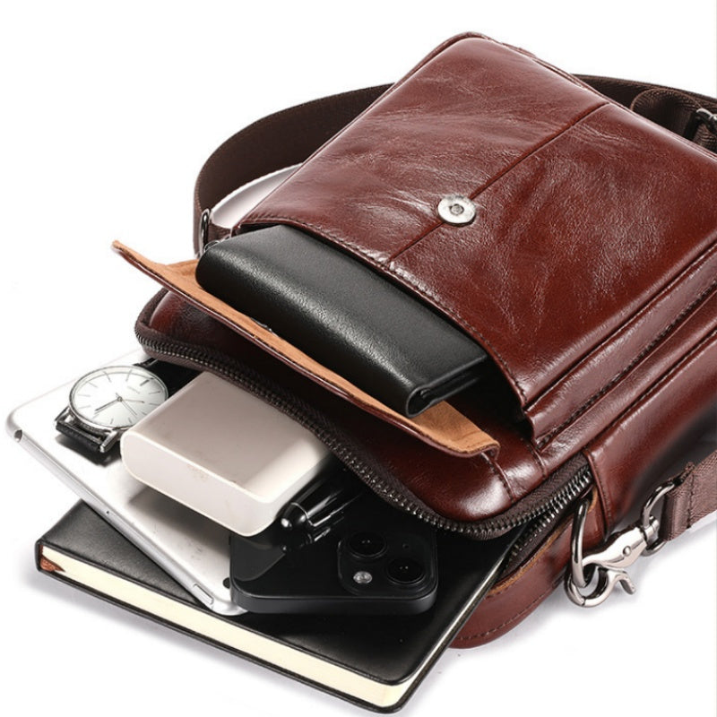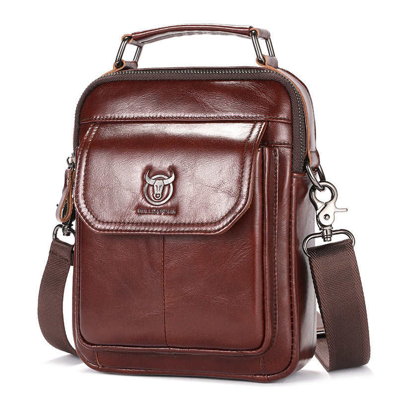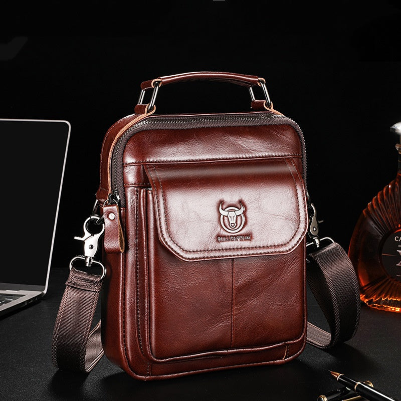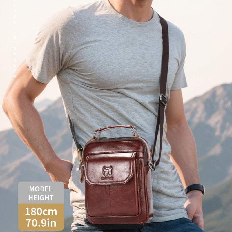 1pc Bull Captain Genuine Top Layer Cowhide Leather Men's Shoulder Bag - Business Style, Adjustable Strap, Non-Textile Weave, Large Capacity Crossbody Bag for Going Out