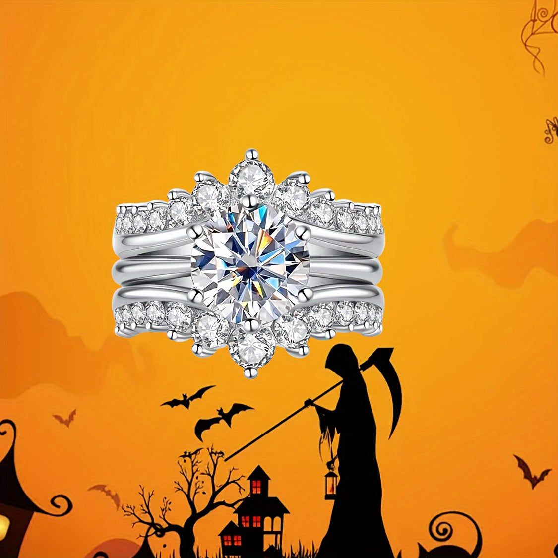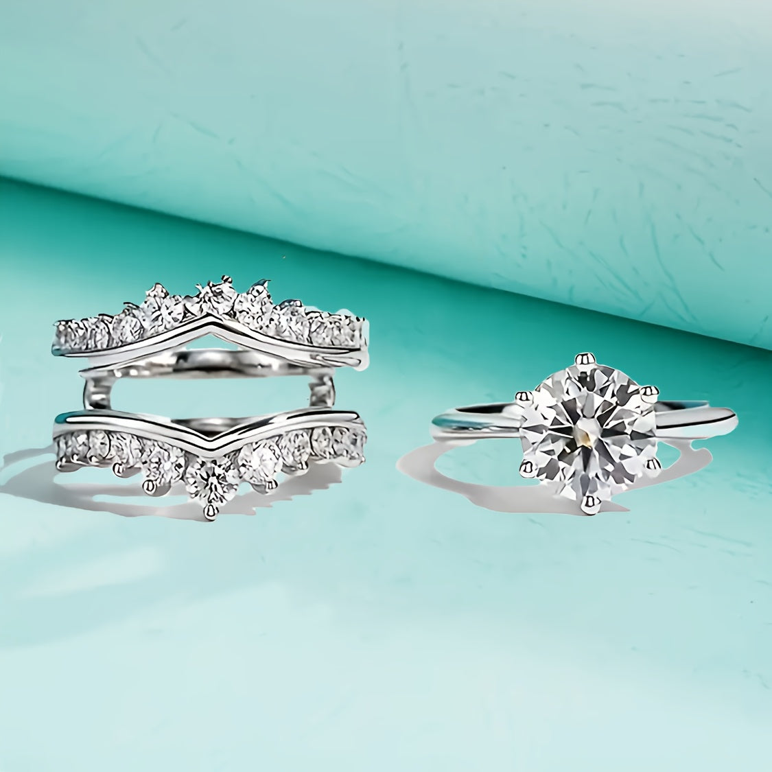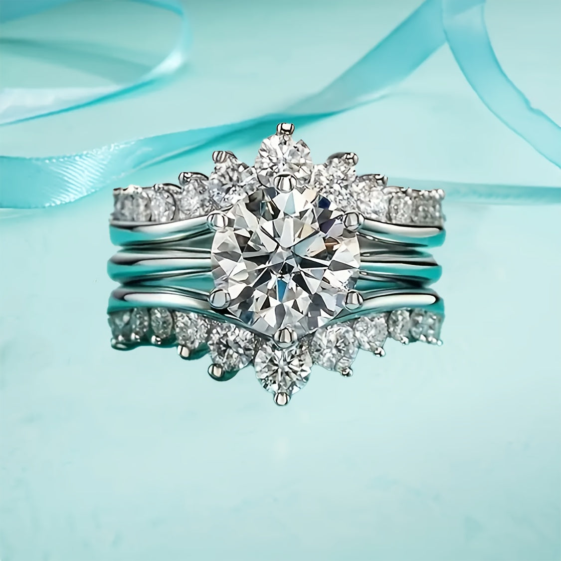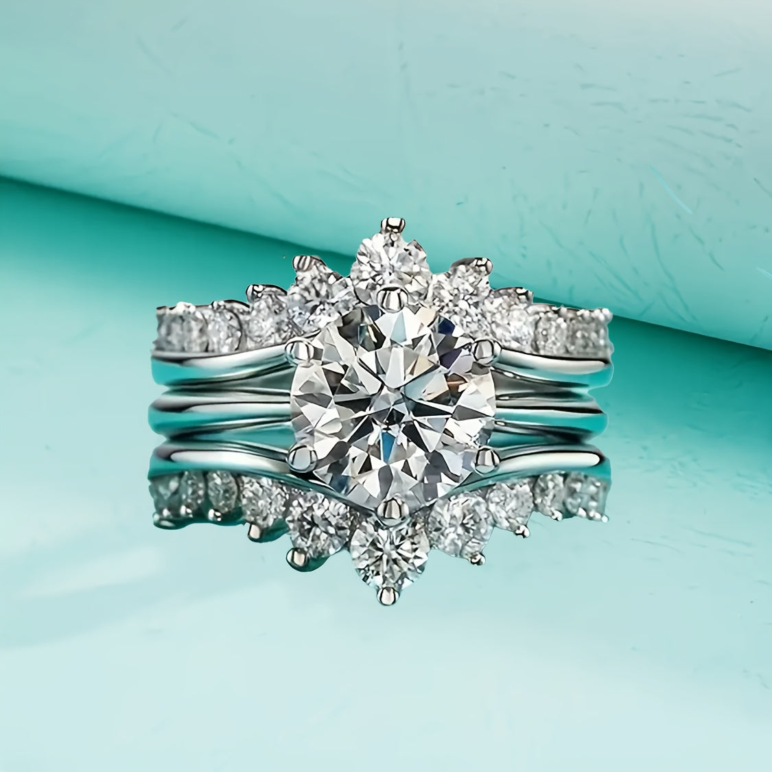 1pc Elegant 925 Sterling Silver Moissanite Engagement Ring Set, 3-Carat Solitaire Bridal Jewelry, High-End Fashion Personalized Gift for Birthday, Anniversary, Self-Treat