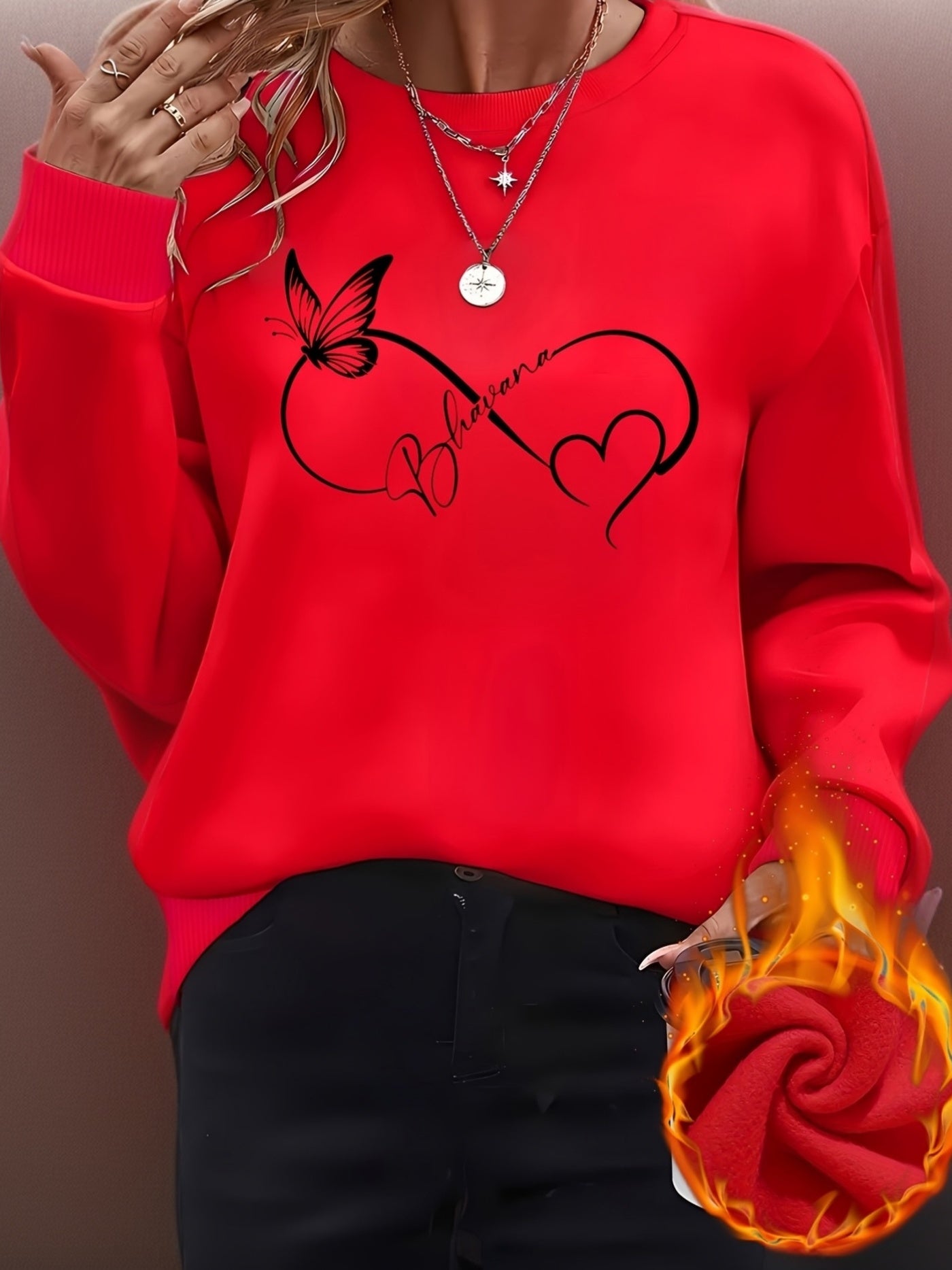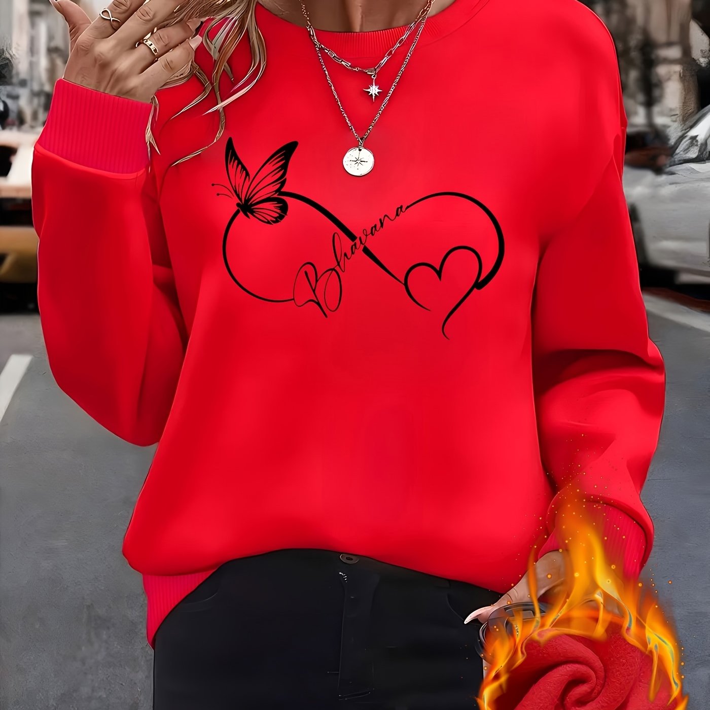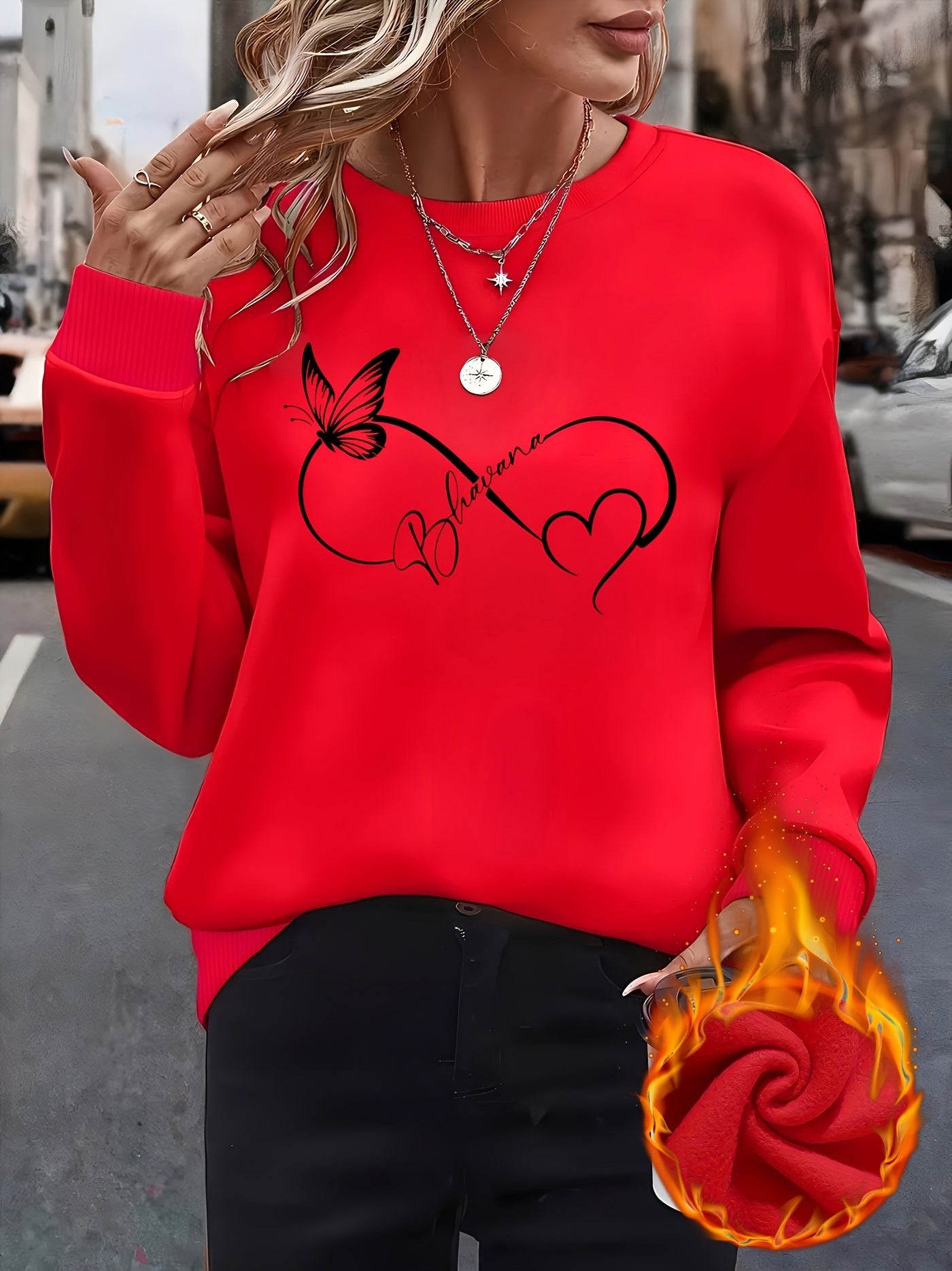 1pc Elegant Butterfly Heart Infinity Design Fleece Long Sleeve Crew Neck Sweatshirt for Women, Polyester Knit Fabric, All-Season Fashion Pullover