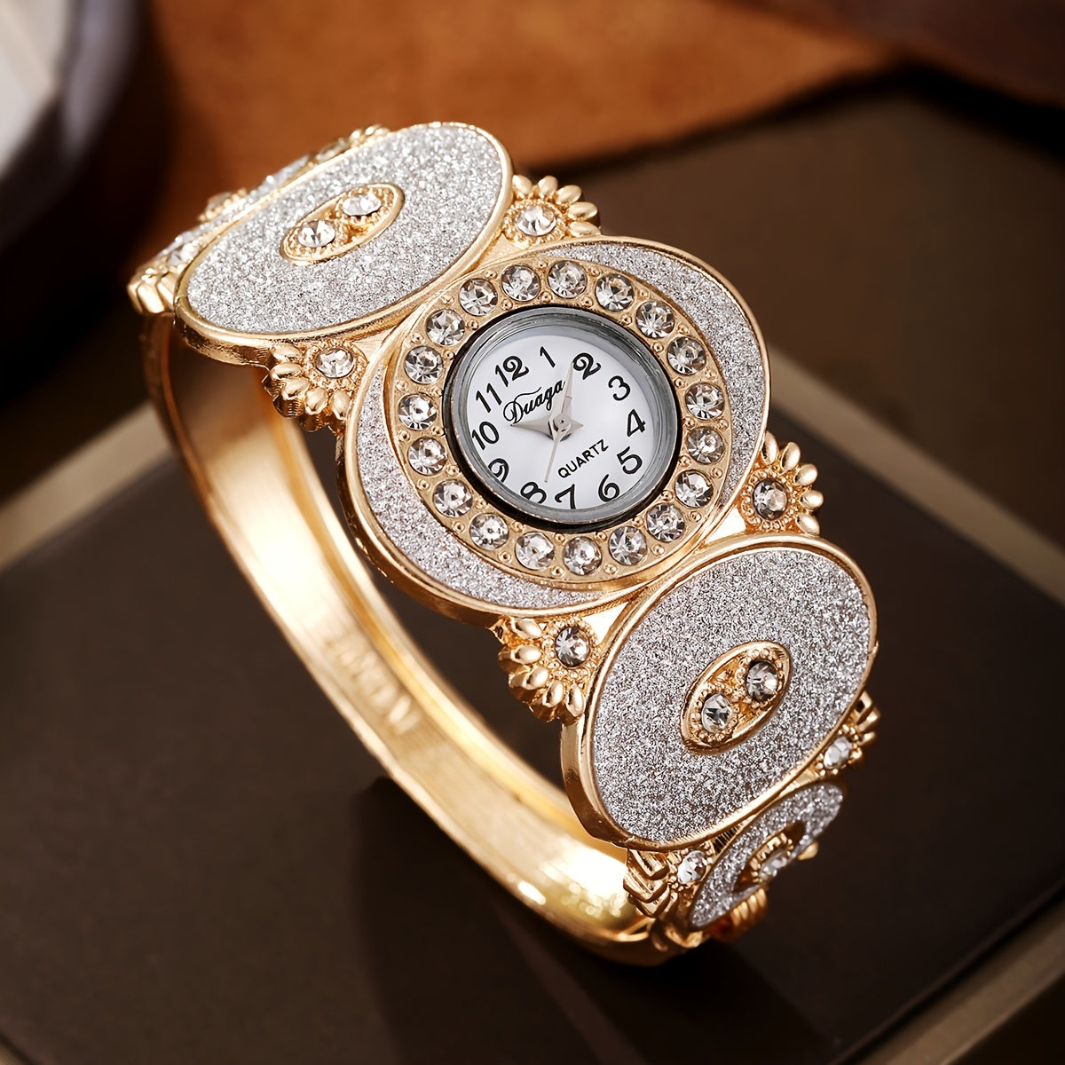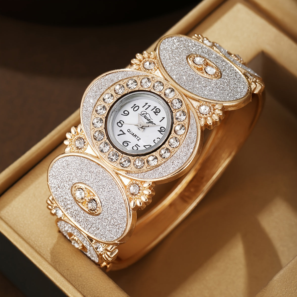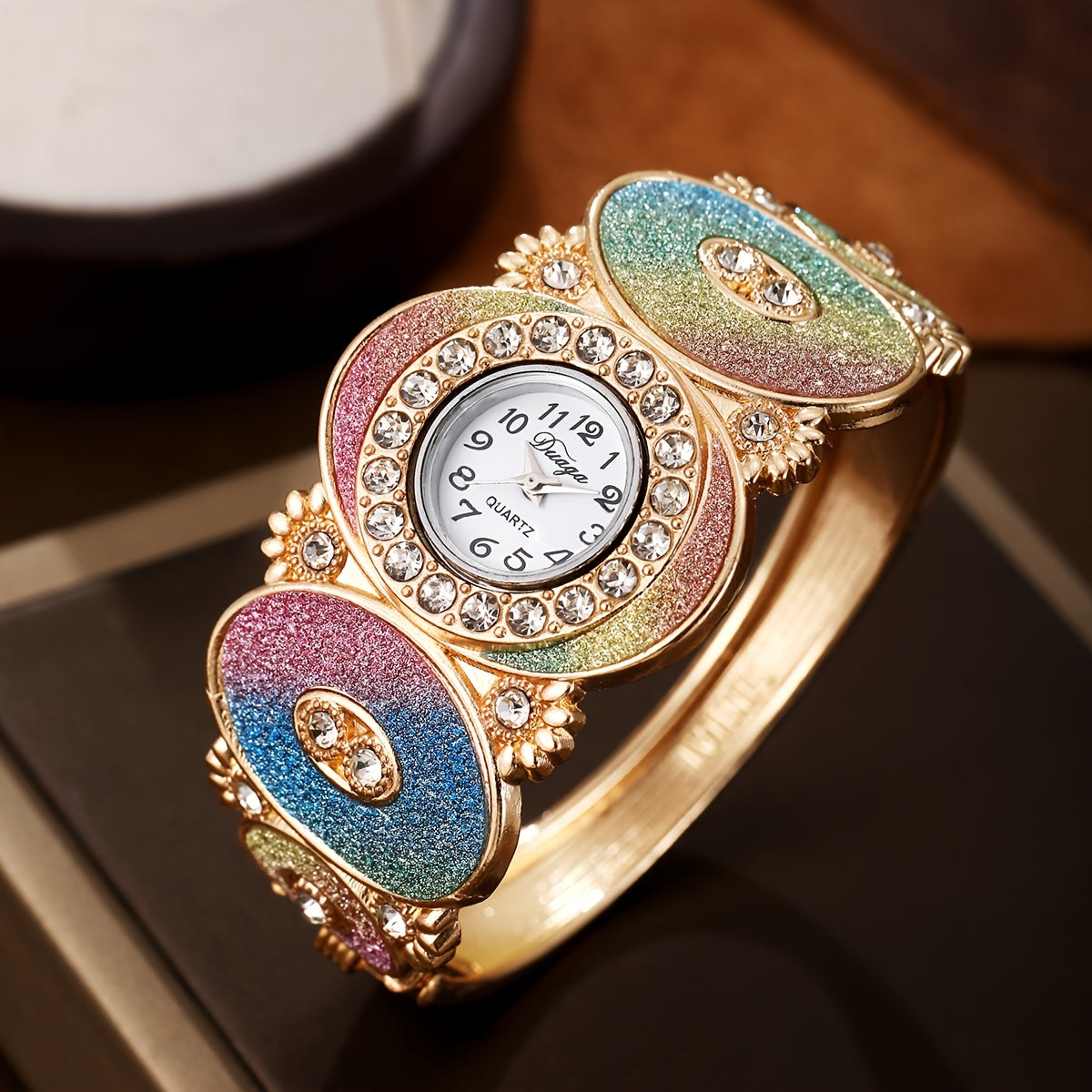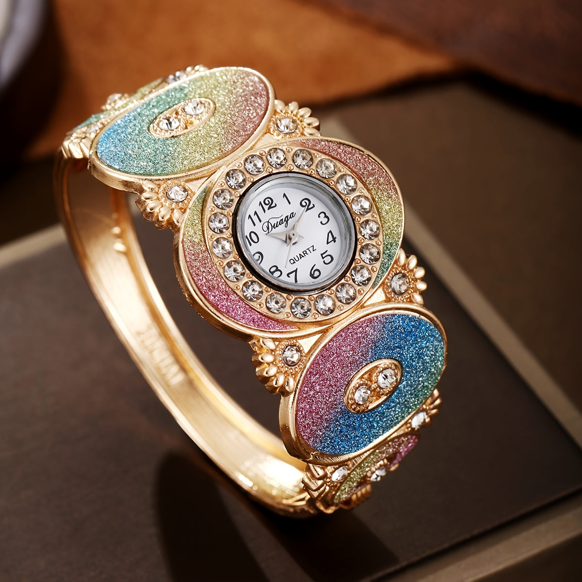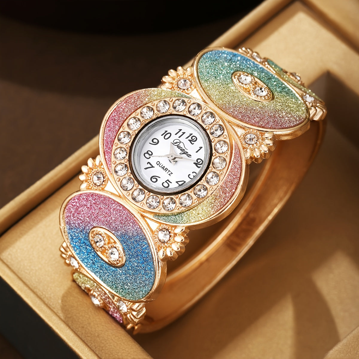 1pc Elegant Oval Women'S Luxury Wristwatch - Quartz Movement, Colorful Gemstone Accents, Golden-Tone Case & Band, Perfect Gift for Mother'S Day, Birthday, or Anniversary, Luxury Wristwatch, Anniversary Gift, Sophisticated Style, Quartz Movement Watch