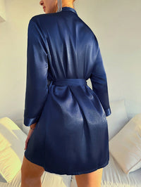 1pc Elegant Women Thin Solid Robe, Sexy Short Tie Waist Sleepwear, Silk Comfortable Loungewear