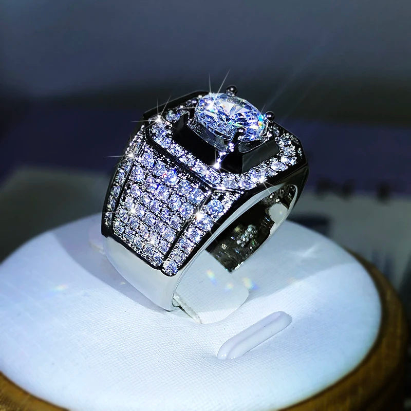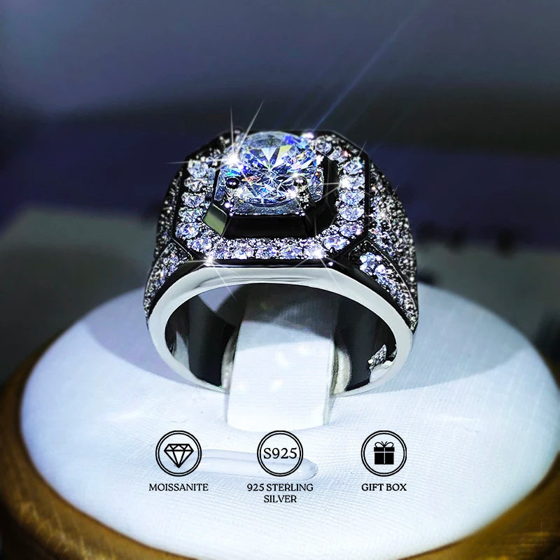 1pc Ethic Diam 925 Sterling Silvery Moissanite Ring for Men, Sports Theme, Synthetic Carbon Silicate, White, with Gift Box, for Ages 15+, Daily Wear & Engagement Gift