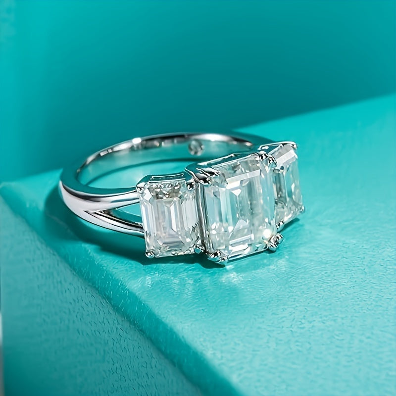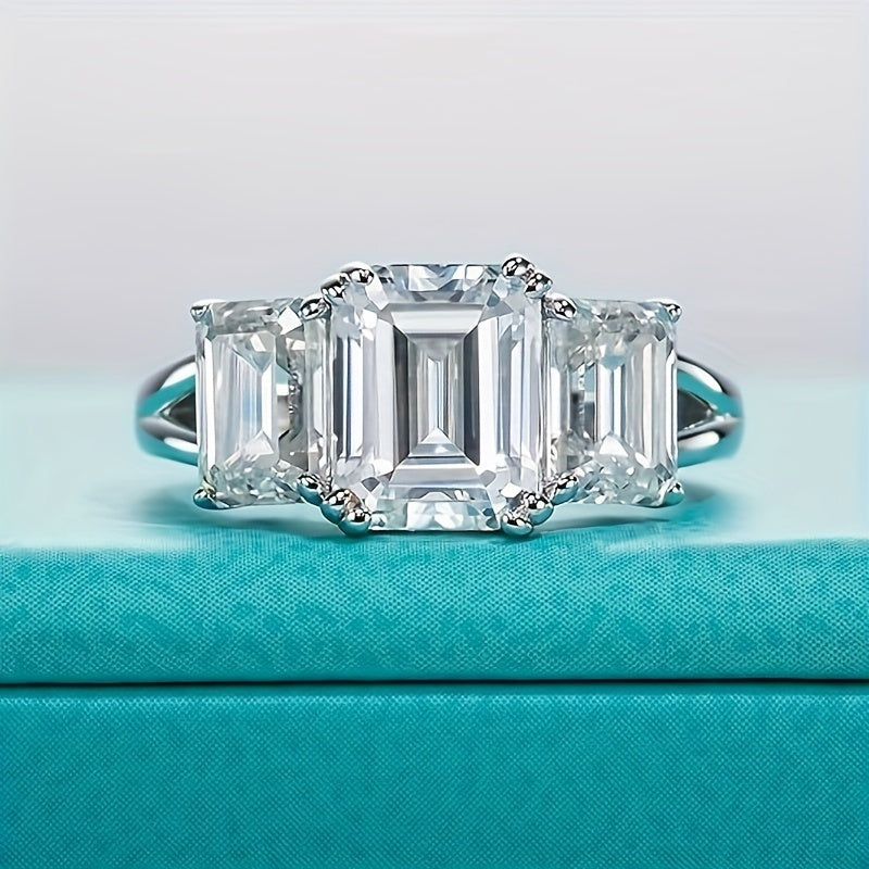 1pc Exquisite 5 Carat Moissanite Unisex Ring, 925 Silvery, Glam Style, Perfect Wedding Engagement Gift for Him/ Her