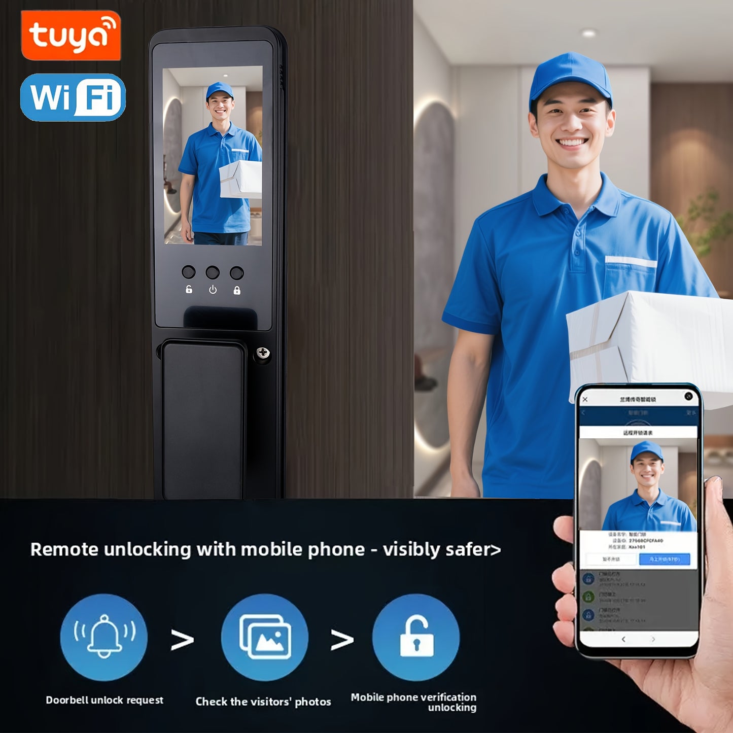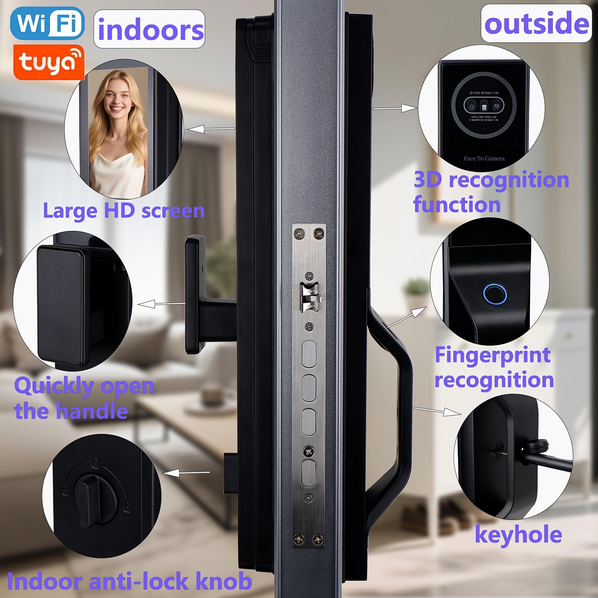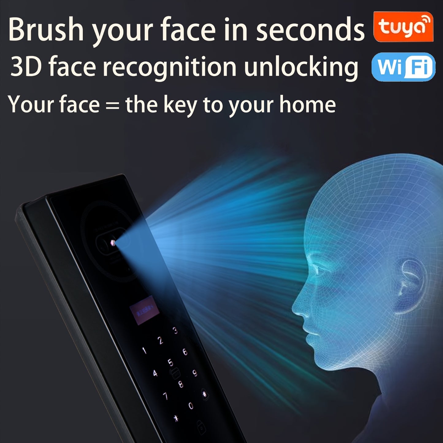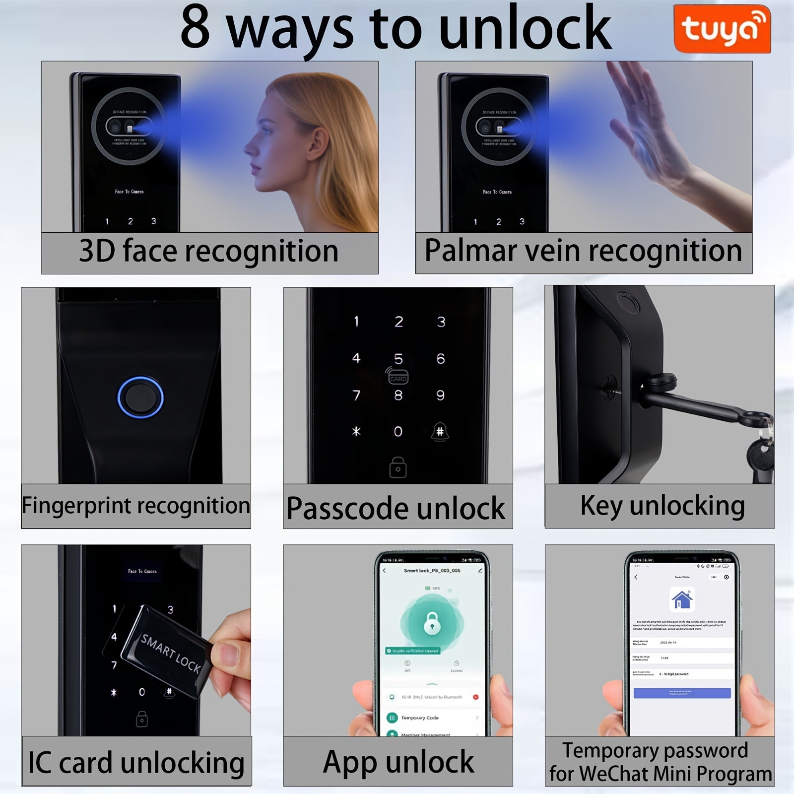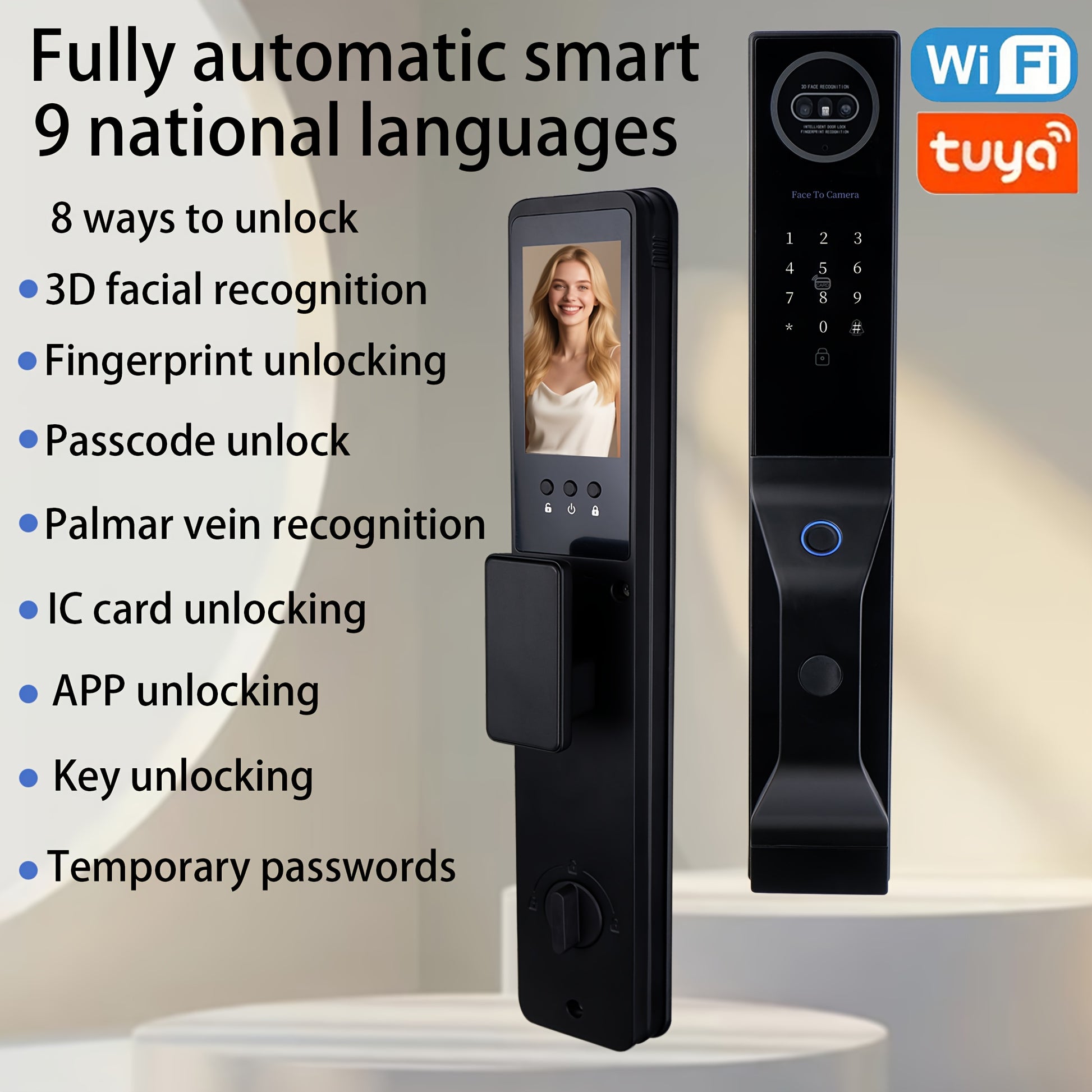 1pc Fully Automatic Smart Door Lock with 9 Chinese Languages, 3D Face & Palm Vein Recognition, Fingerprint Locking, App & Key Access Control, Wireless Connectivity, Battery-Powered - Secure Entry Door Lock for Home, Office, Hotel, Smart Locks for Entry Do