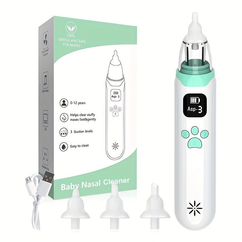 1pc Green Electric Nose Sucker, Automatic Nasal Cleaner with 3 Suction Levels, Easy to Use Plastic Nose Cleaning Device for Home Use, Nasal Cleansing Device | Ergonomic Design | Easyclean Material