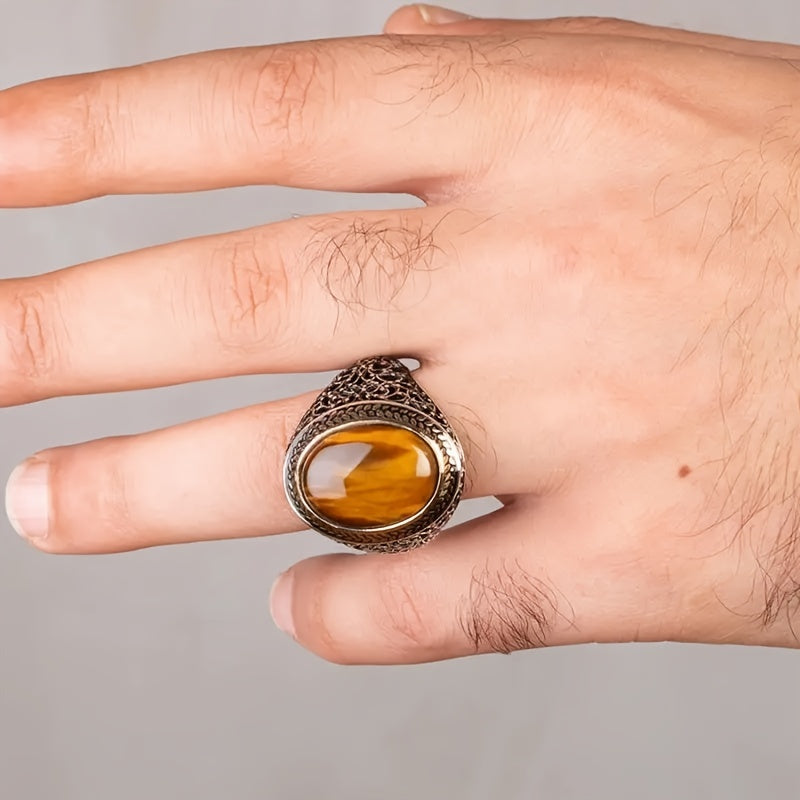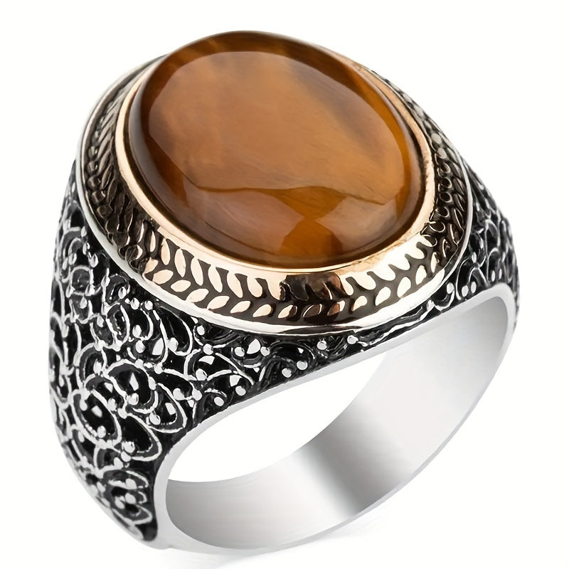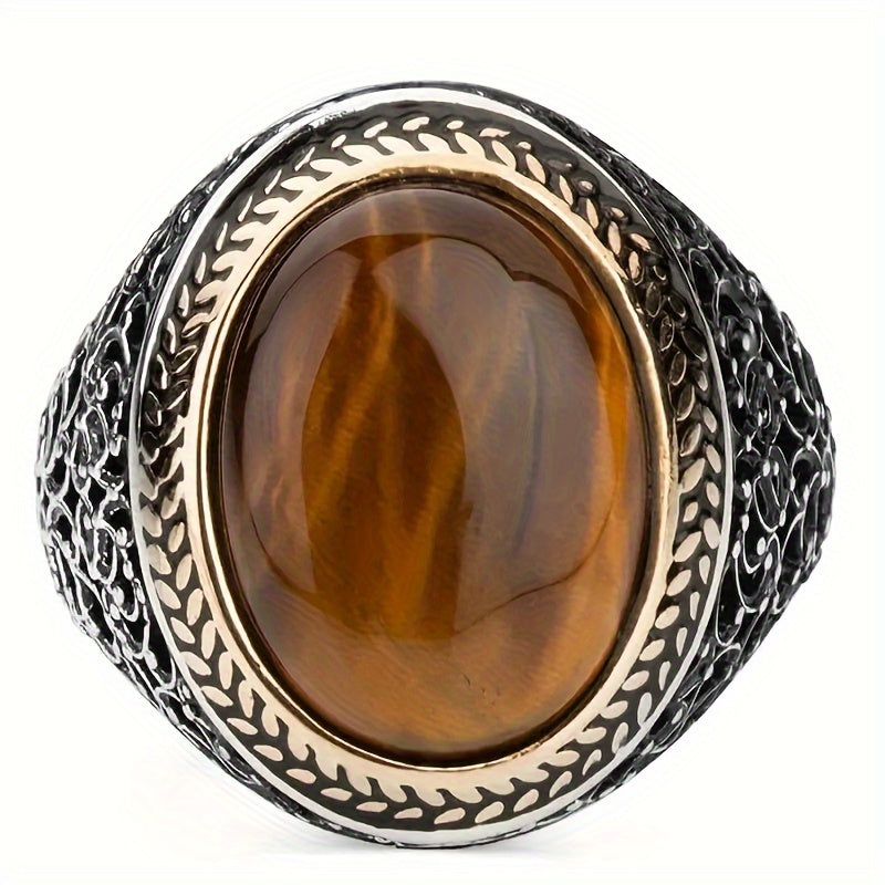 1pc High Quality Copper Vintage Creative Men'S Personalized Fashion Hip Hop Punk Ring with Tiger Eye Stone Ring, Perfect Jewelry Gift for European and American Men