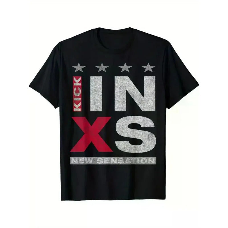 1pc INXS Kick New Sensation Logo T-Shirt 100% Cotton Crew Neck Short Sleeve Tee Geometric Pattern All-Season Medium Stretch
