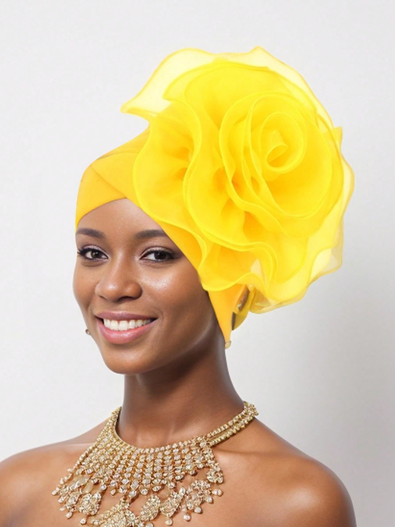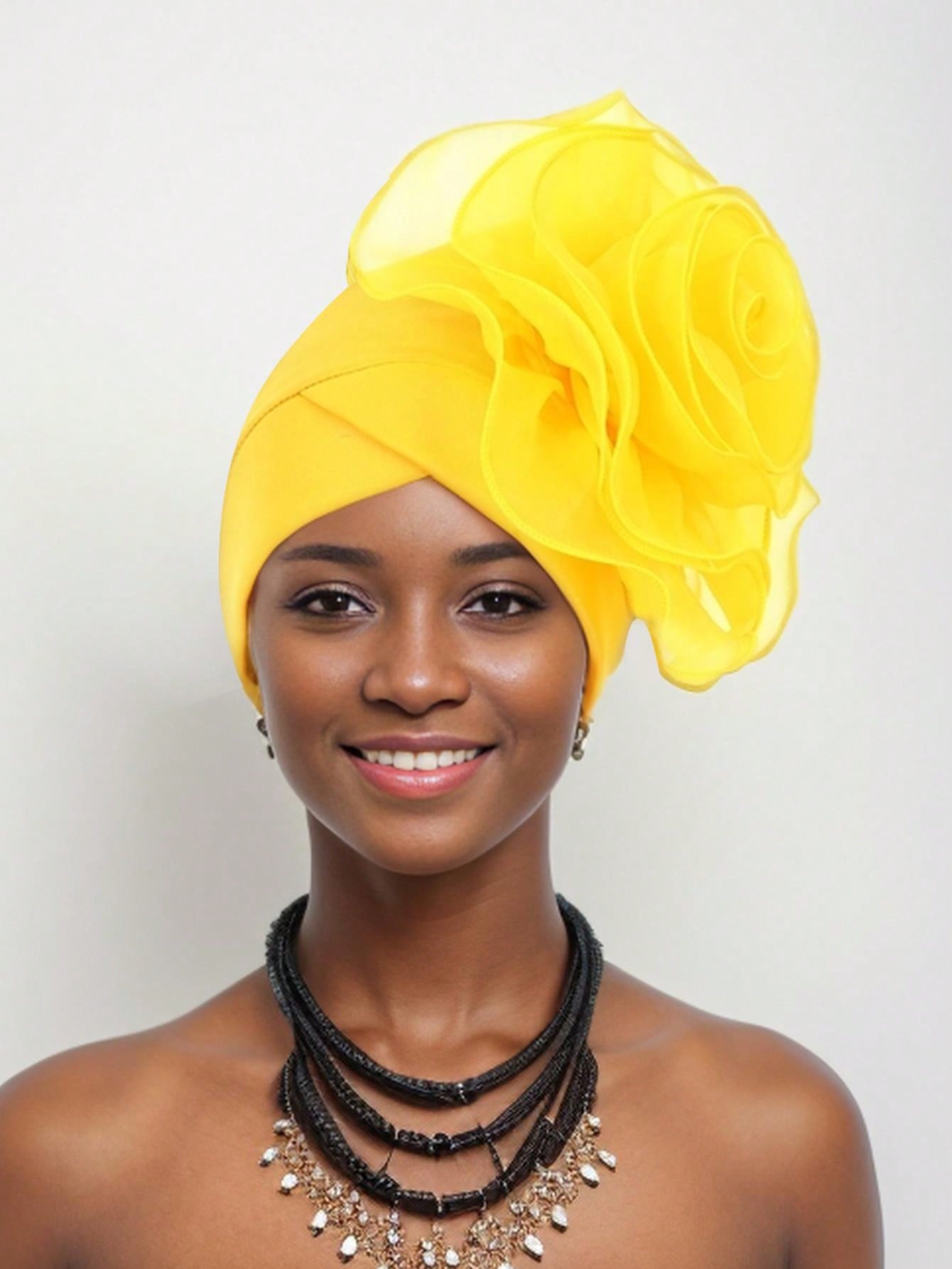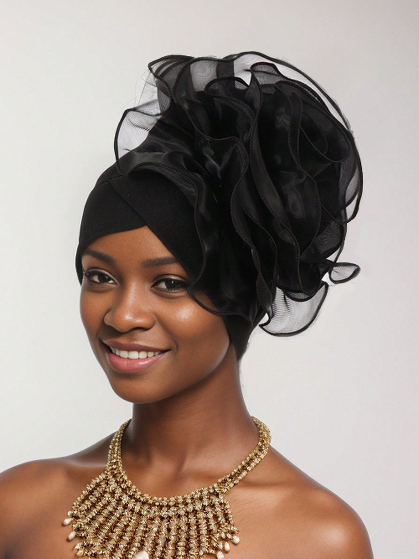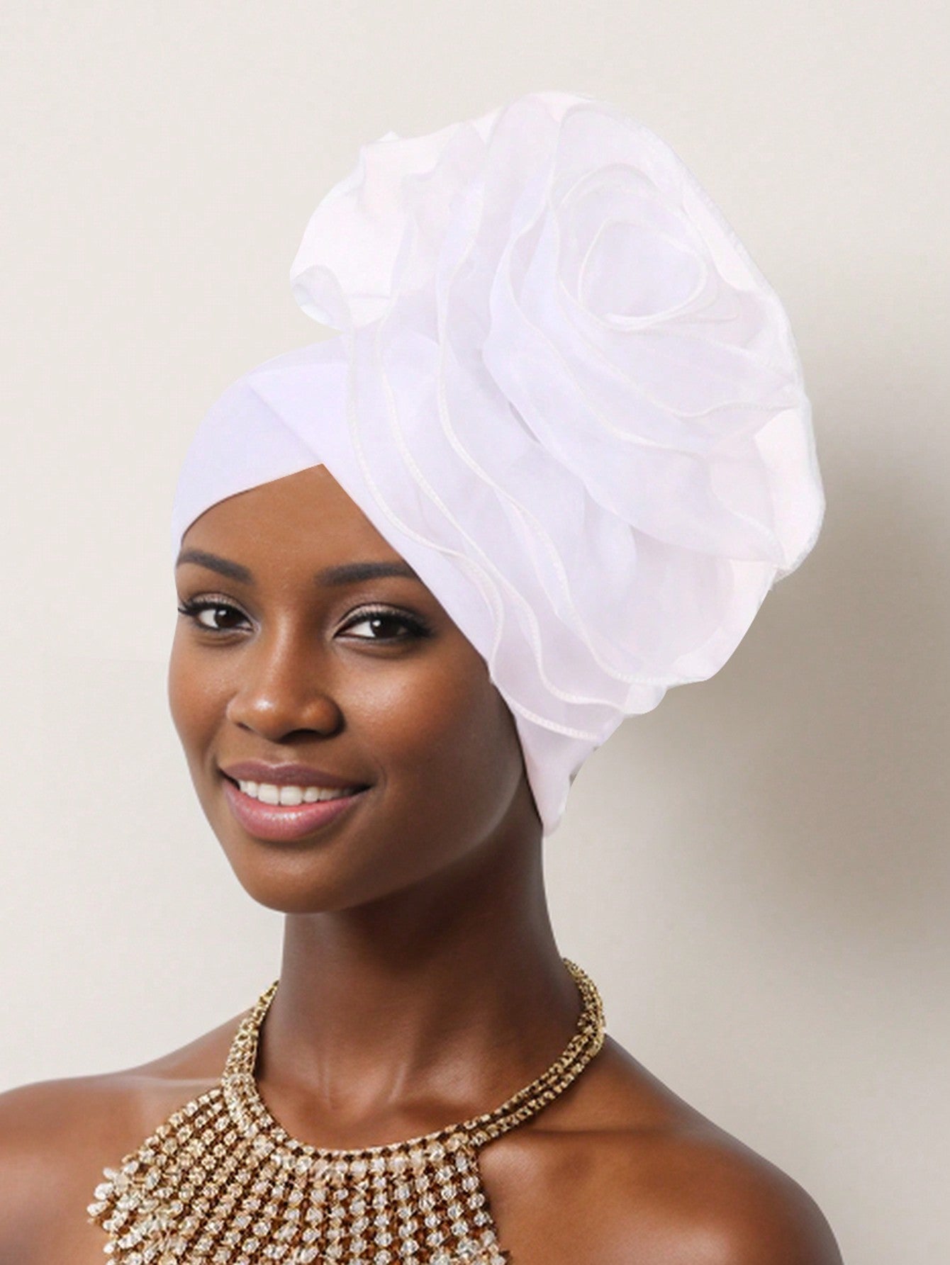 1pc Ladies' New European And American Fashion Comfortable & Elegant Large Flower Statement Cap With Heavy Work, Wrapped Headscarf/African Turban Hat Valentine's Day Valentines