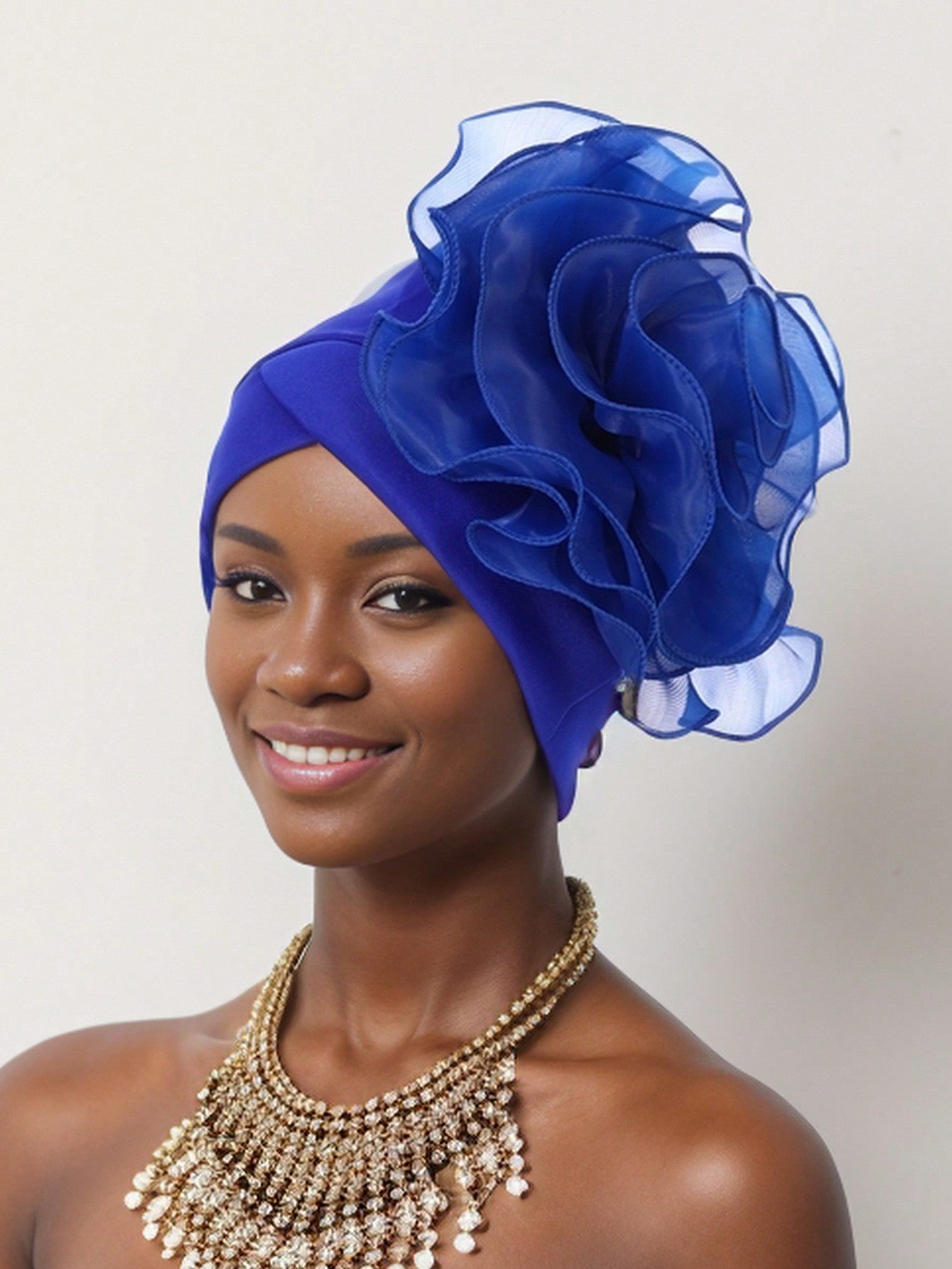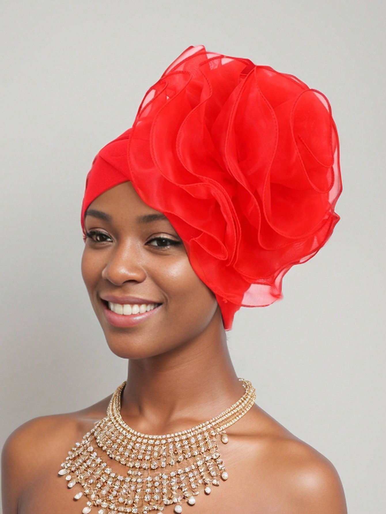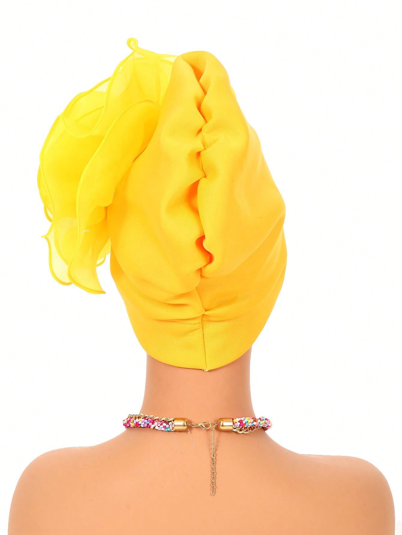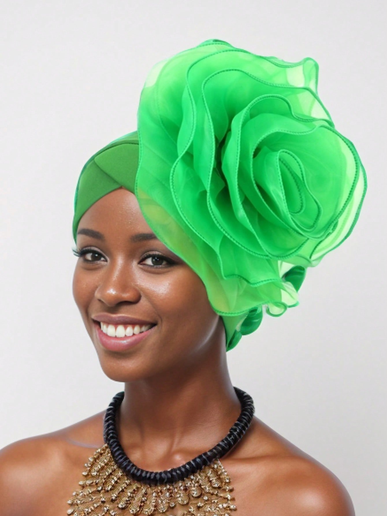 1pc Ladies' New European And American Fashion Comfortable & Elegant Large Flower Statement Cap With Heavy Work, Wrapped Headscarf/African Turban Hat Valentine's Day Valentines