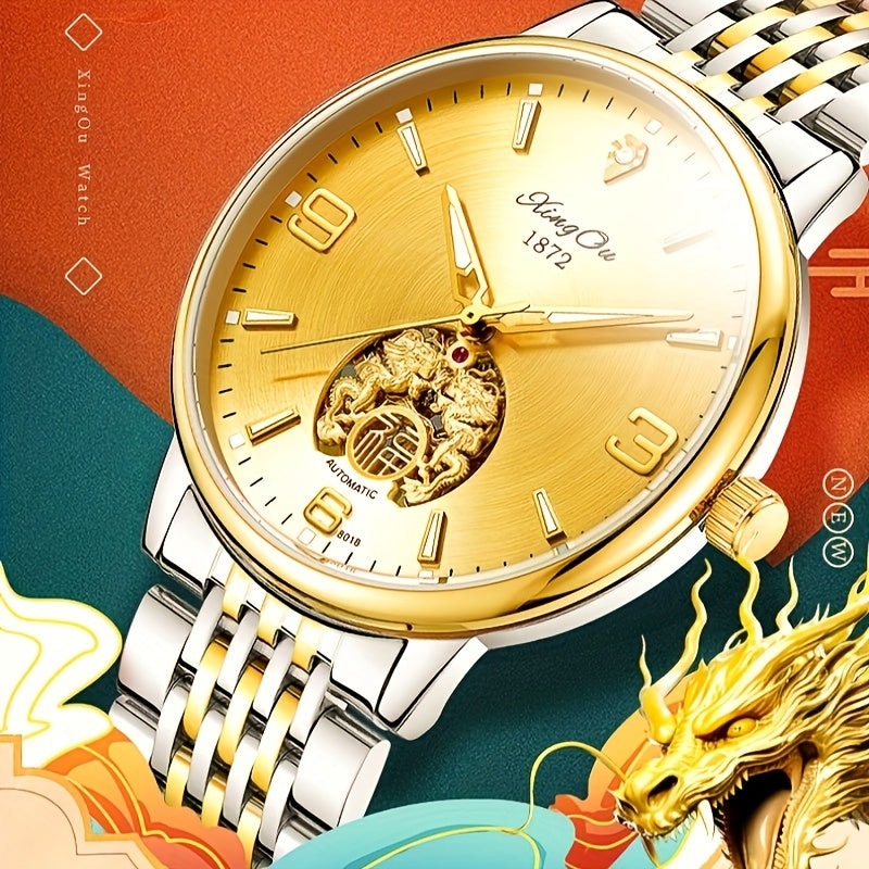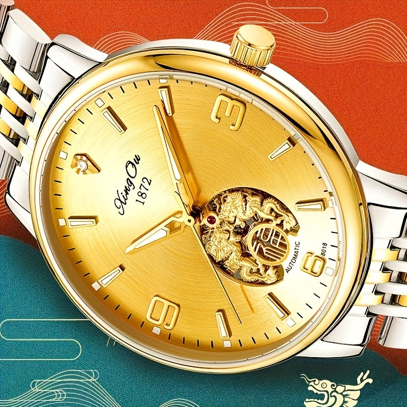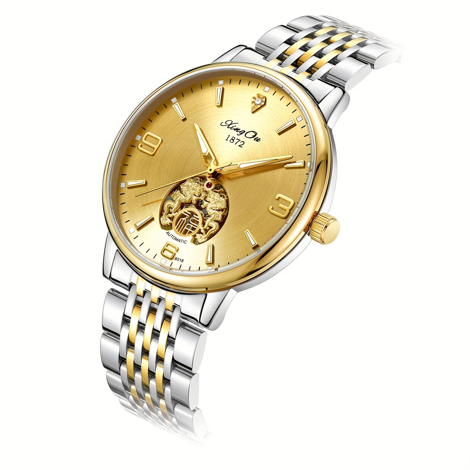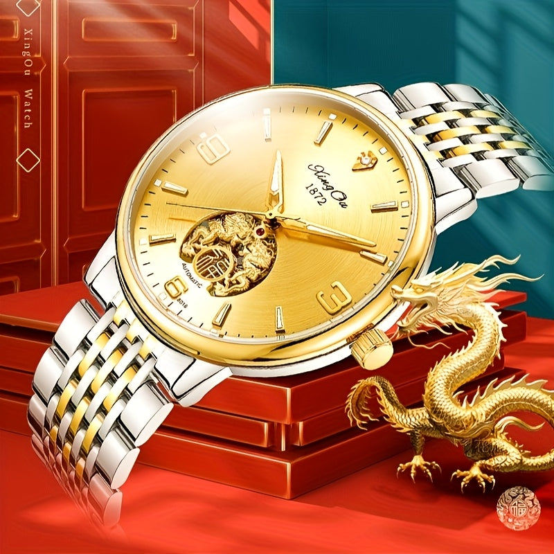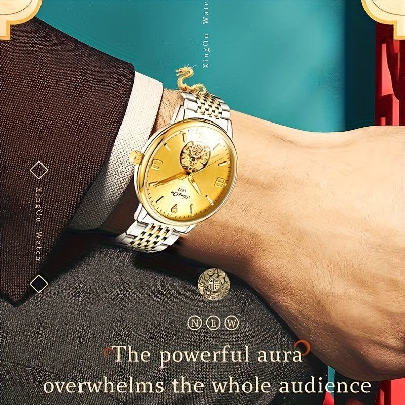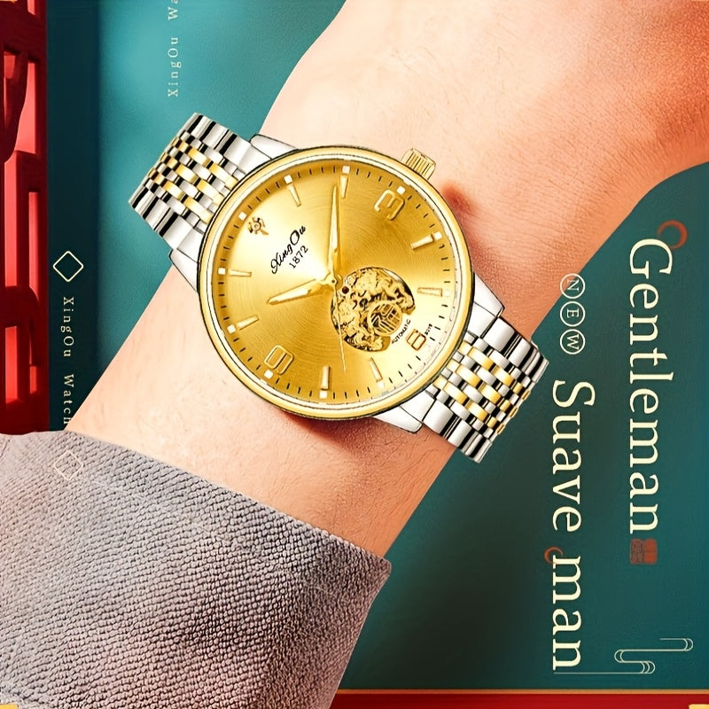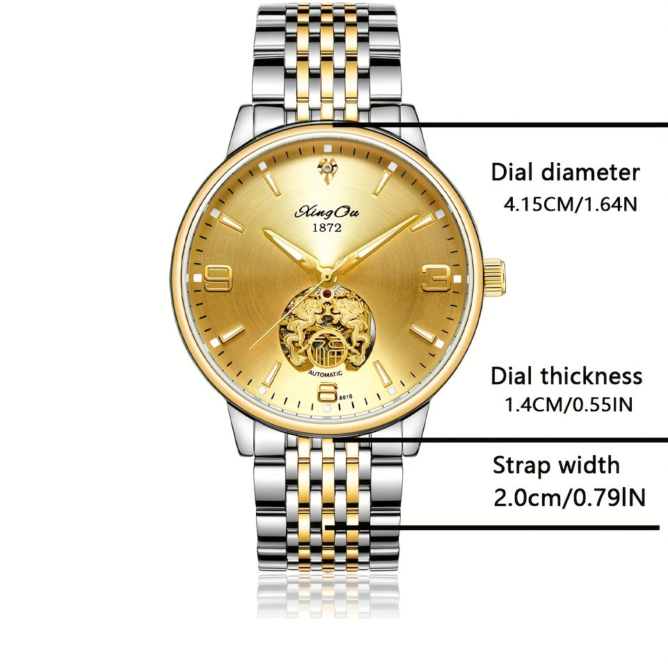 1pc Mechanical Watch for Men & Women - Stainless Steel Strap, Automatic Movement (Wind Every 2 Days) - Elegant Golden-Tone Dial with - Business, Formal & Everyday Watch - Mechanical Watch for Men Women - Ideal Gift for Father's Day, Birthdays, Anniversari