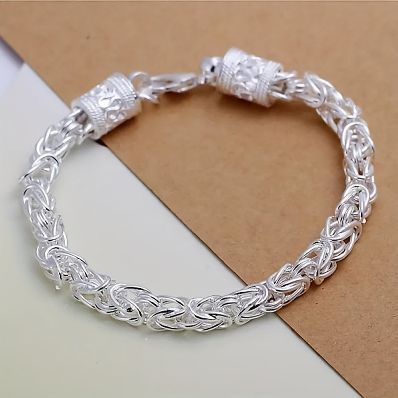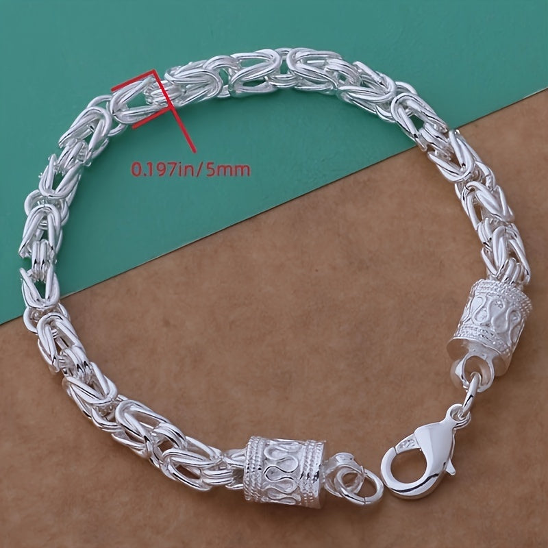 1pc Men's 925 Sterling Silver 5mm Solid Boho Style Dragon's Head Chain Link Bracelet, Elegant Minimalist Jewelry, No Magnetic Clasp