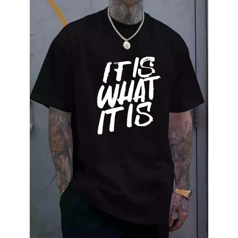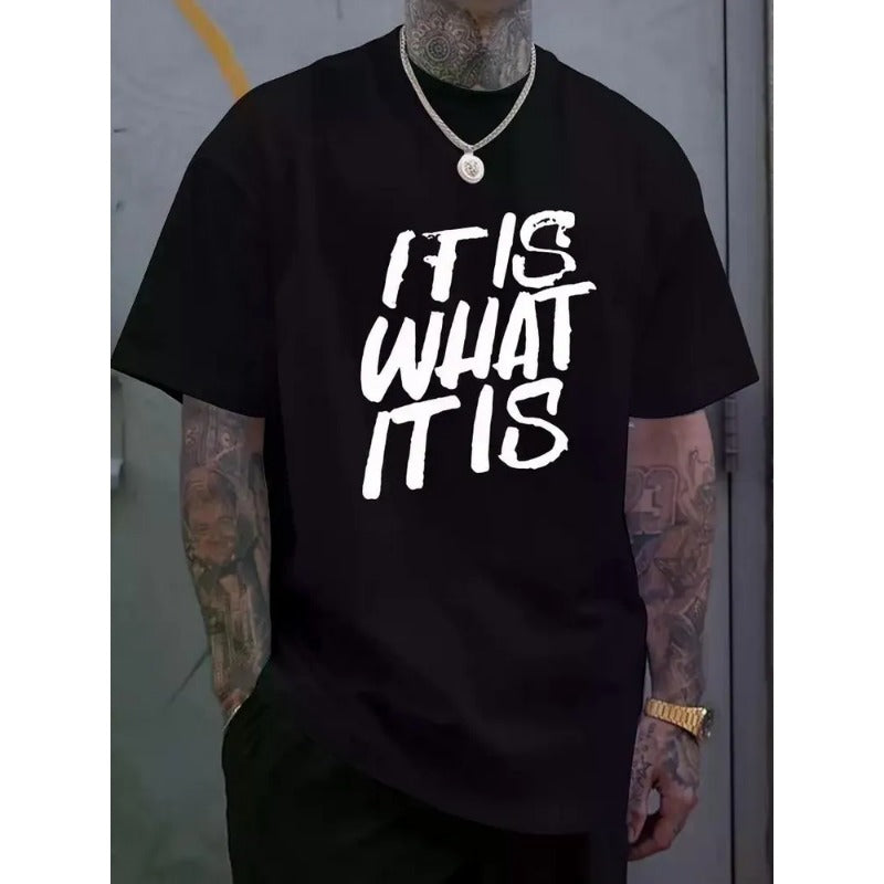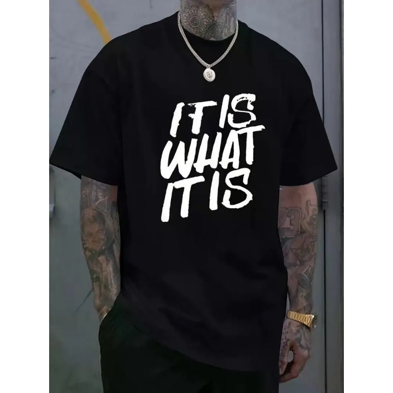 1pc Men'S Casual Cotton T-Shirt with "IT IS WHAT IT IS" Print Crew Neck