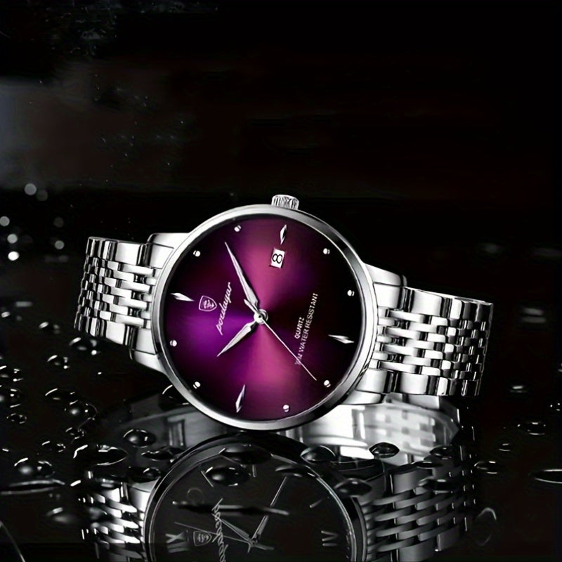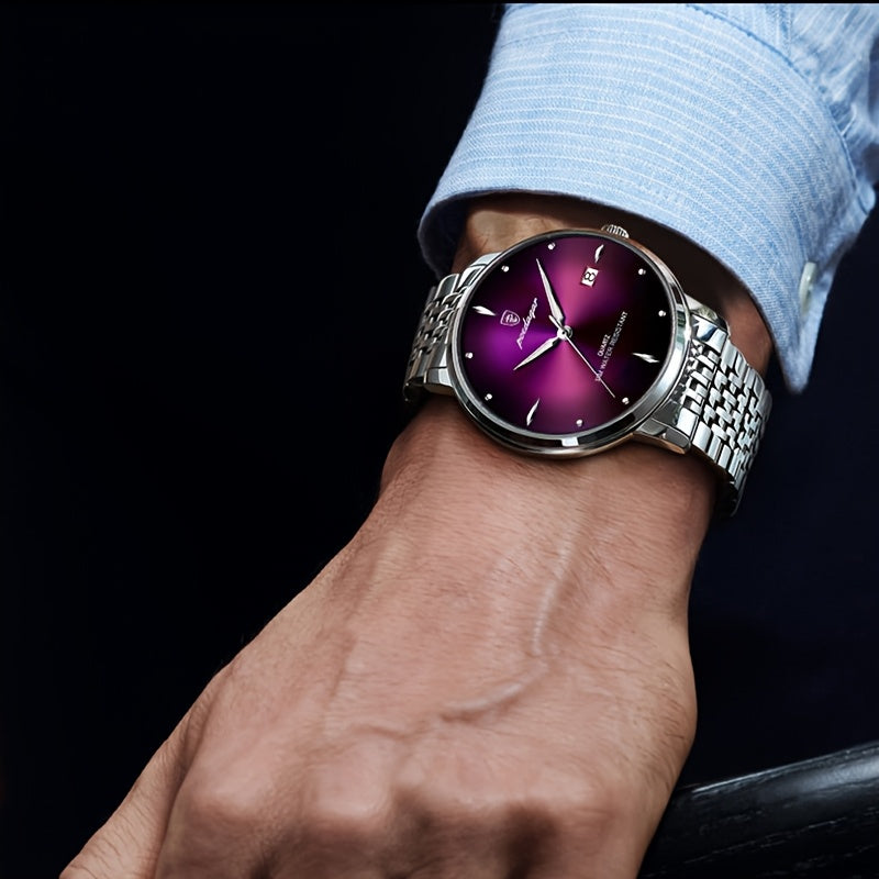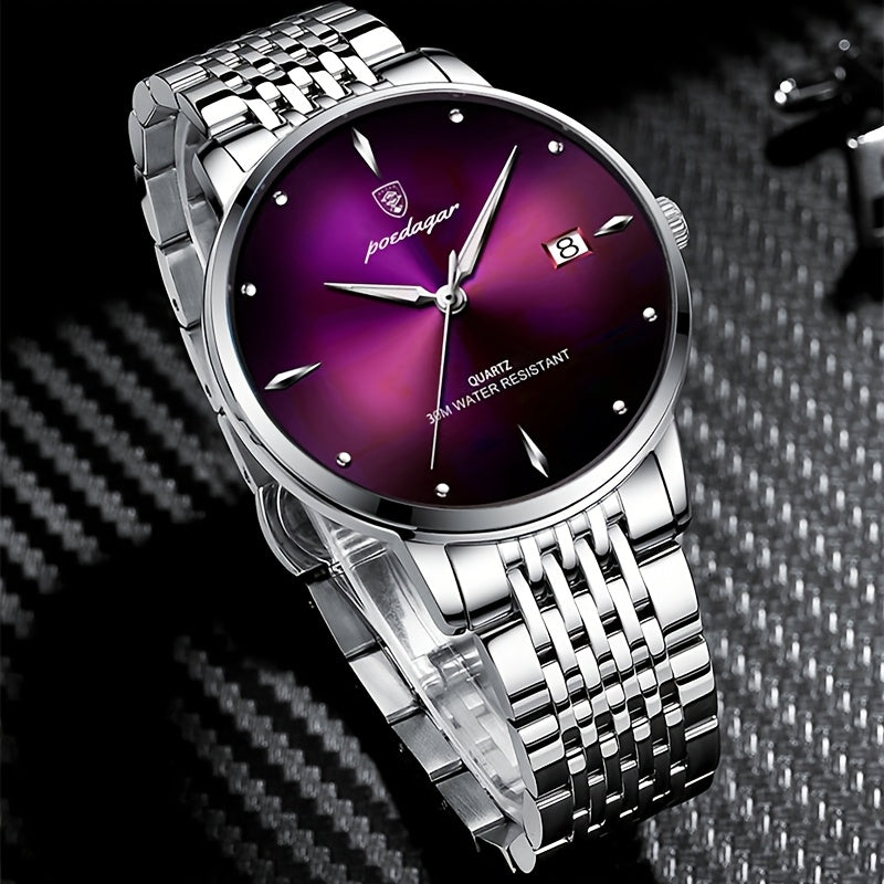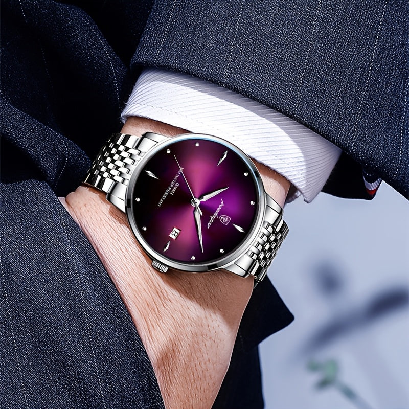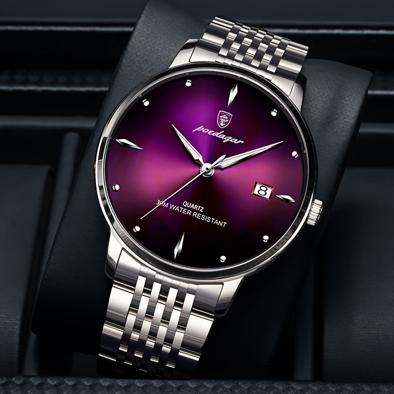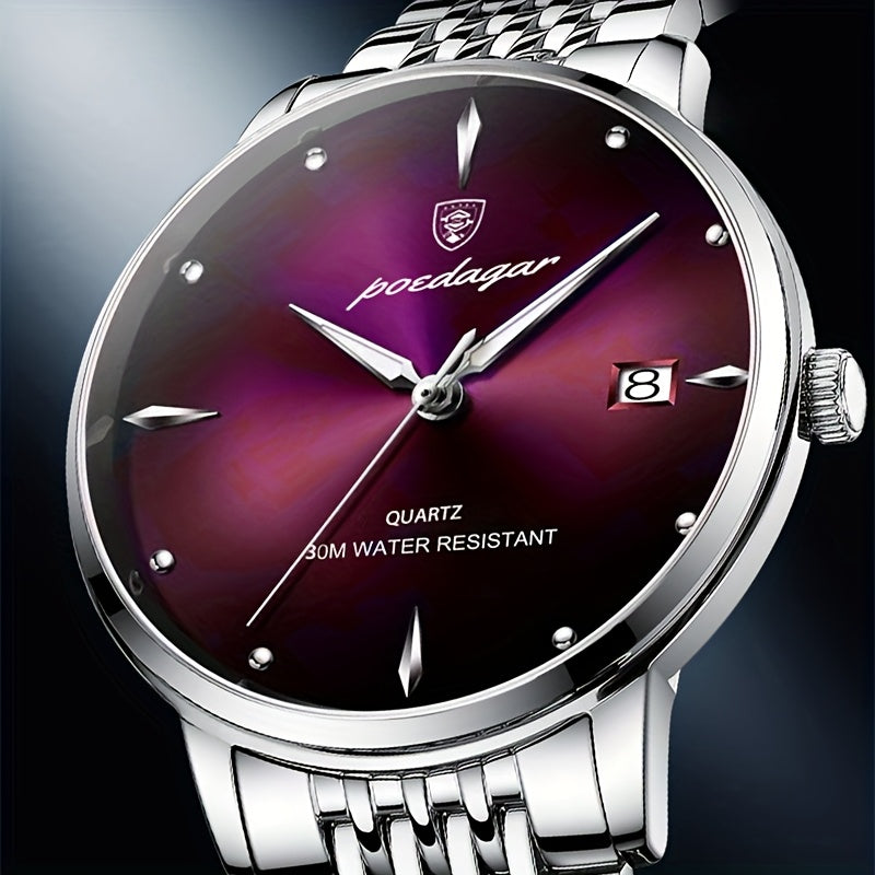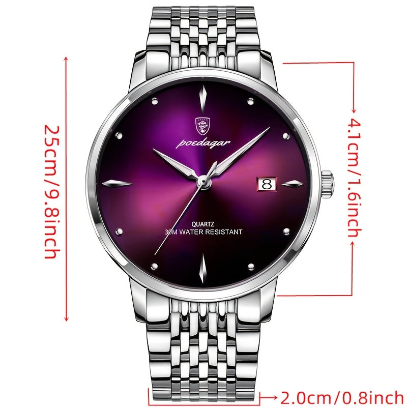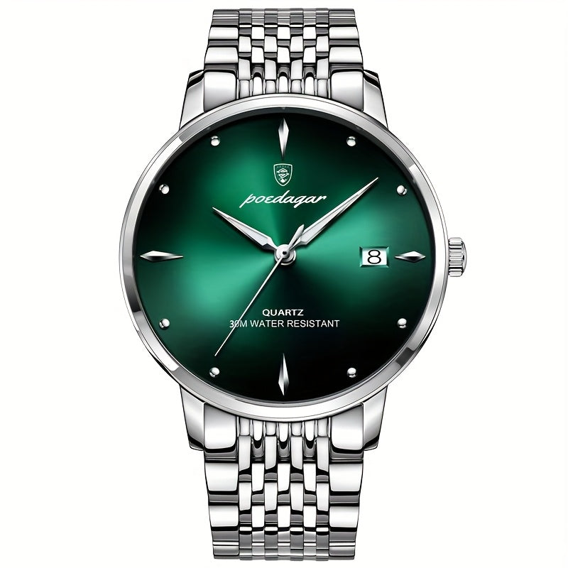 1pc Men'S Casual Stainless Steel Quartz Wrist Watch with Date Feature, Water Resistant, Round Dial, Glow Detail, Battery Powered Electronic Movement - Ideal Gift for Business, Birthday, Anniversary