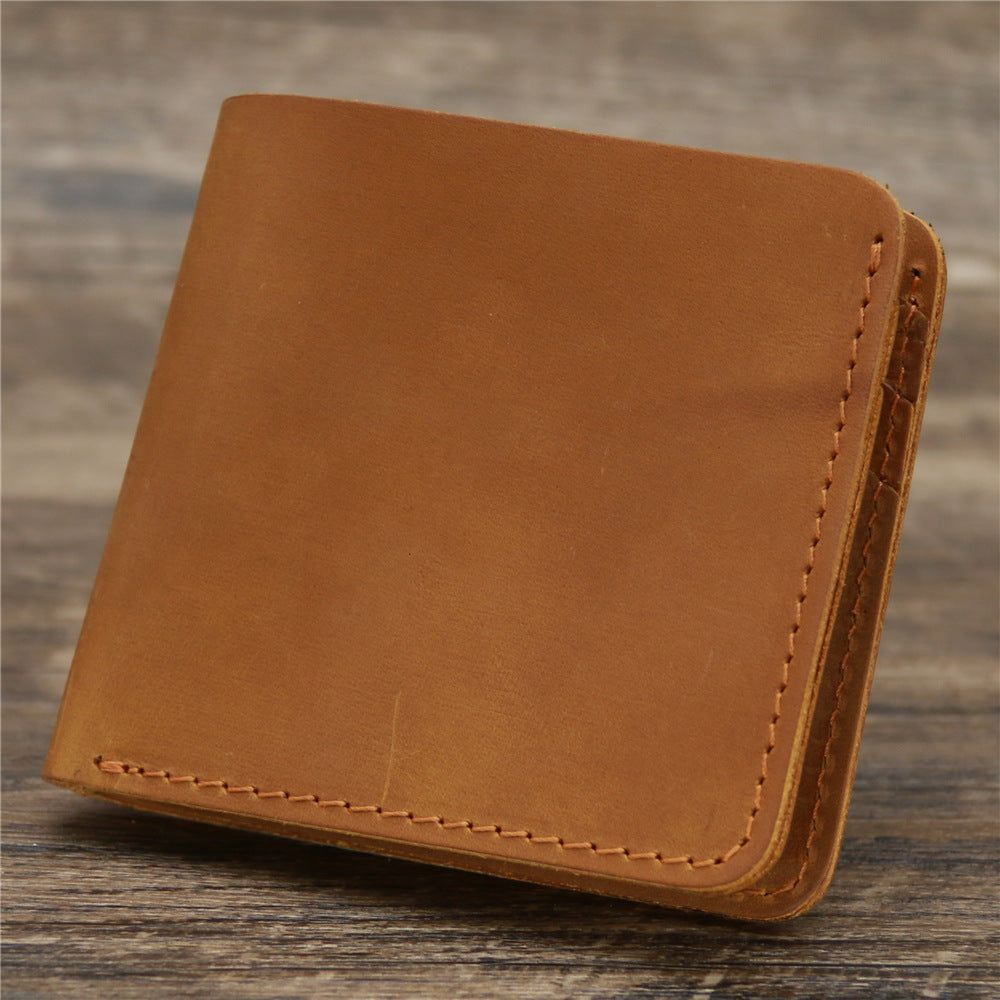 1pc Men's Genuine Crazy Horse Leather Wallet - Slim Brown Cowhide Design with Multiple Card Slots, Minimalist Style for Everyday Use