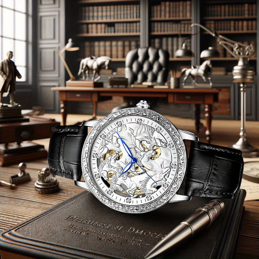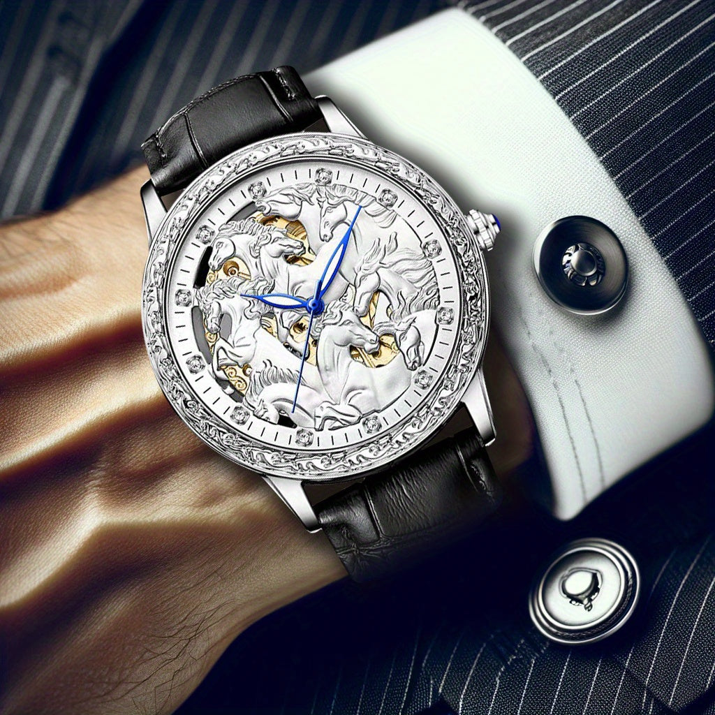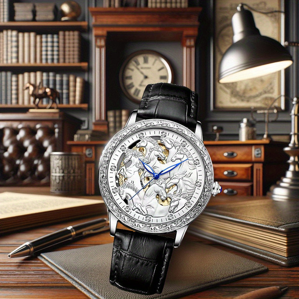 1pc Men's Silvery shell white face black belt Wanma Pentium design fashionable and versatile personality simple automatic mechanical watch, Stylish Wristwatch, Casual Attire Watch, Minimalist Design, Elegant Wristwatch, Automatic Movement, Highquality Tim