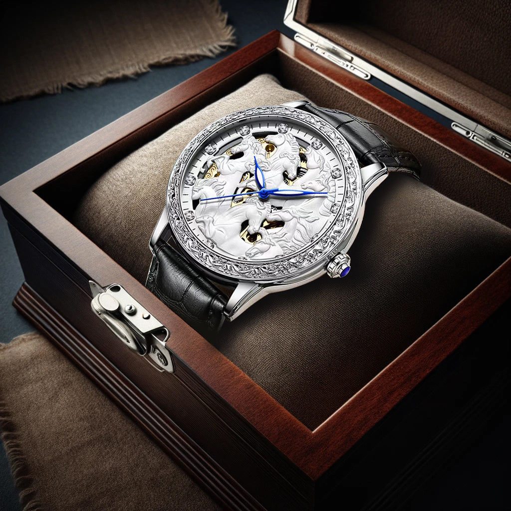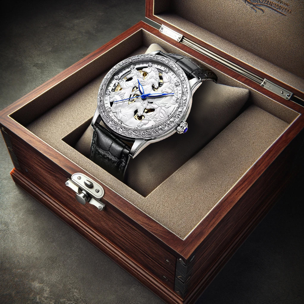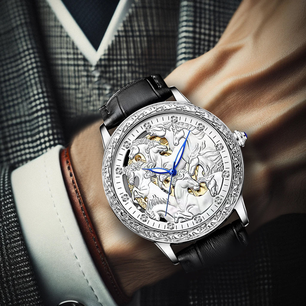 1pc Men's Silvery shell white face black belt Wanma Pentium design fashionable and versatile personality simple automatic mechanical watch, Stylish Wristwatch, Casual Attire Watch, Minimalist Design, Elegant Wristwatch, Automatic Movement, Highquality Tim