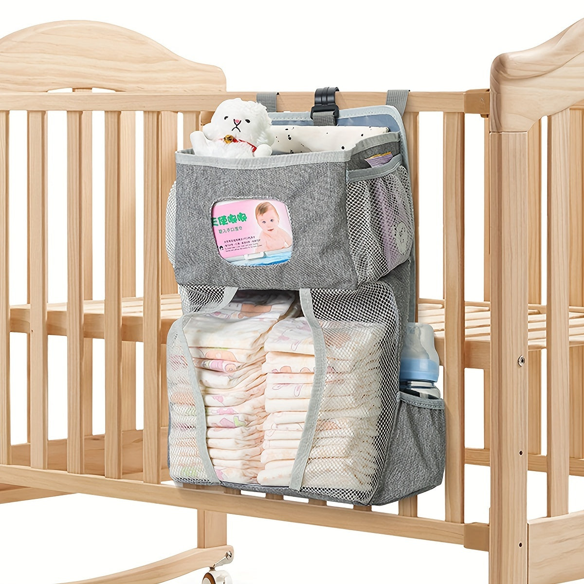 [1pc Multi-Functional Crib Organizer] 1pc Multi-Functional Polyester Crib Organizer Hanging Storage Bag, Large Capacity Nursery Caddy with Pockets for Diapers, Toys, and Essentials