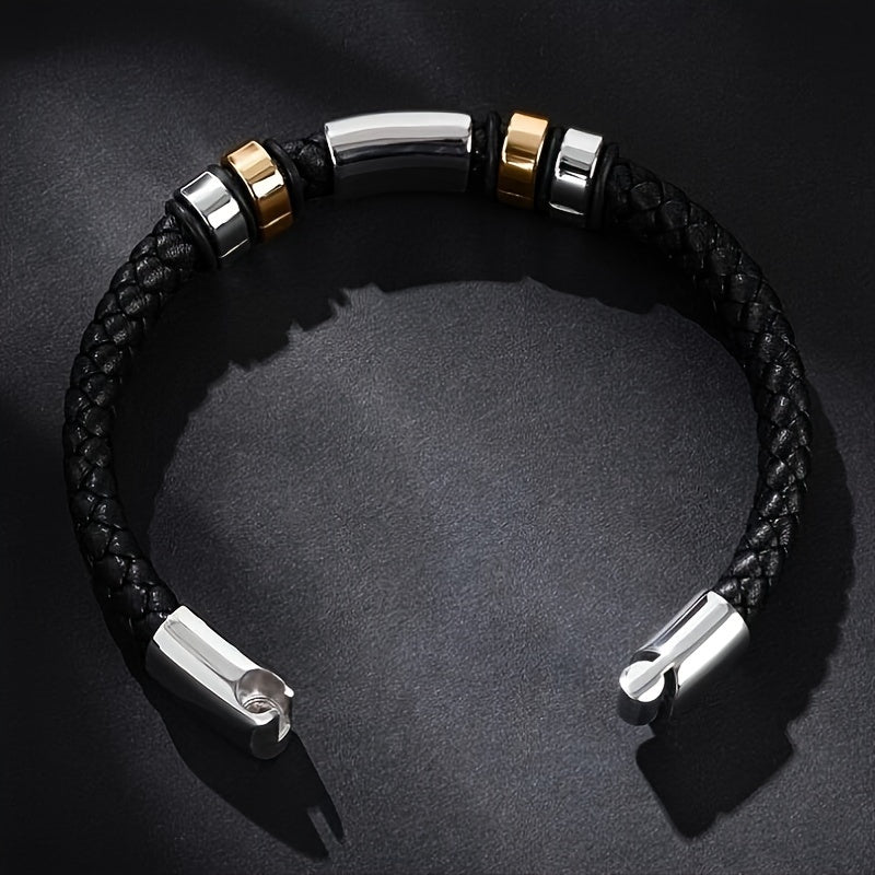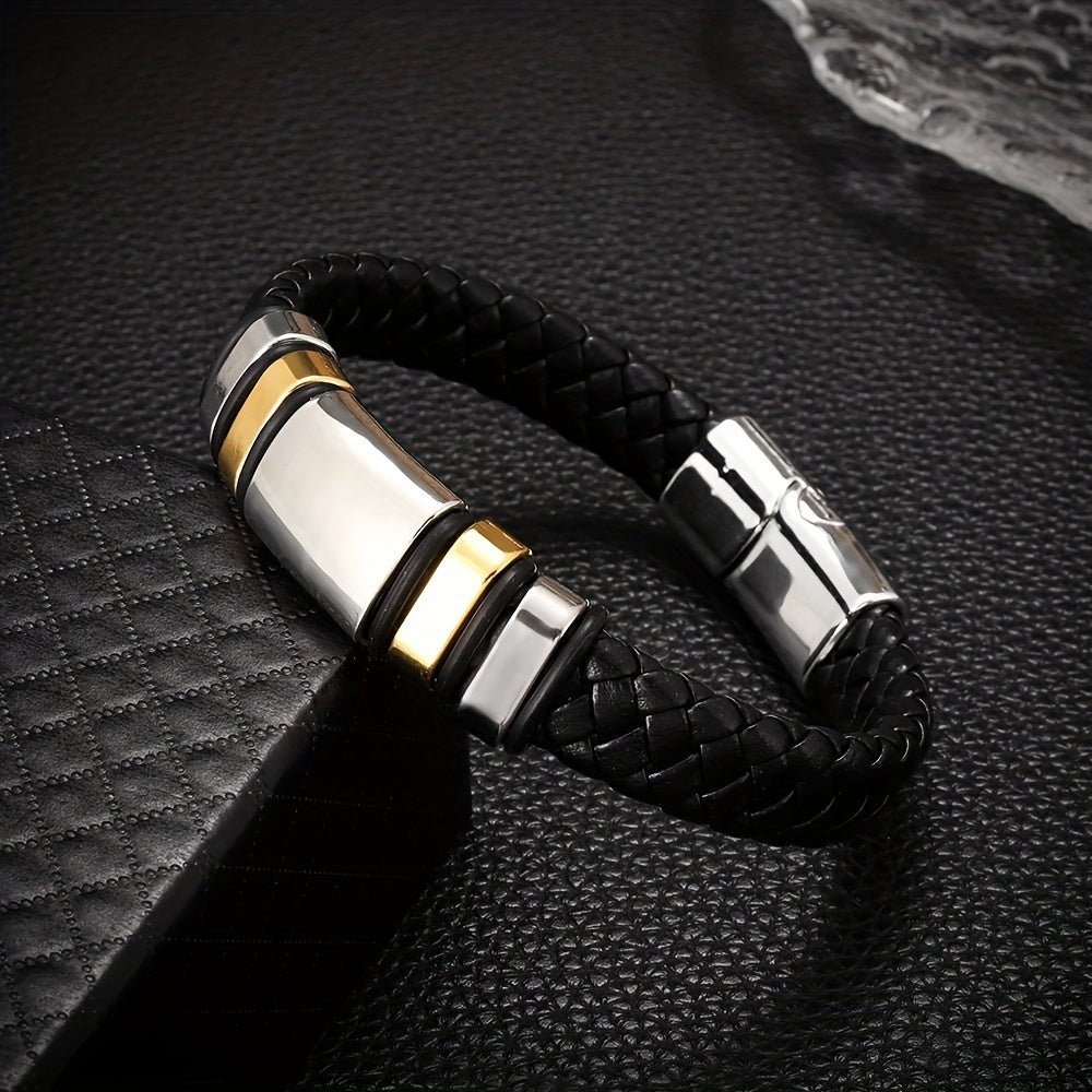 1PC New Men's Classic Single Layer Hand Woven Leather Bracelet With Magnetic Closure Charm Fashion Casual Jewelry Gift