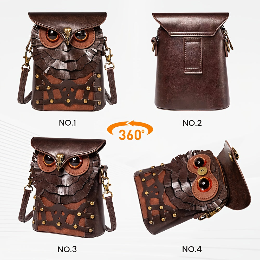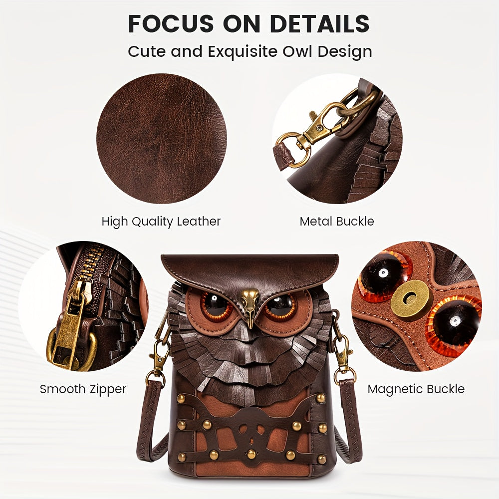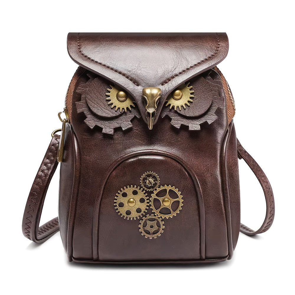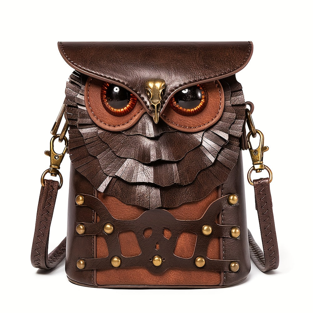 1pc Steampunk Owl Crossbody Bag for Women - Faux Leather Houndstooth Messenger Purse with Zipper Closure, Polyester Lined, Secure Edge Paint, Cell Phone & Essential Holder