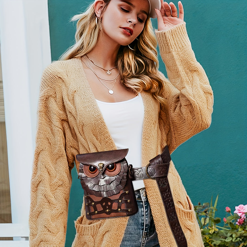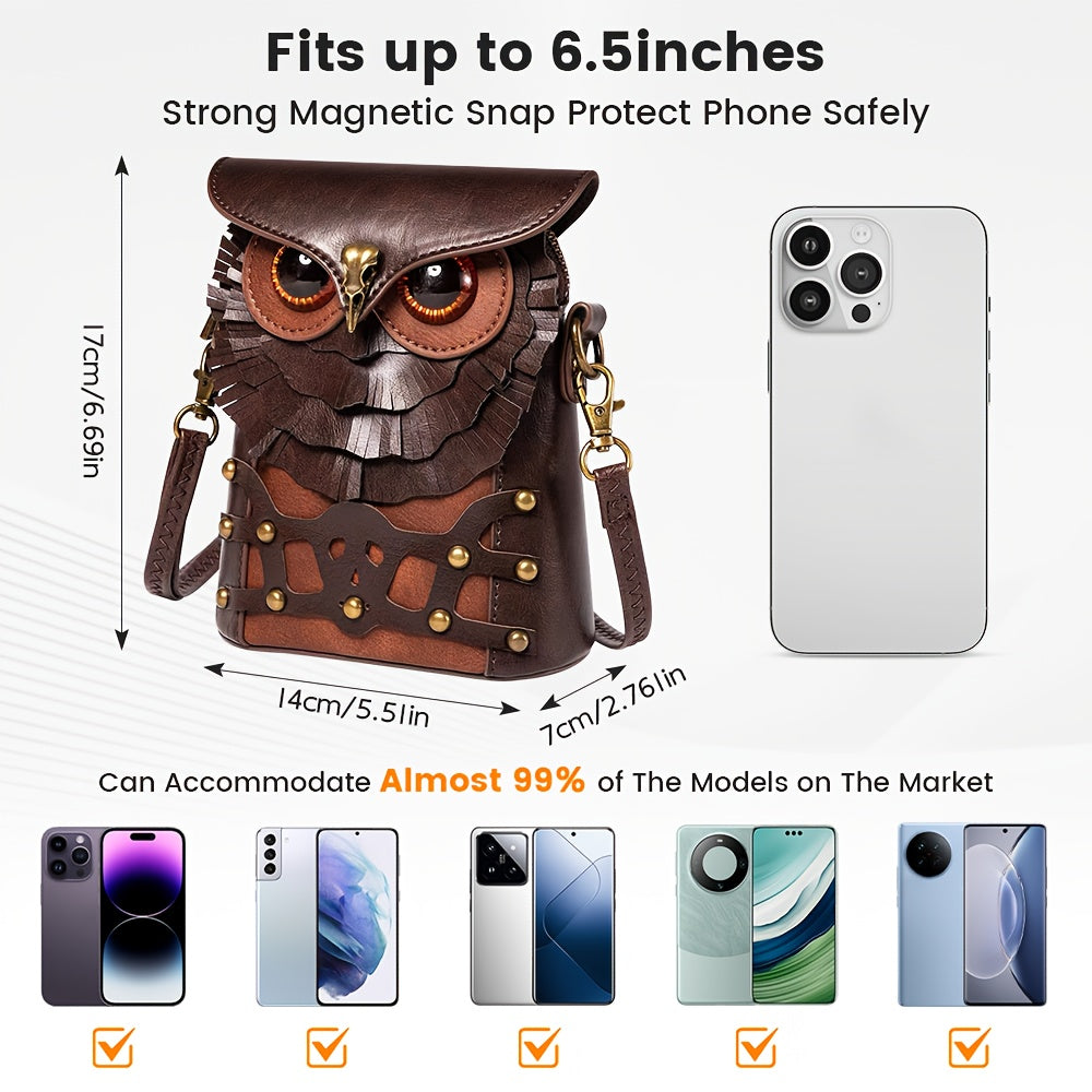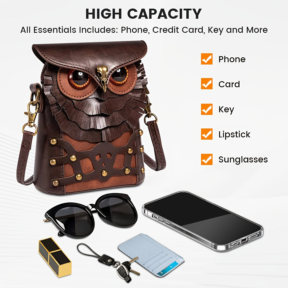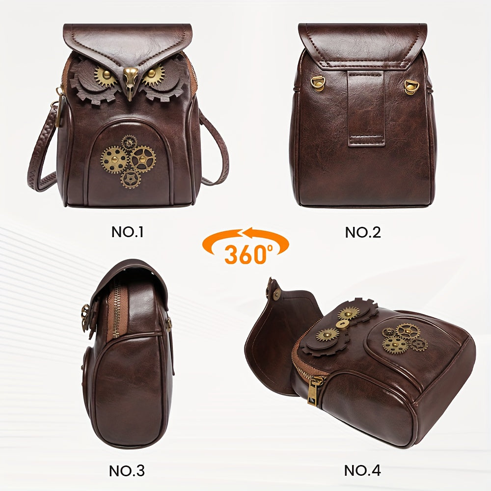 1pc Steampunk Owl Crossbody Bag for Women - Faux Leather Houndstooth Messenger Purse with Zipper Closure, Polyester Lined, Secure Edge Paint, Cell Phone & Essential Holder