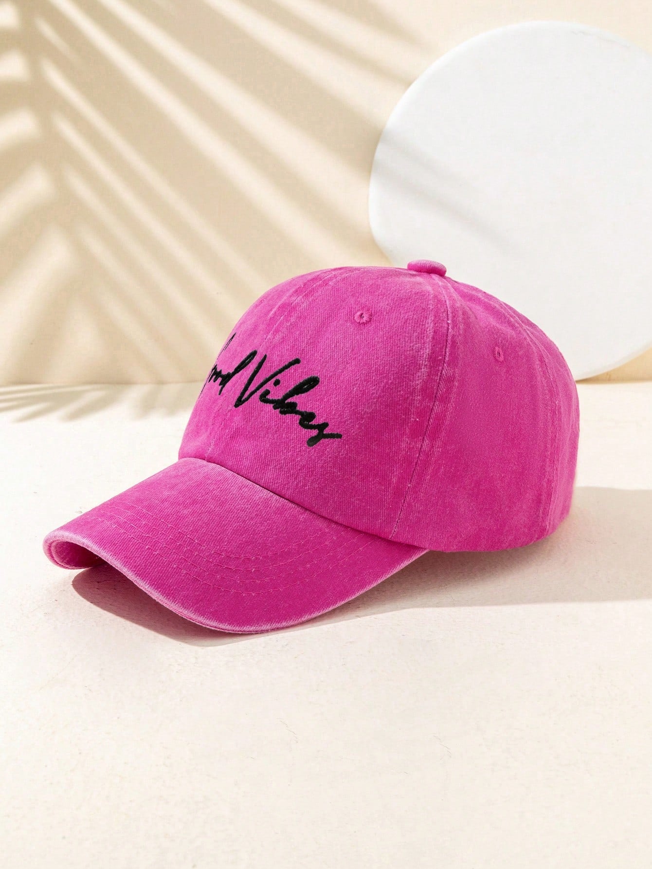 1pc Unisex Y2K Style Embroidered Good Vibes Ski Hat Baseball Cap, Outdoor Windproof Warm Winter Hat For Daily Commute Halloween
