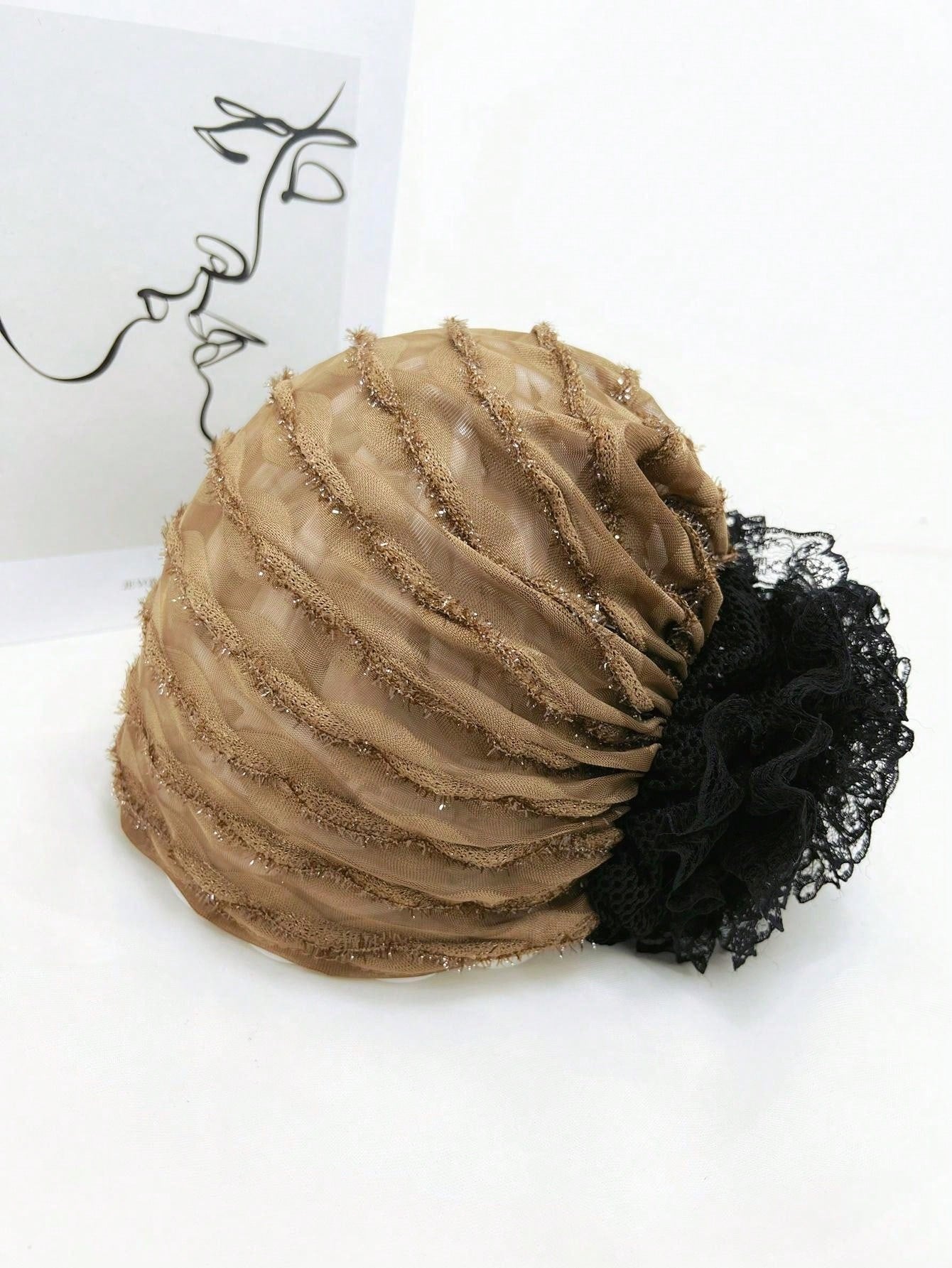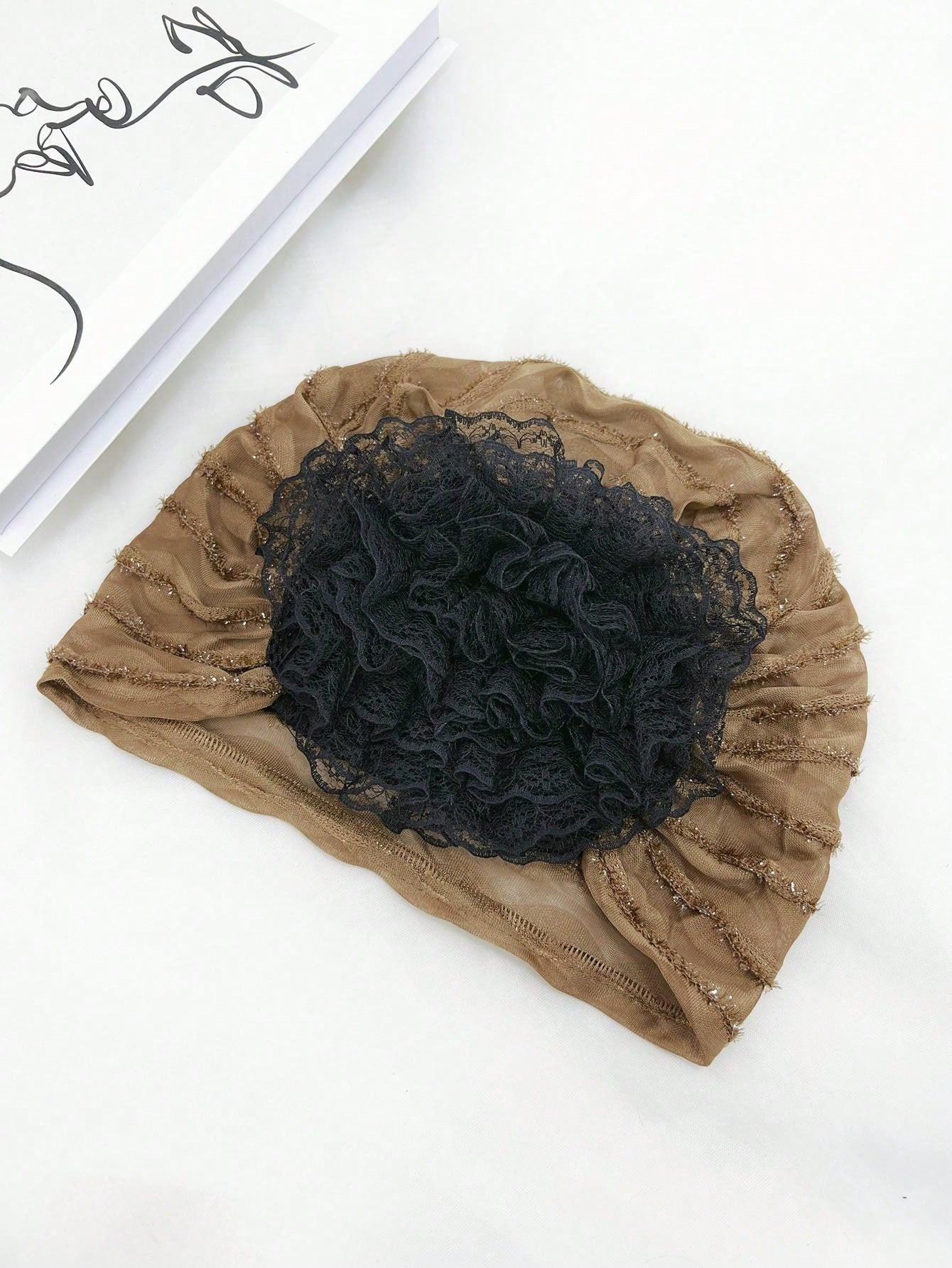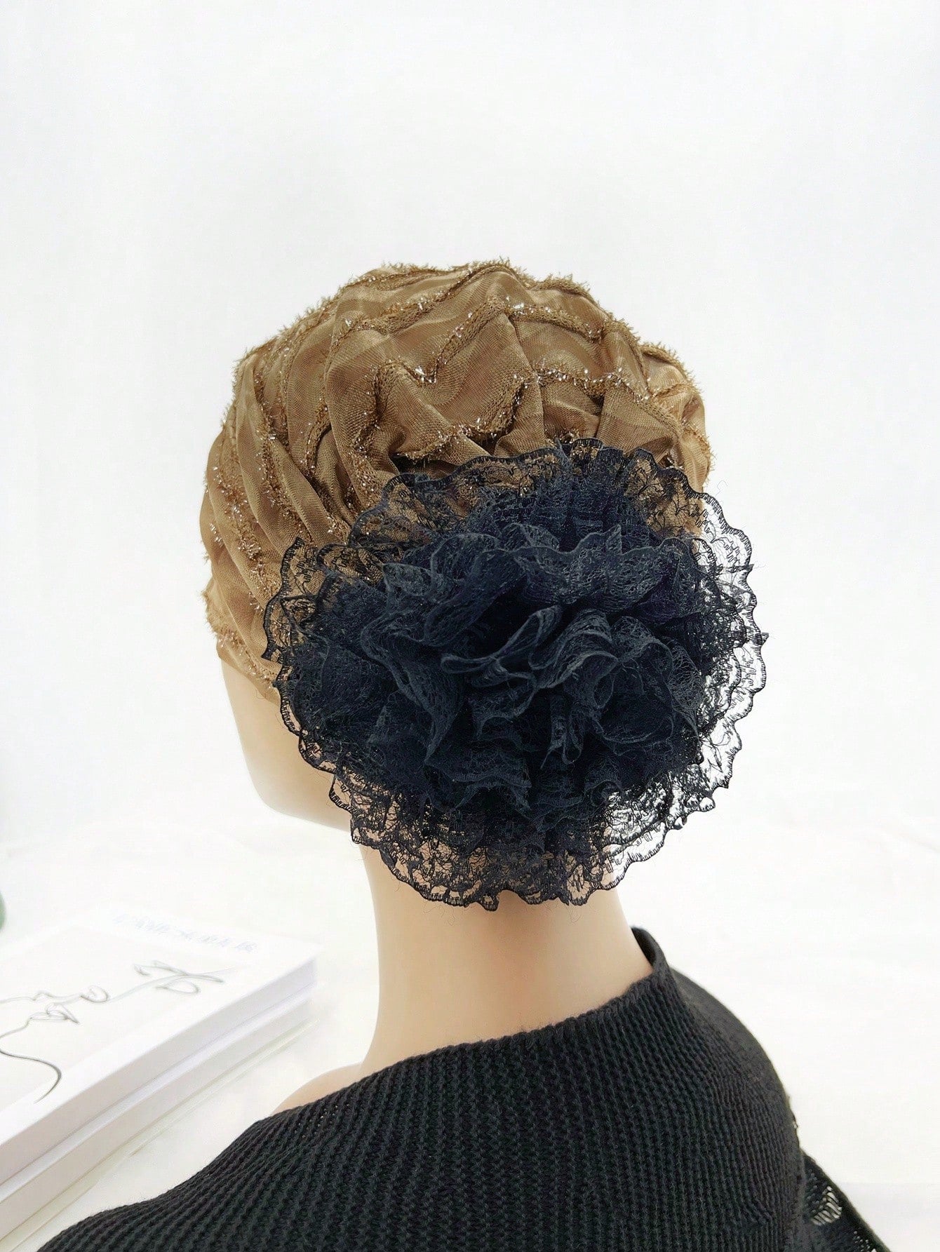 1pc Women Multicolor Sparkling Lace Flower Breathable Cover Head Elastic Casual Cute Bohemian Muslim Cap Suitable For Short Hair And Daily Life, Perfect For Mother Day