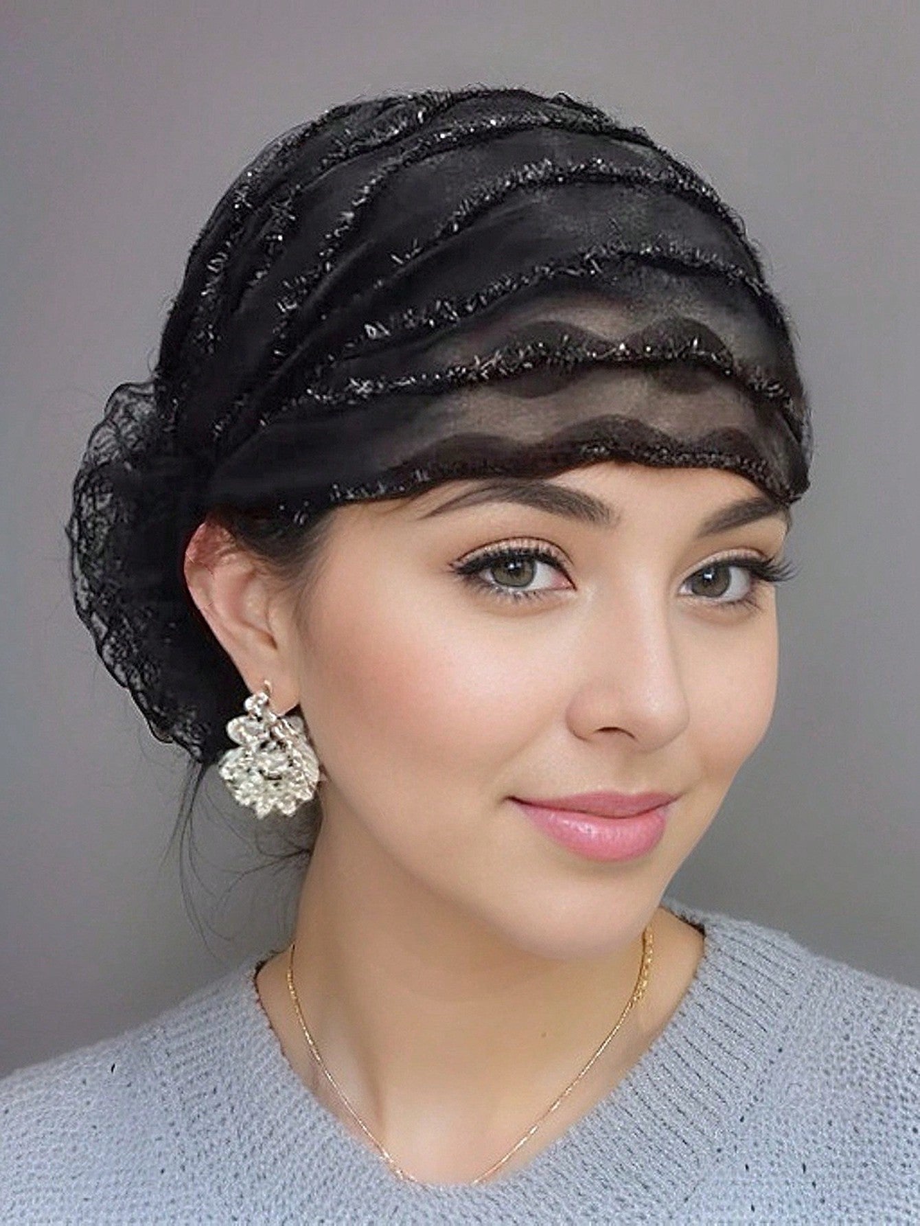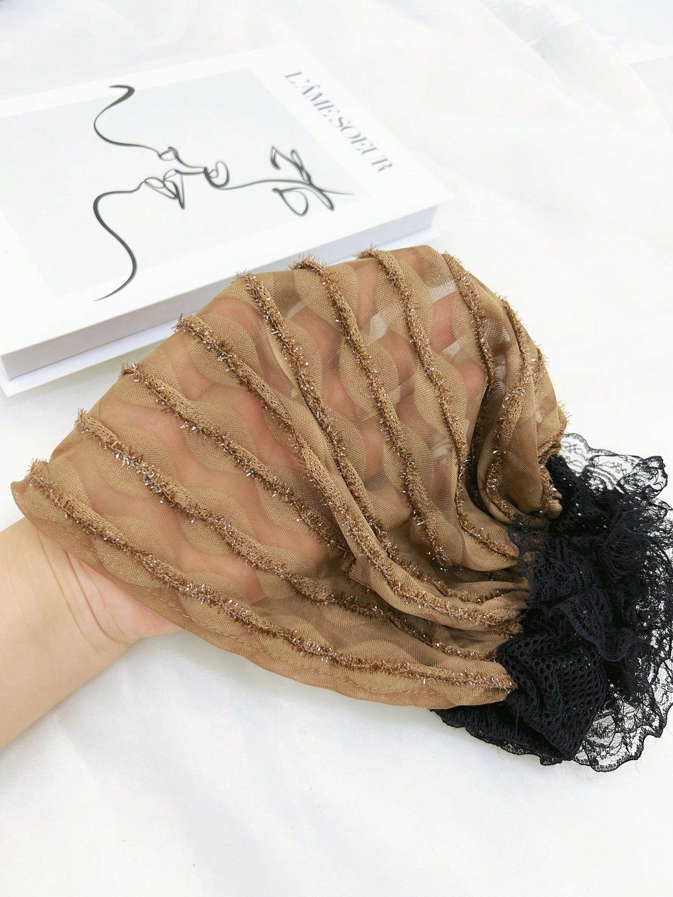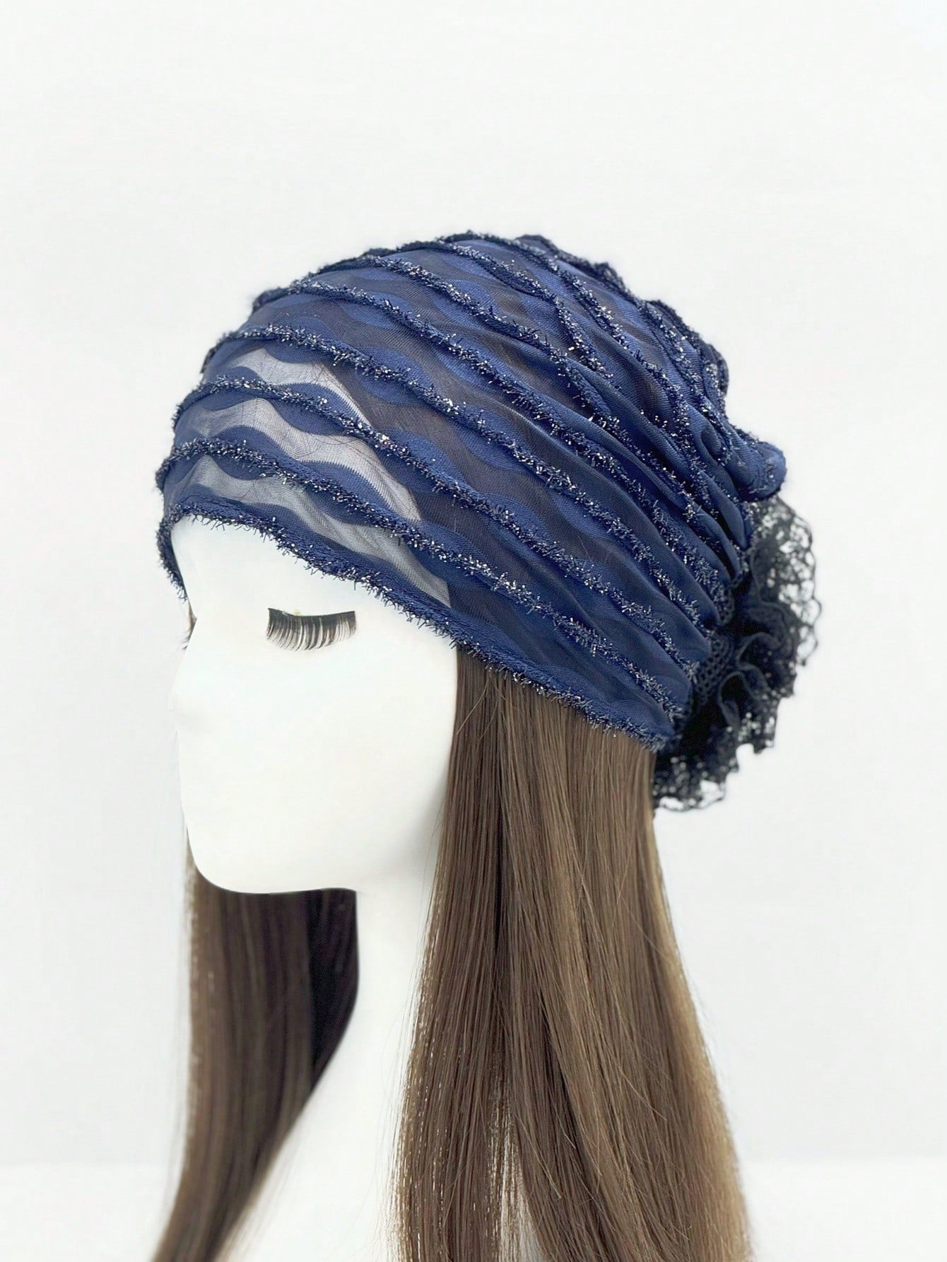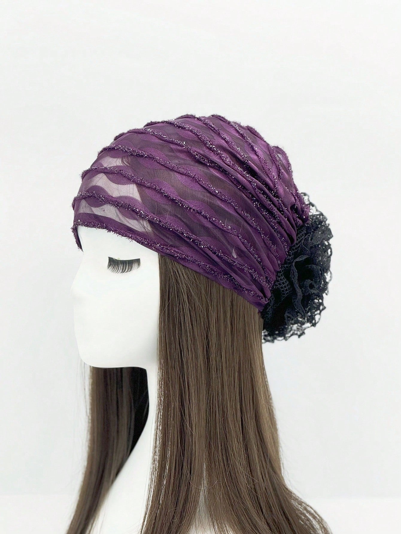 1pc Women Multicolor Sparkling Lace Flower Breathable Cover Head Elastic Casual Cute Bohemian Muslim Cap Suitable For Short Hair And Daily Life, Perfect For Mother Day