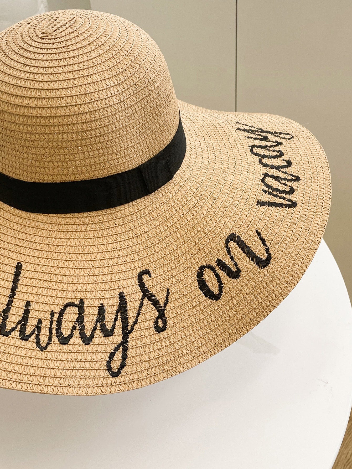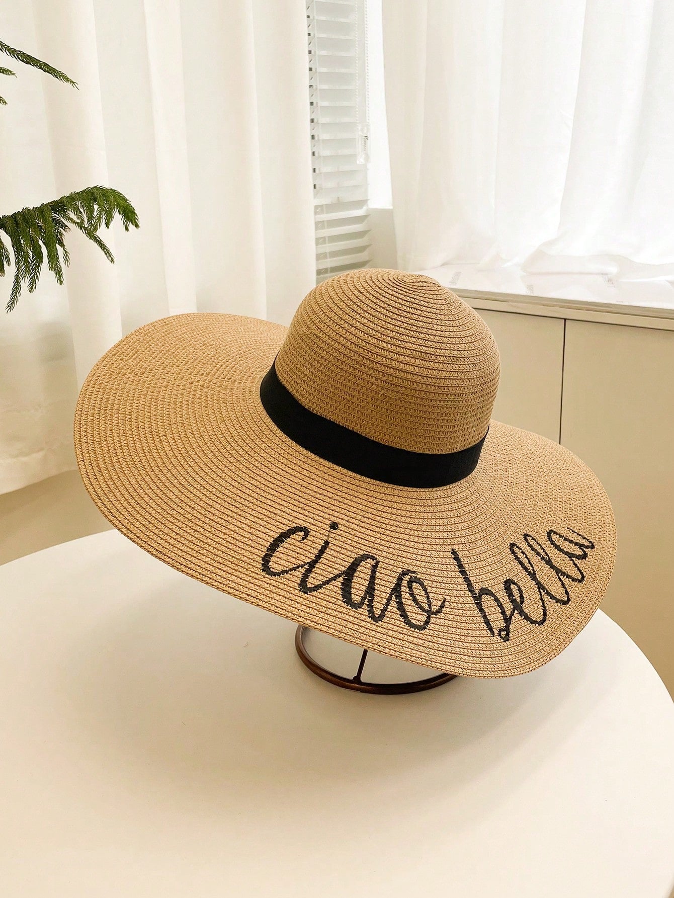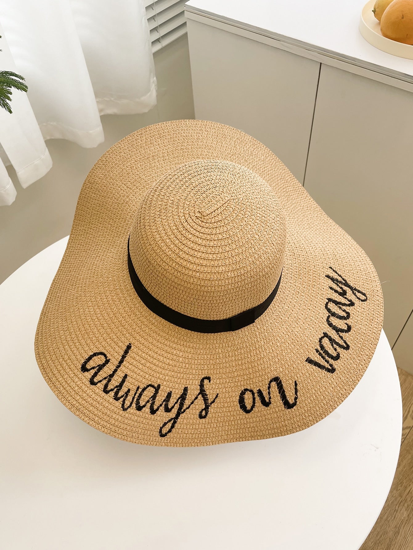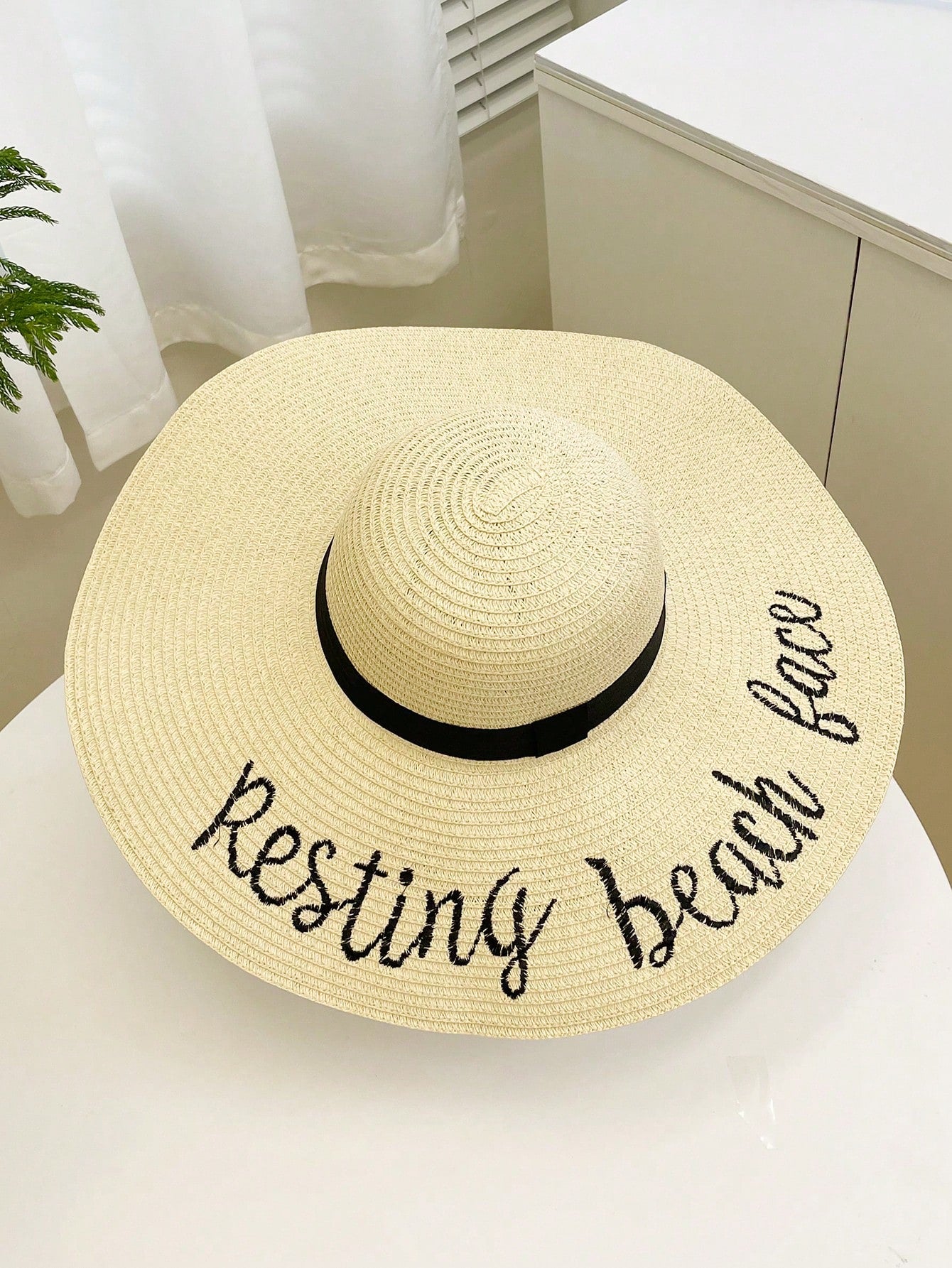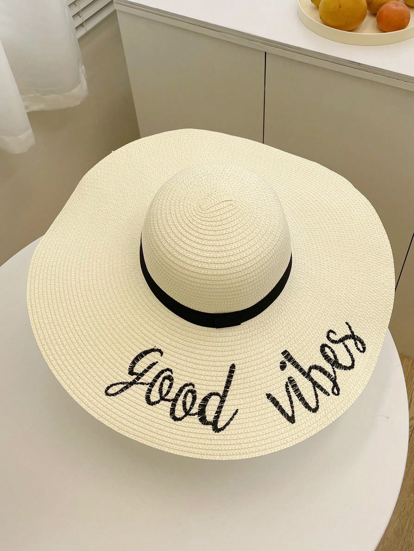 1pc Women Slogan Embroidered Boho Straw Hat For Daily Life Summer Beach