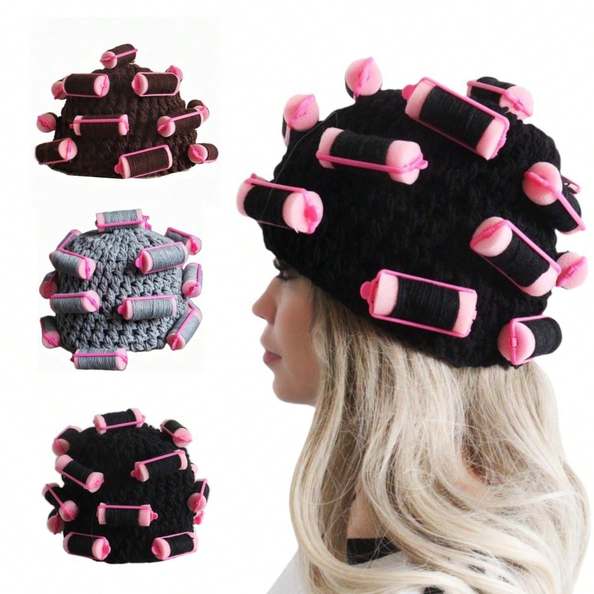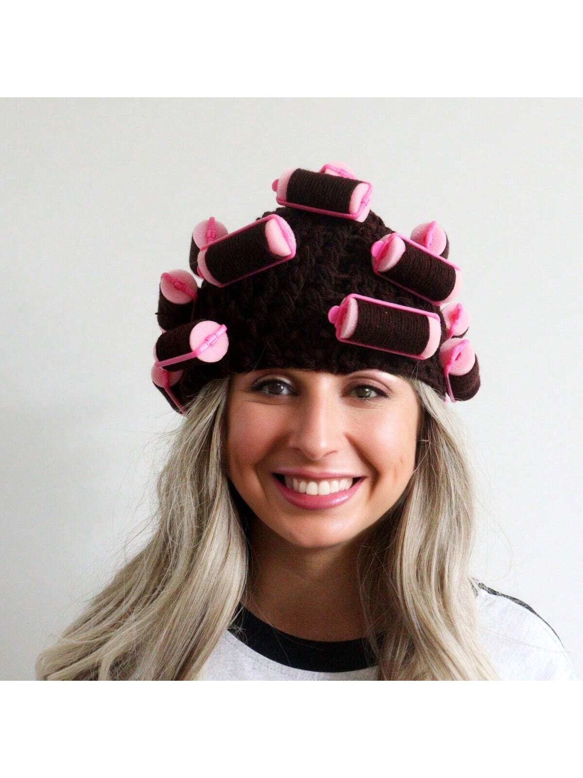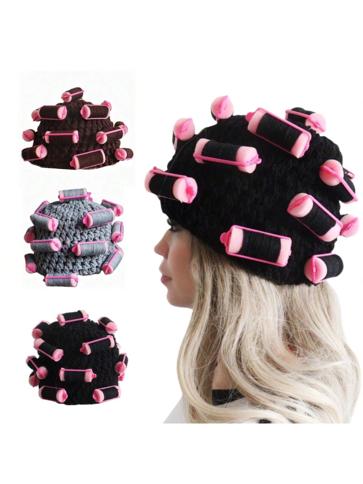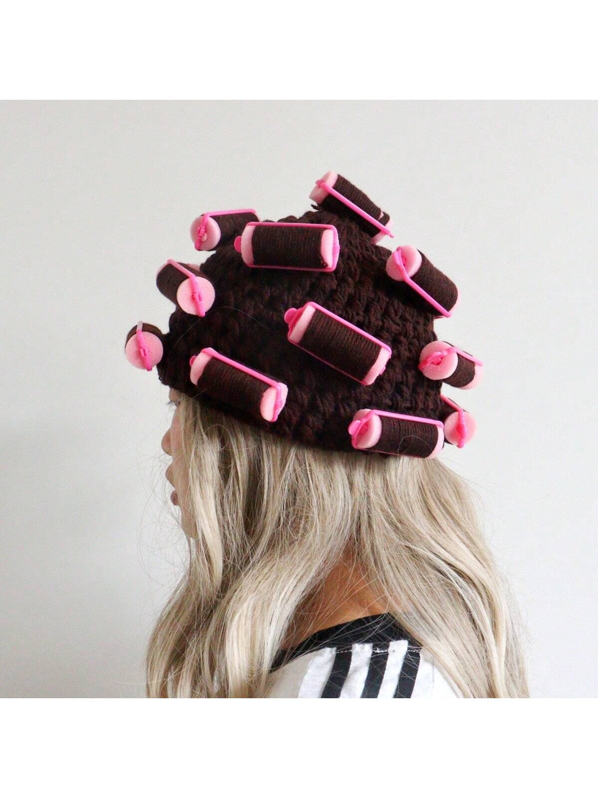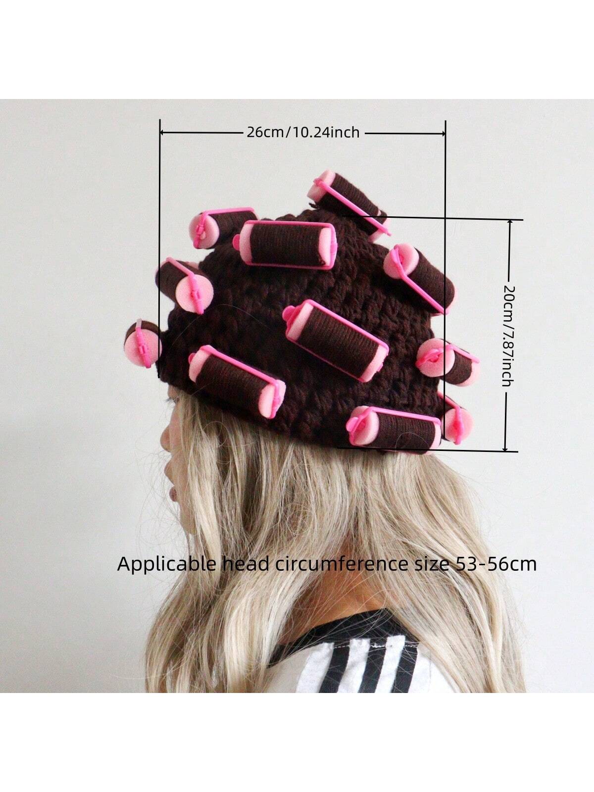 1pc Women Solid Color Curly Beanie Hat, Cute Hair Curler Cap, Warm Knitted Hat For Autumn/Winter Party Outfit