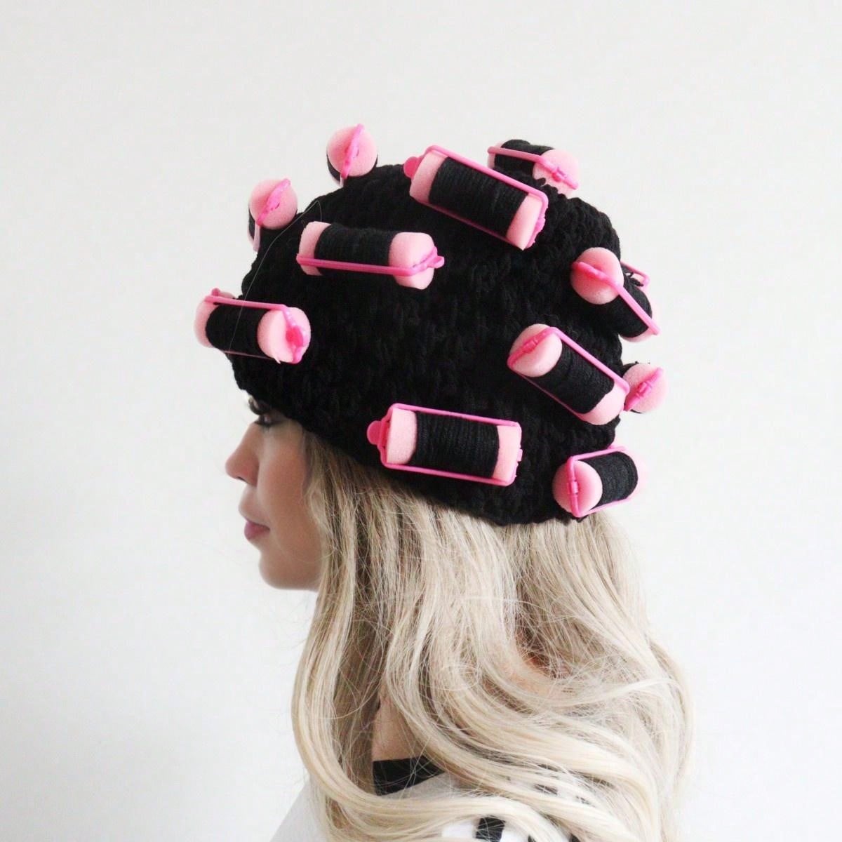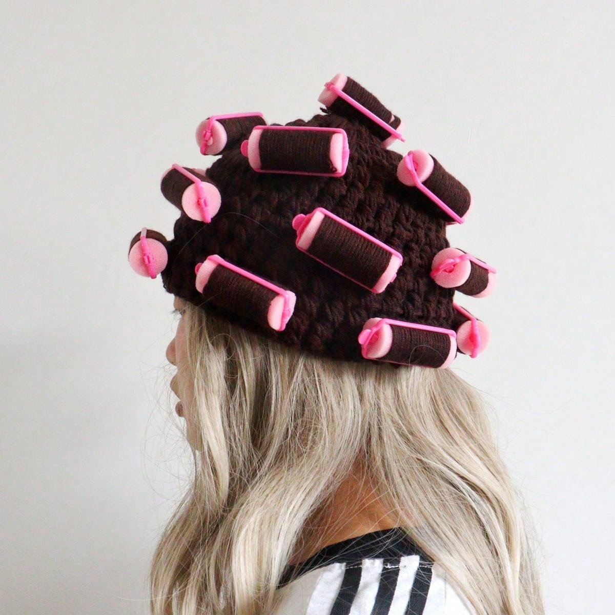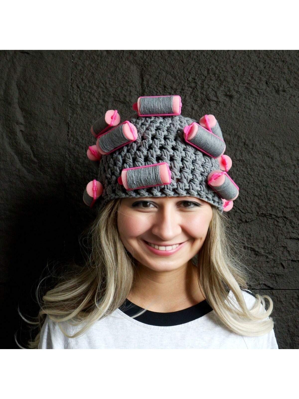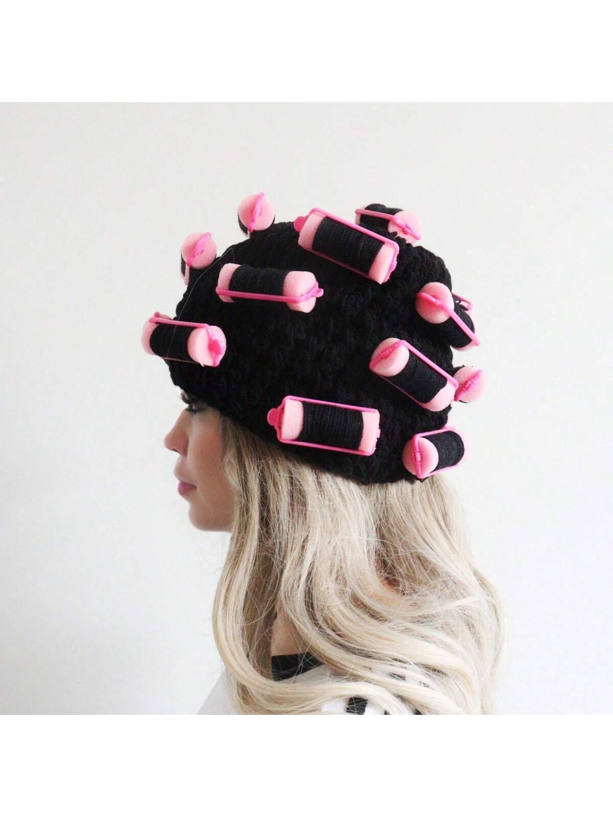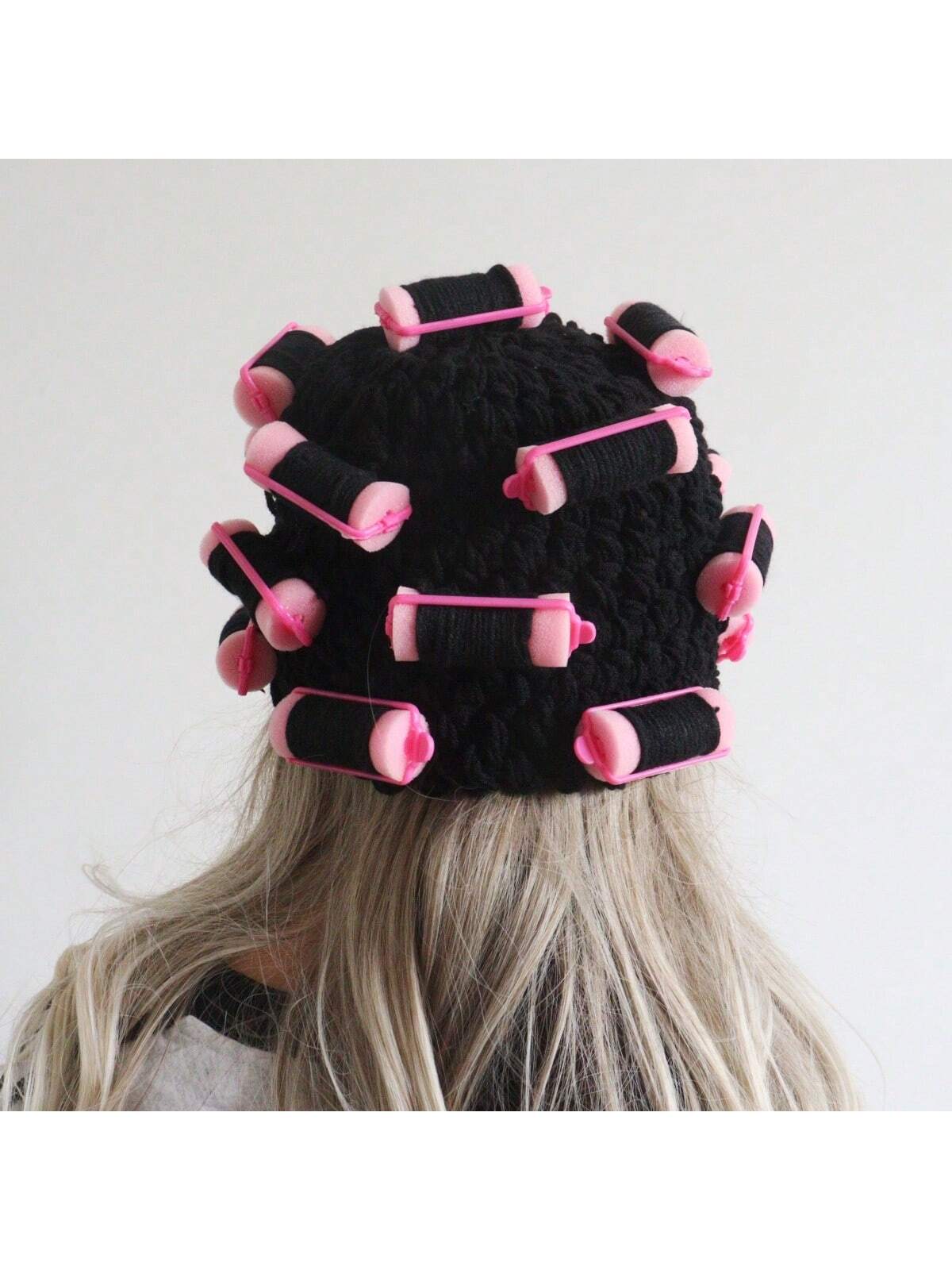 1pc Women Solid Color Curly Beanie Hat, Cute Hair Curler Cap, Warm Knitted Hat For Autumn/Winter Party Outfit